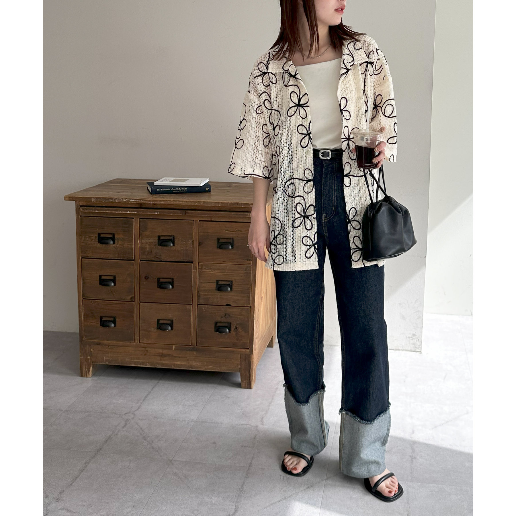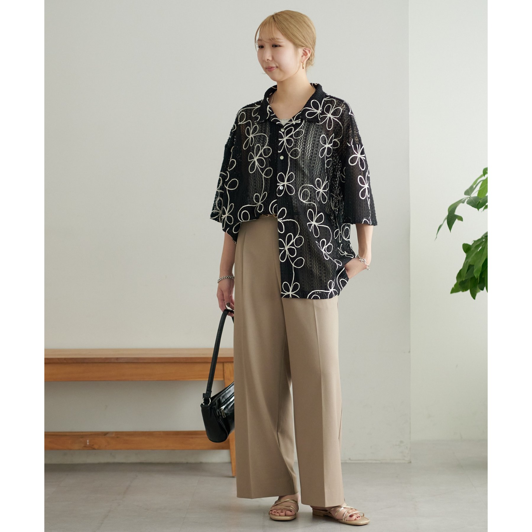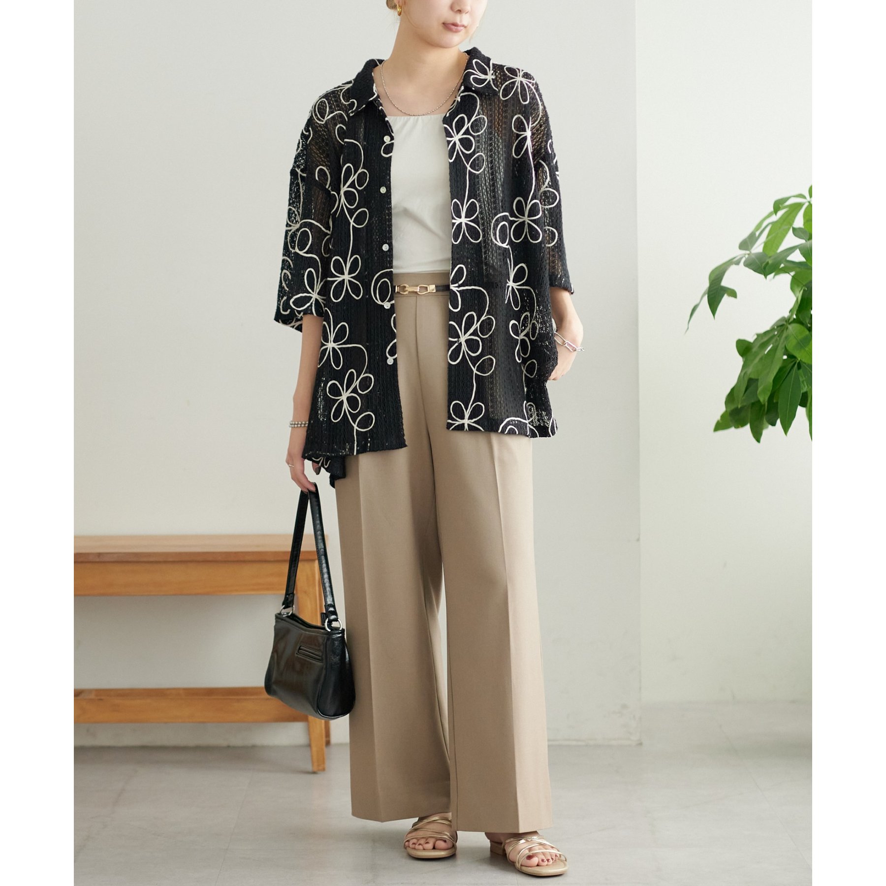 花刺繍が目を惹くシャツは幅広いテイストのボトムスと楽しんでいただけます♪