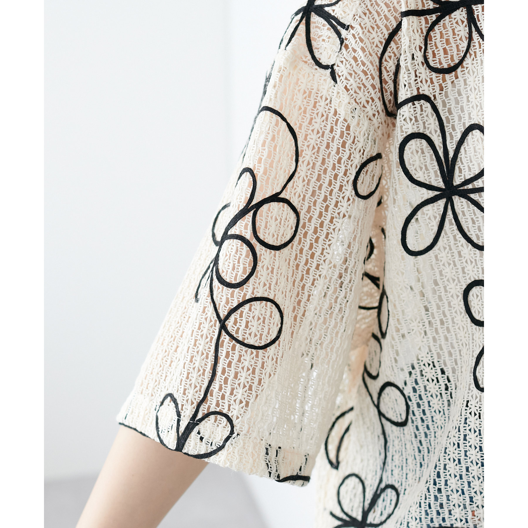 花柄刺繍が目を惹く夏にぴったりのメッシュシャツ