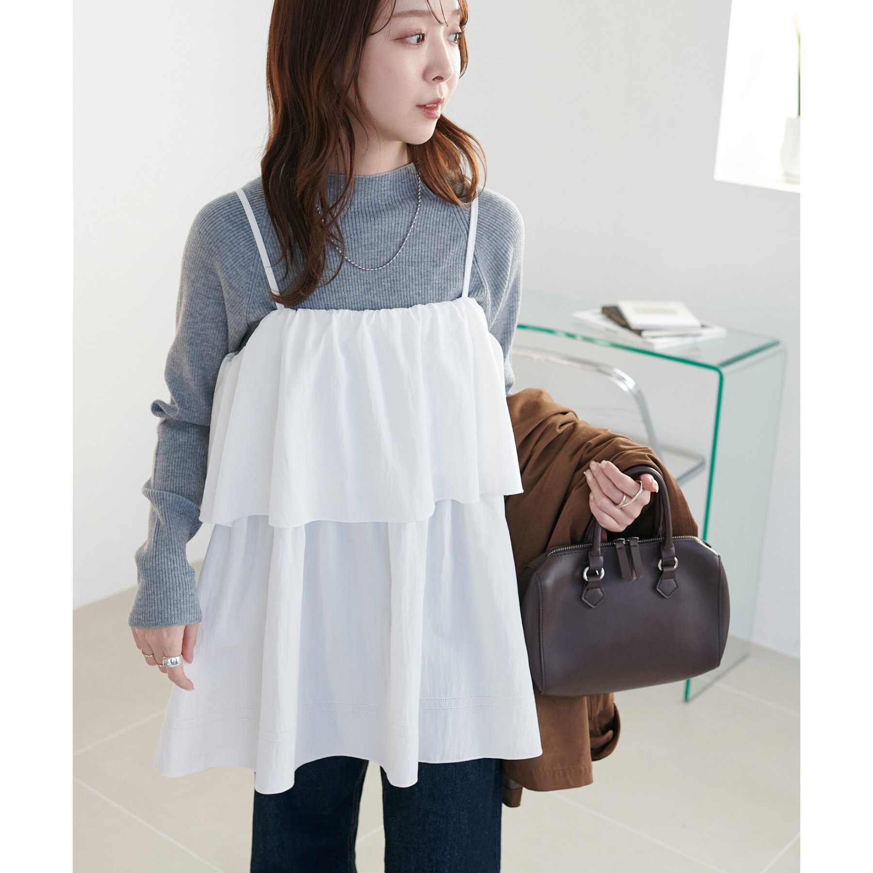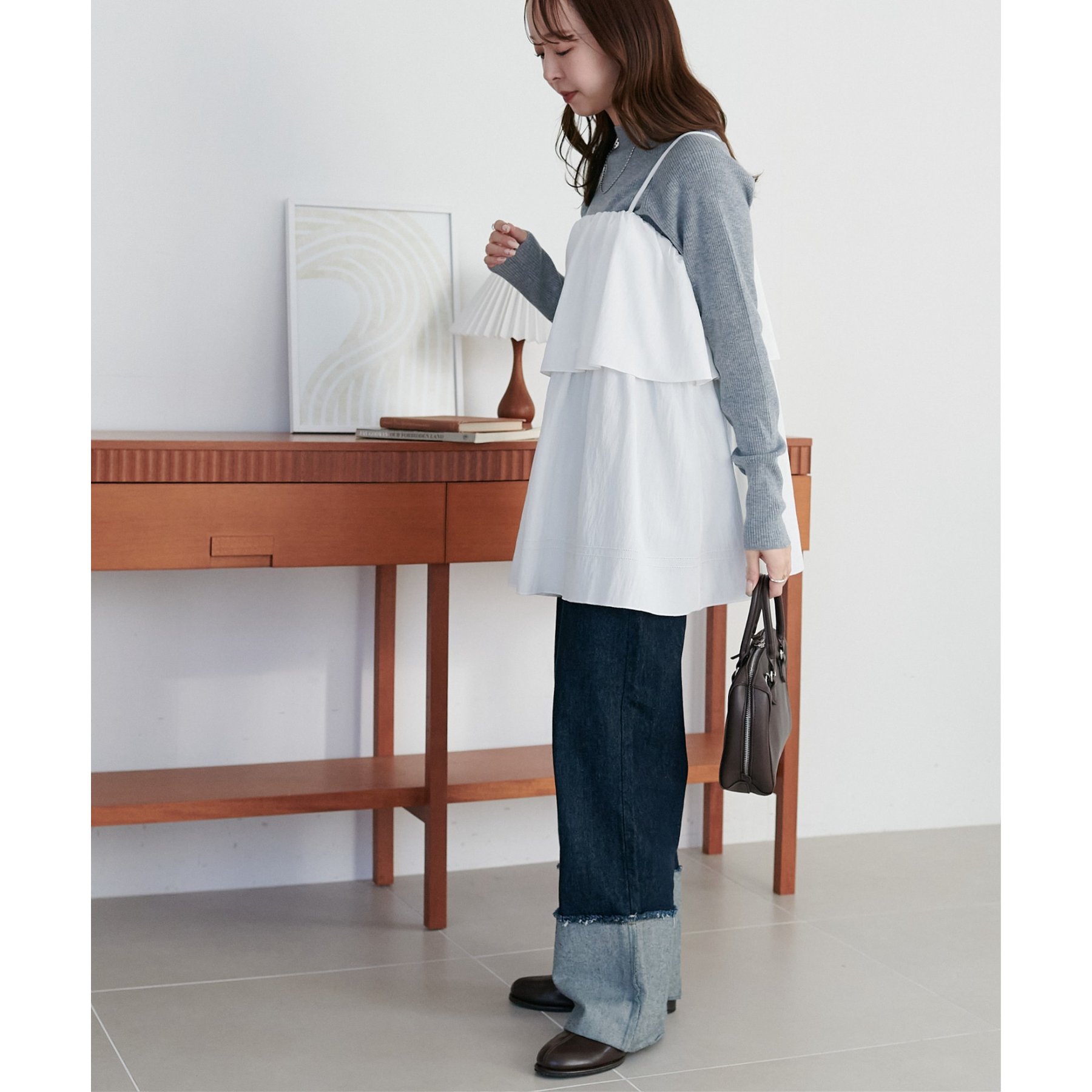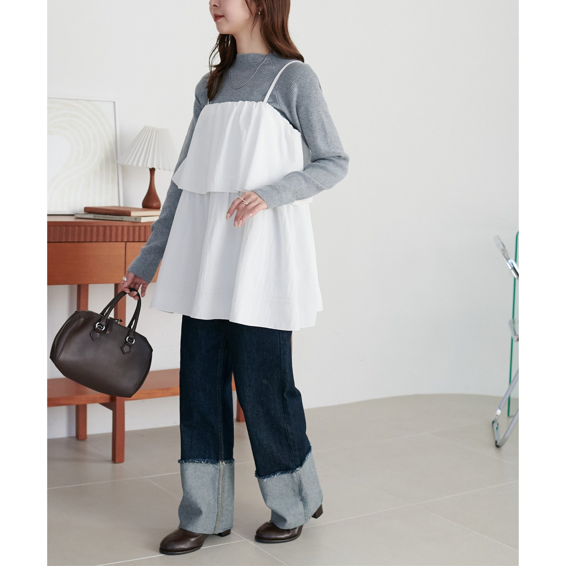 ・シンプルなリブニットやロンTの上に重ねるだけで、旬のレイヤードコーデが完成。
