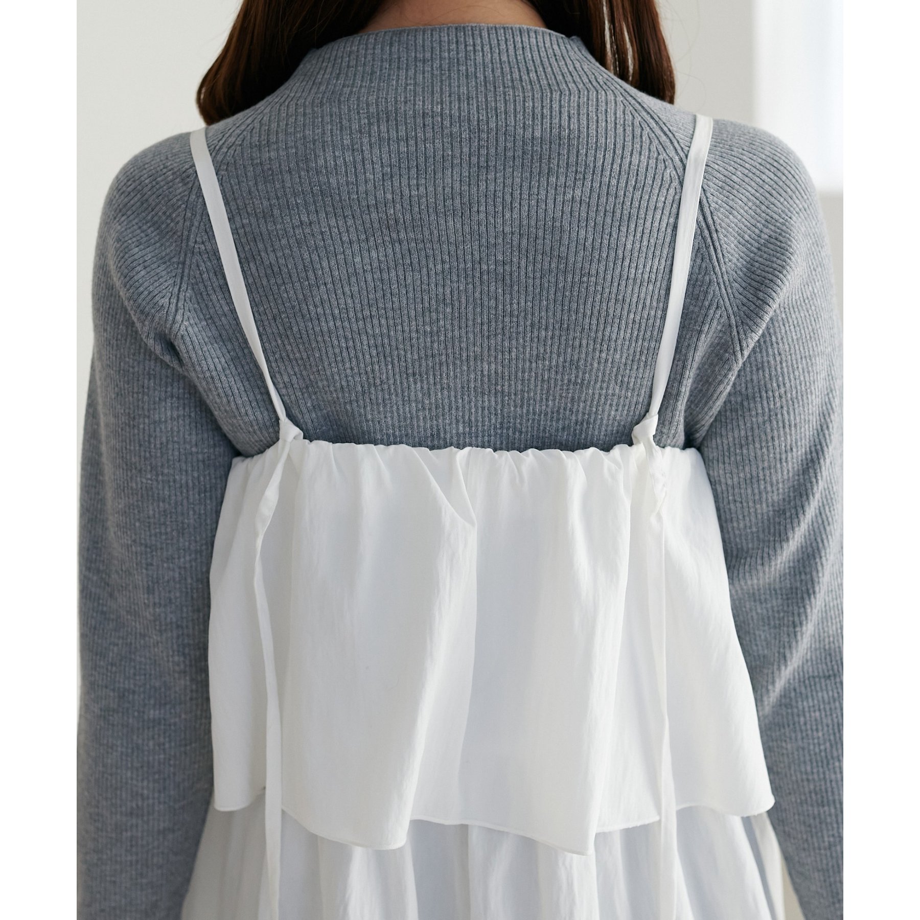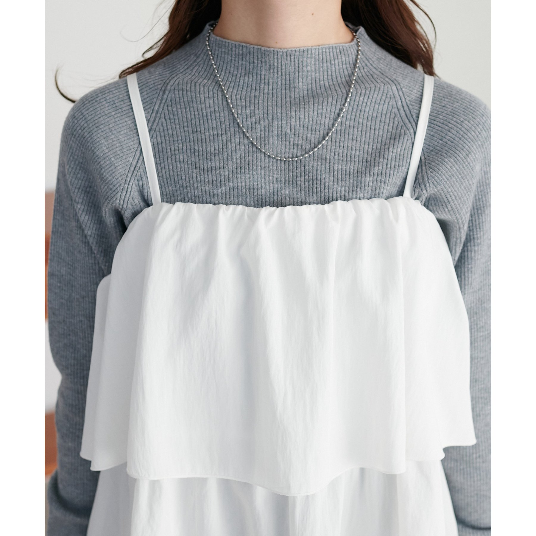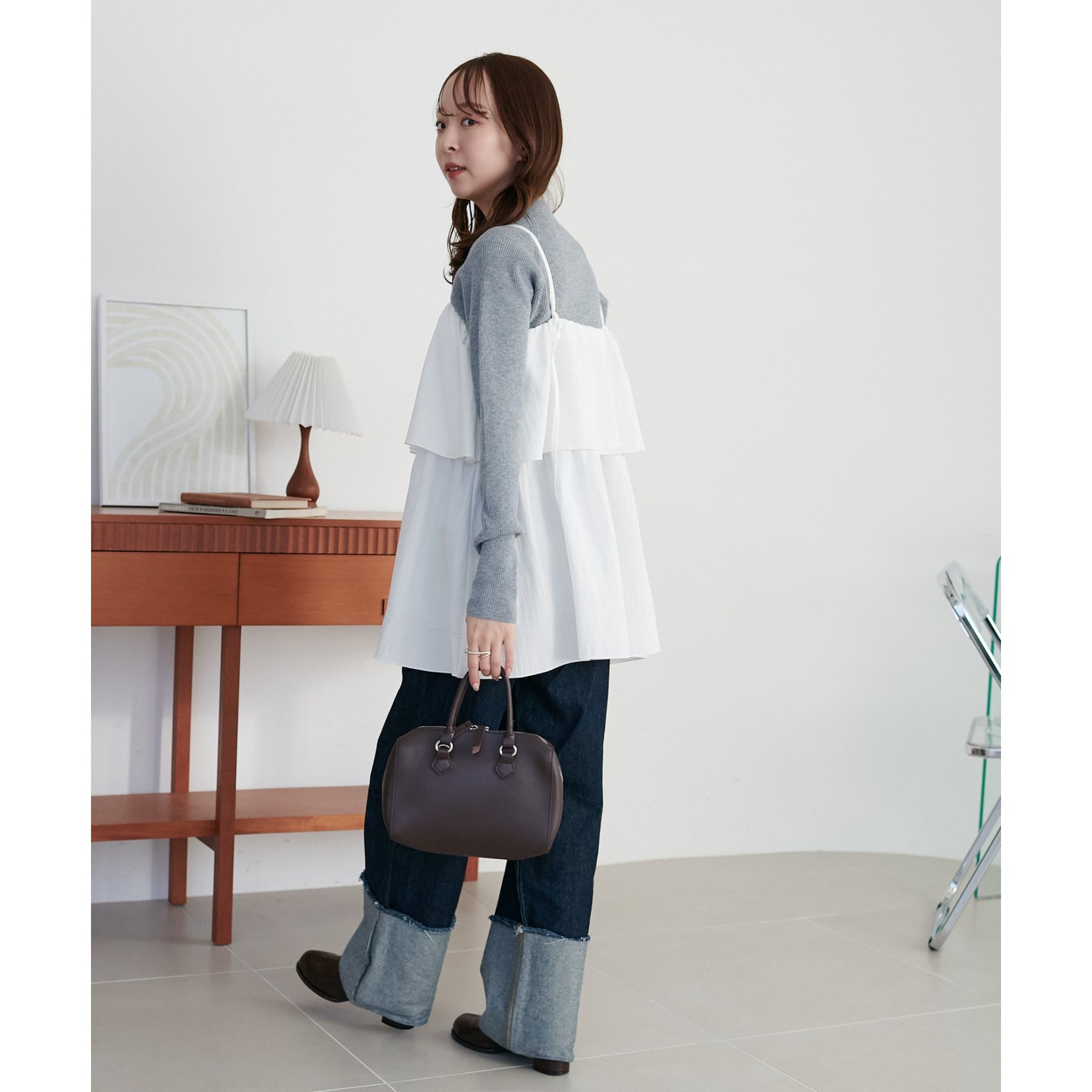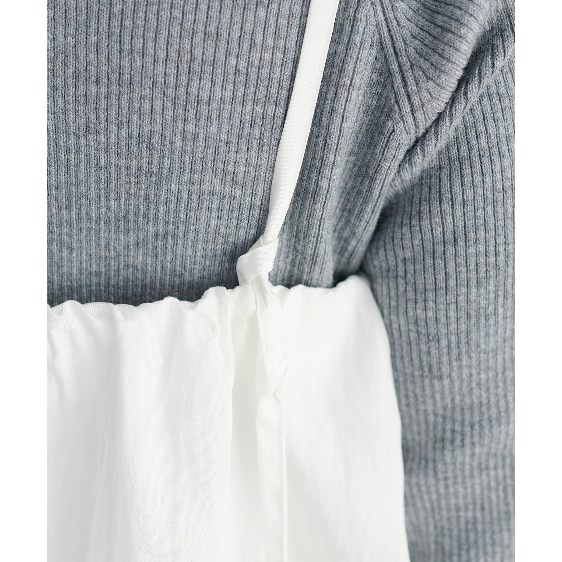 158cmスタッフ:胸元がゴム仕様になっているので、ハイゲージニットをインナーで合わせても窮屈感がありません。