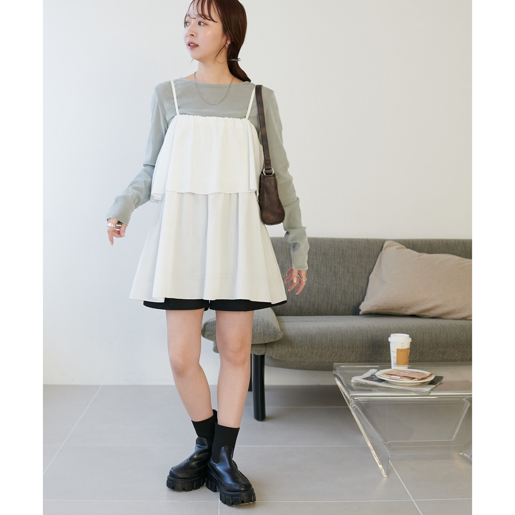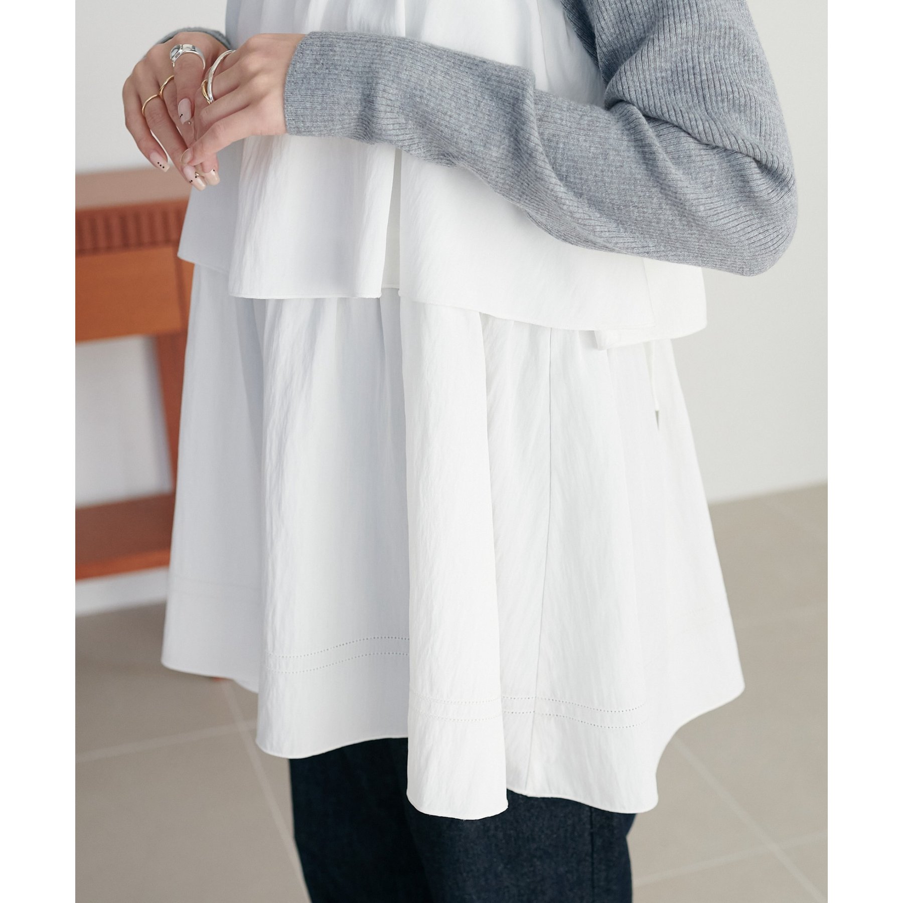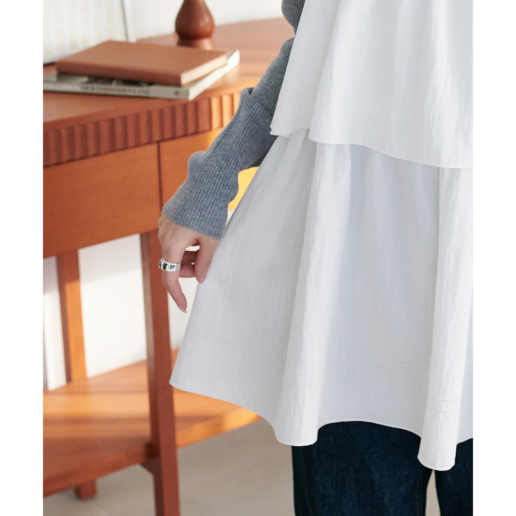 ティアードになっていることで、メリハリのある印象になりヒップが隠れるほどの着丈でもスタイルアップして見えます!