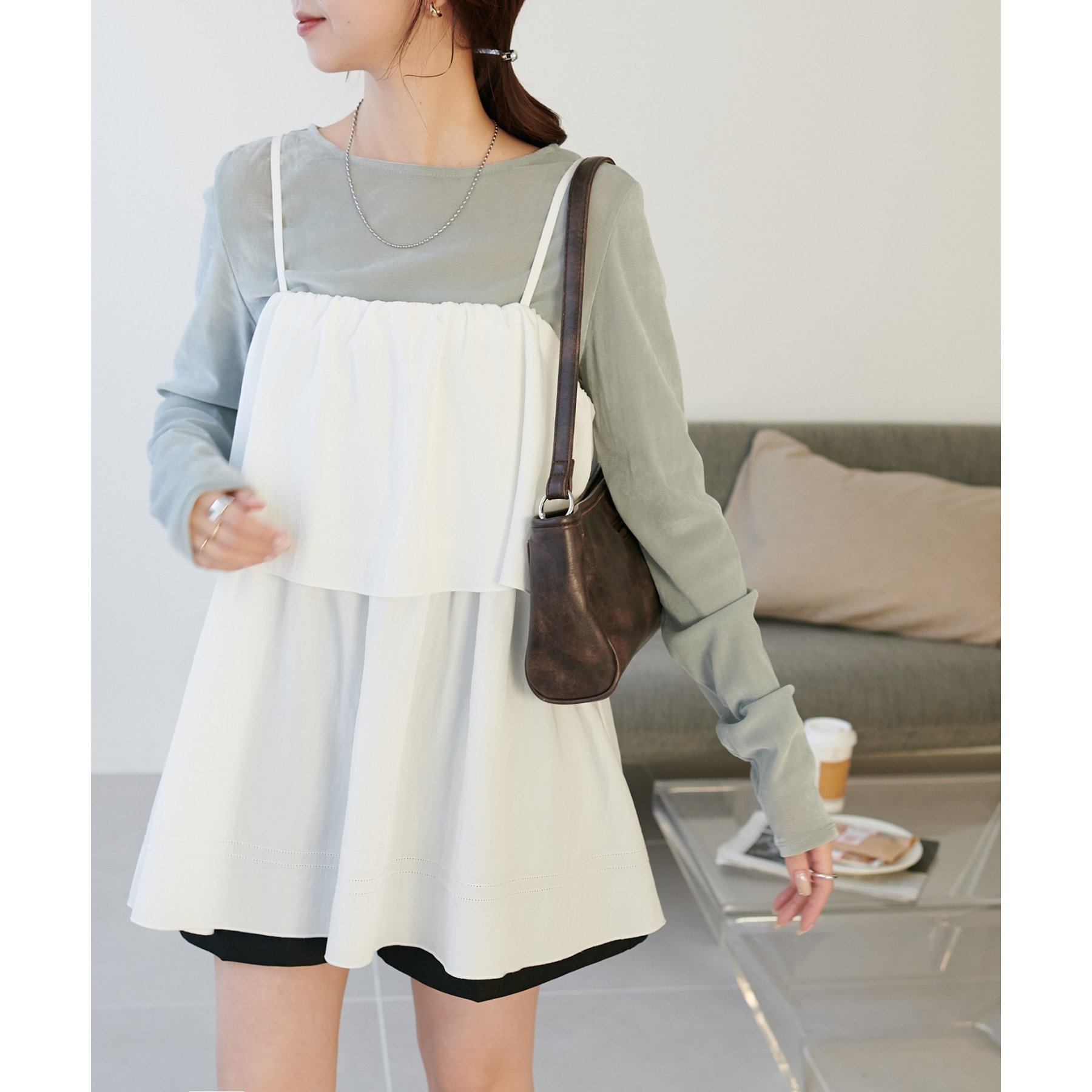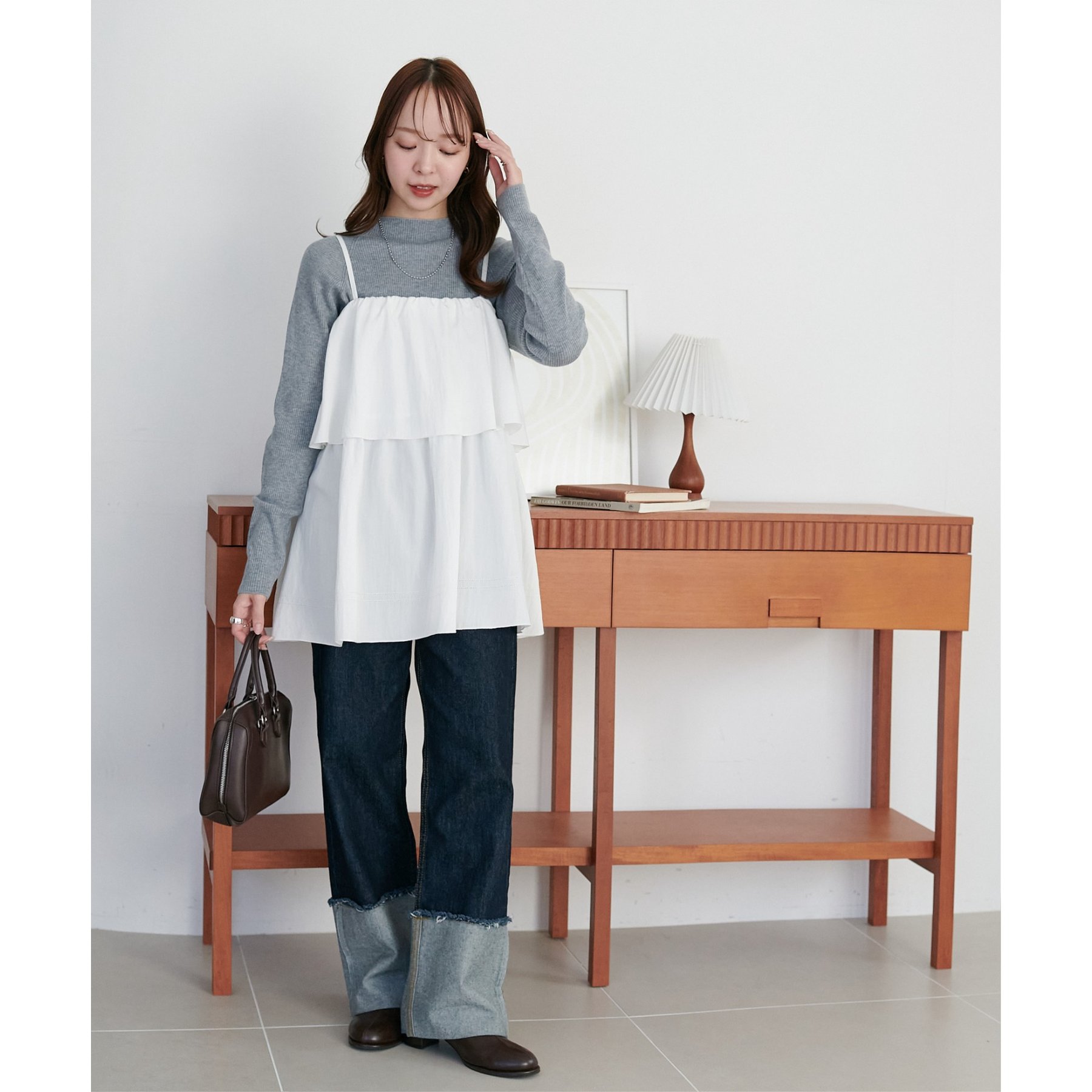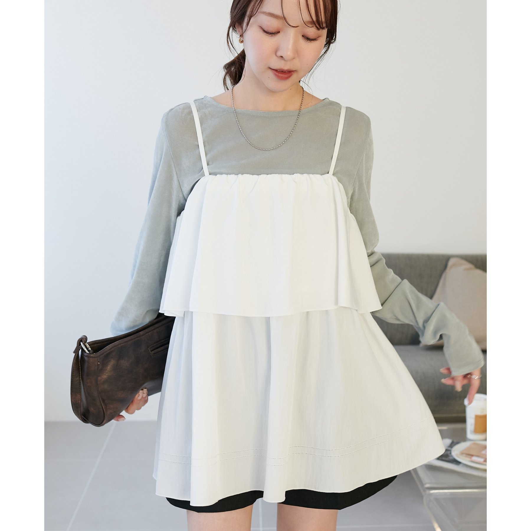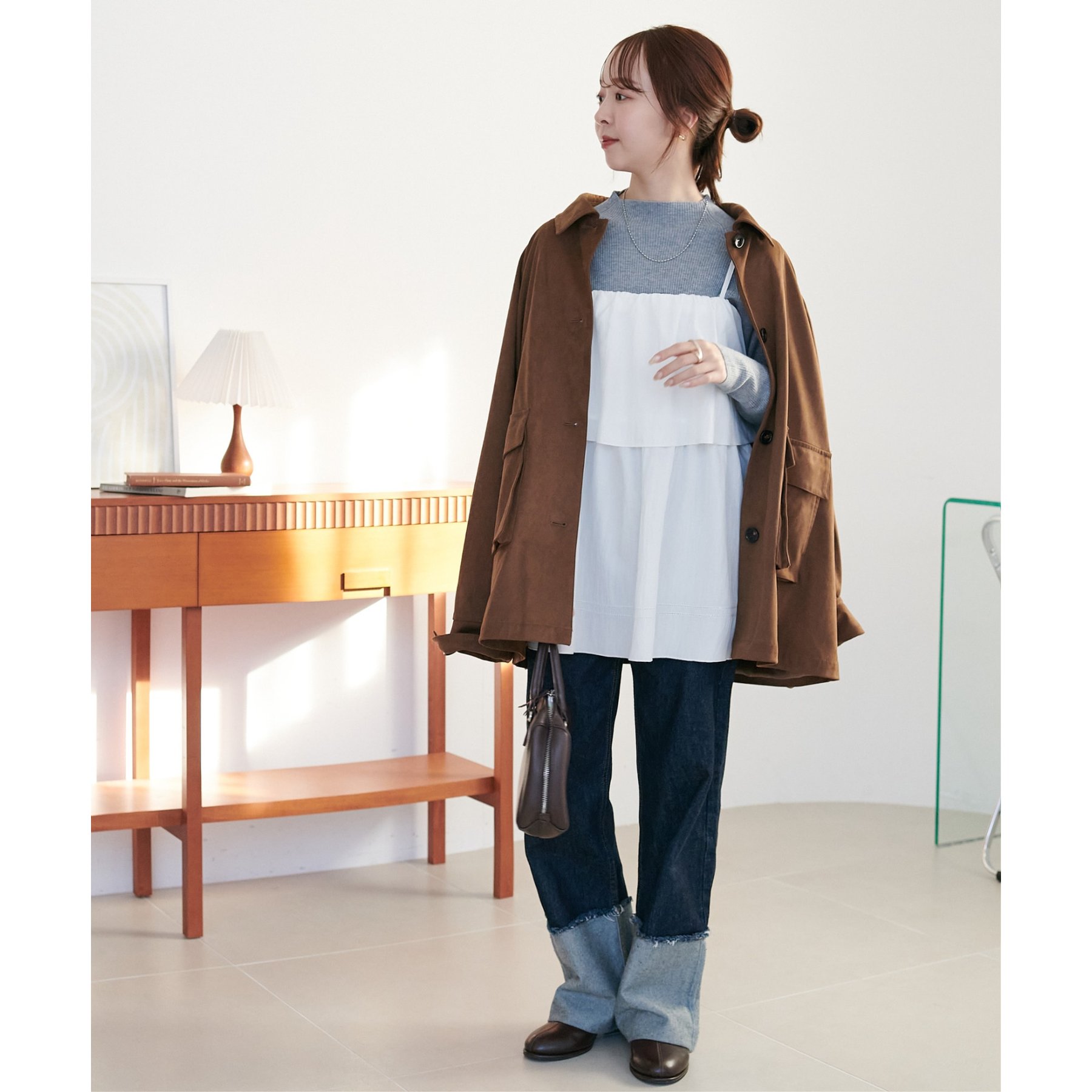 ティアードになっていることで、メリハリのある印象になりヒップが隠れるほどの着丈でもスタイルアップして見えます!