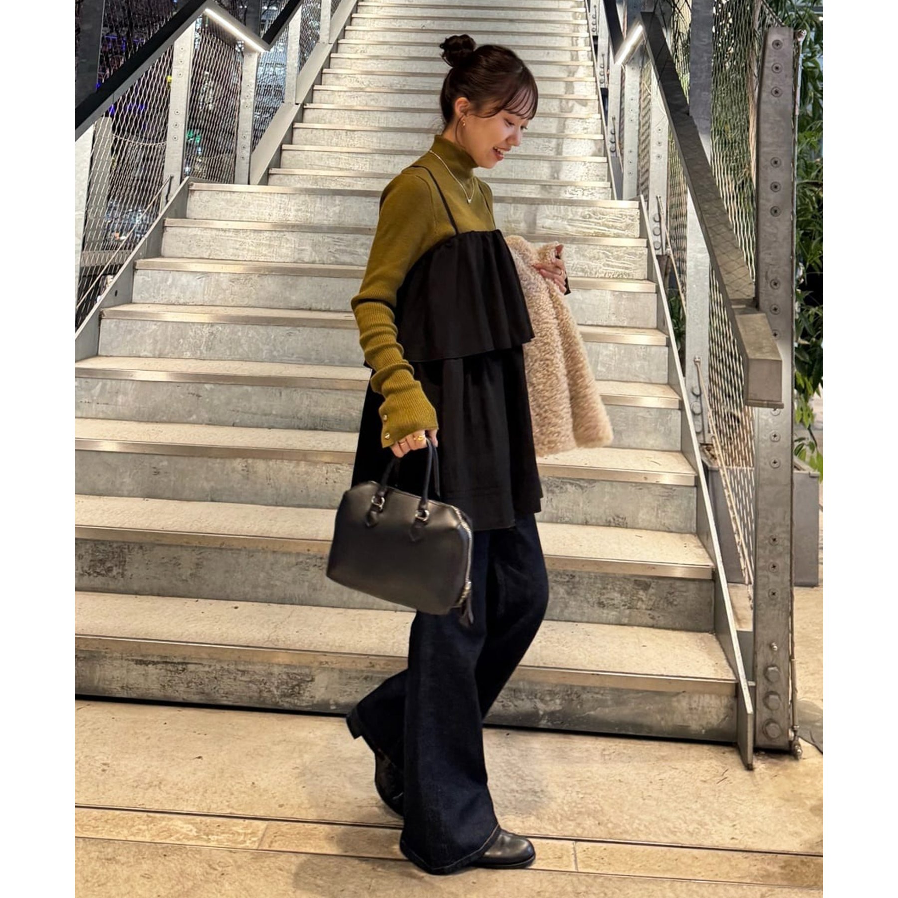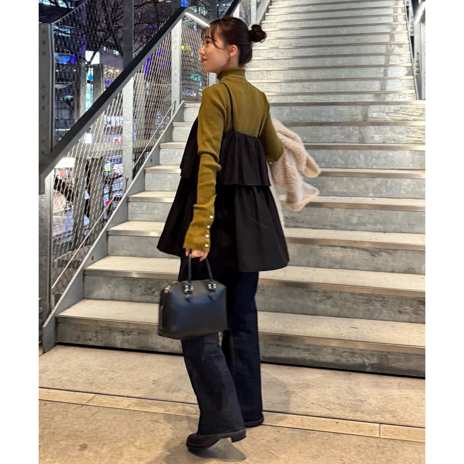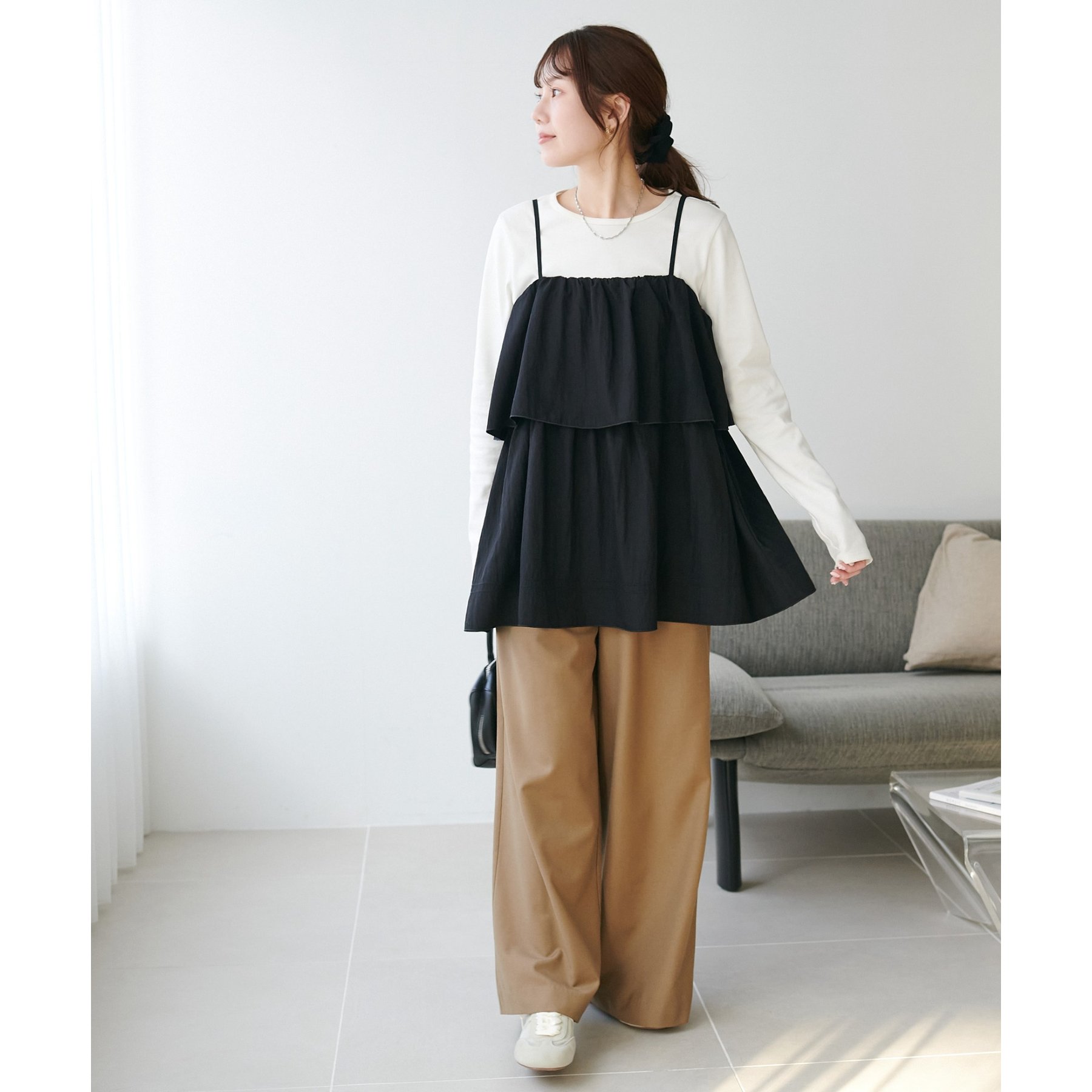 ティアードで柔らかな印象になるので、ボトムスはストレートやフレアパンツを合わせてスッキリとした印象をコーデにいれたいです。