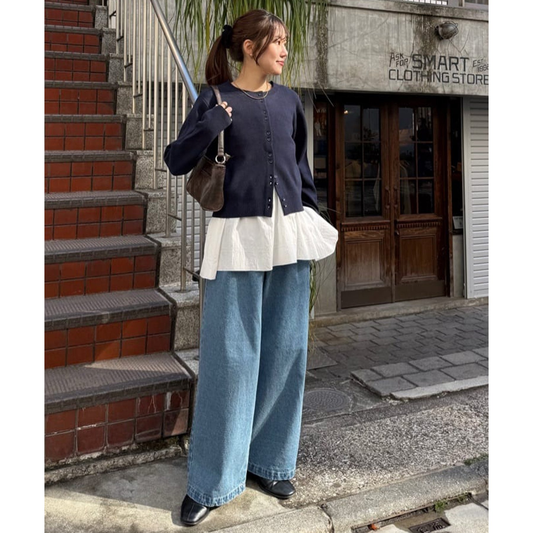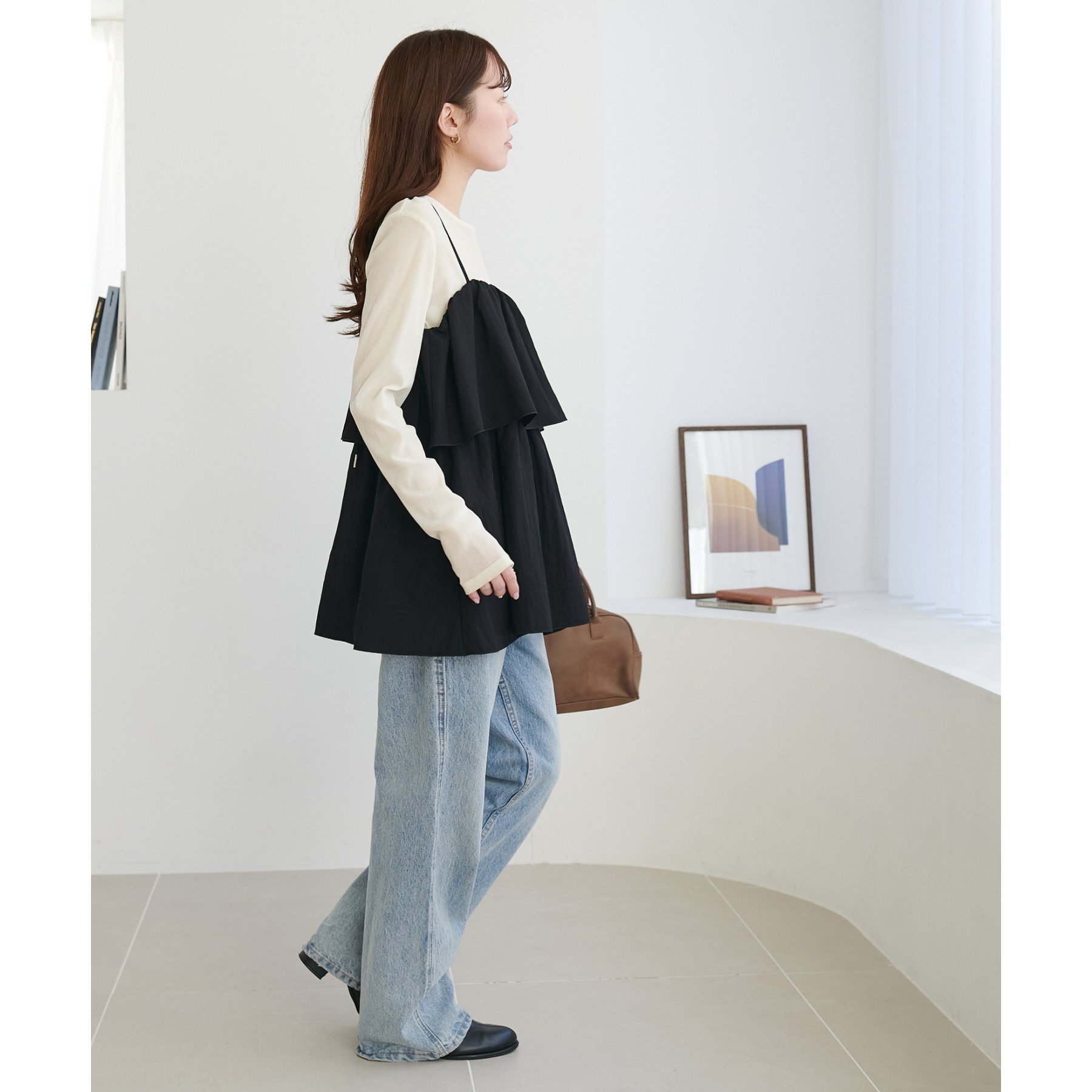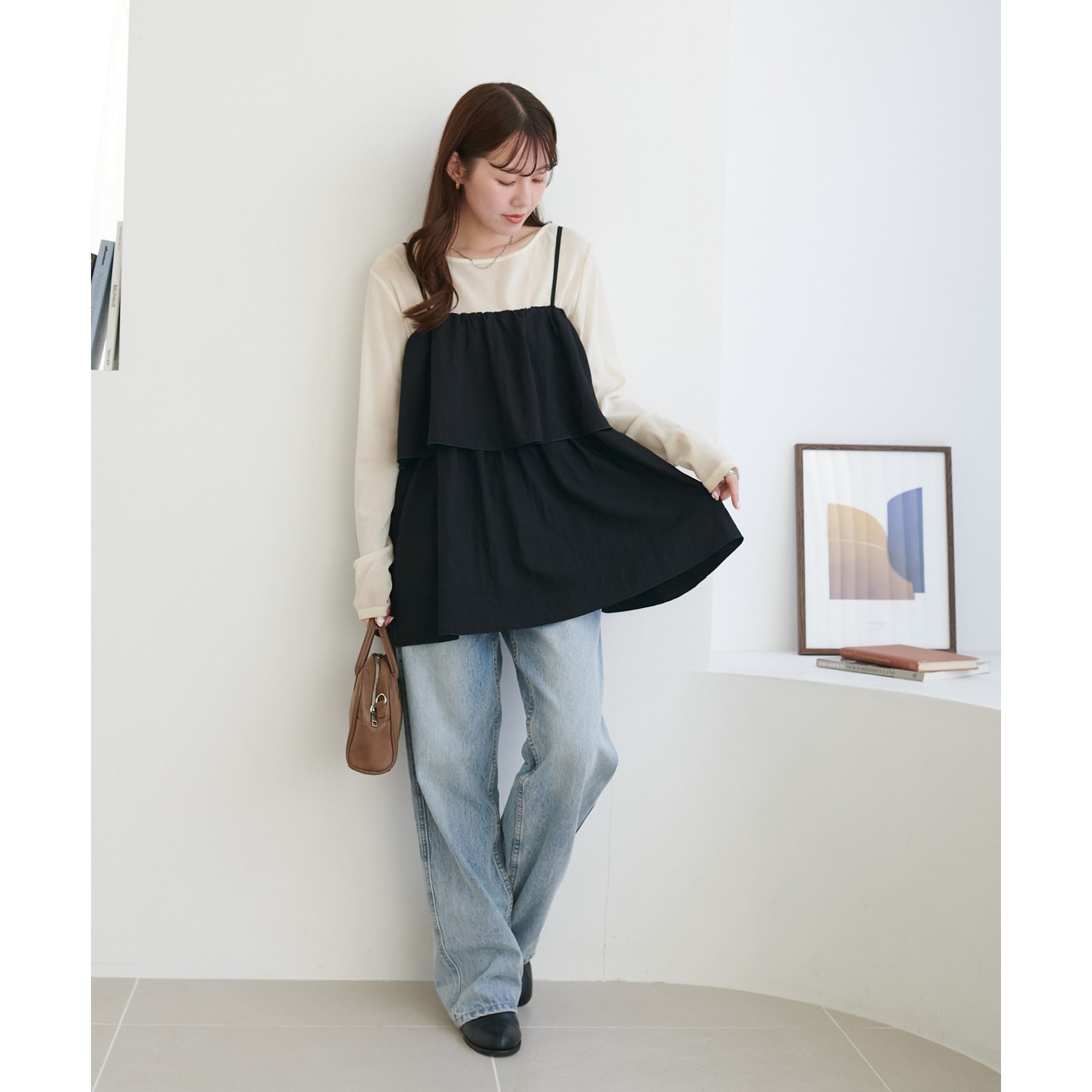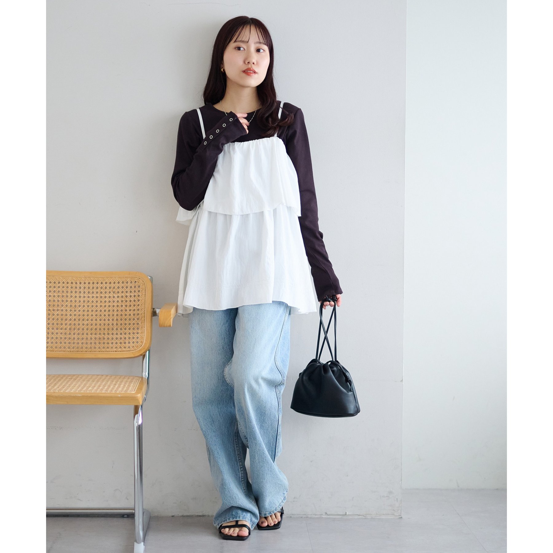 ティアードで柔らかな印象になるので、ボトムスはストレートやフレアパンツを合わせてスッキリとした印象をコーデにいれたいです。