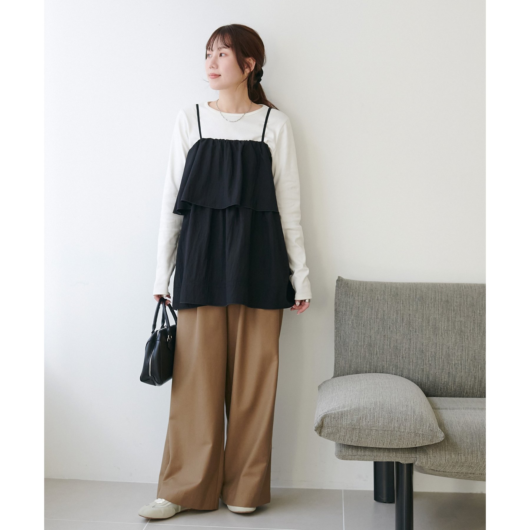 生地感的にも、ニットからTシャツキャミソールとシーズンに合わせた着回しができるのでロングシーズン楽しめるアイテムです♪