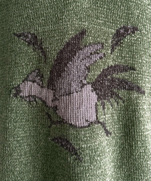 ダブルジャガードで大胆に描かれたルースターモチーフが印象的で、