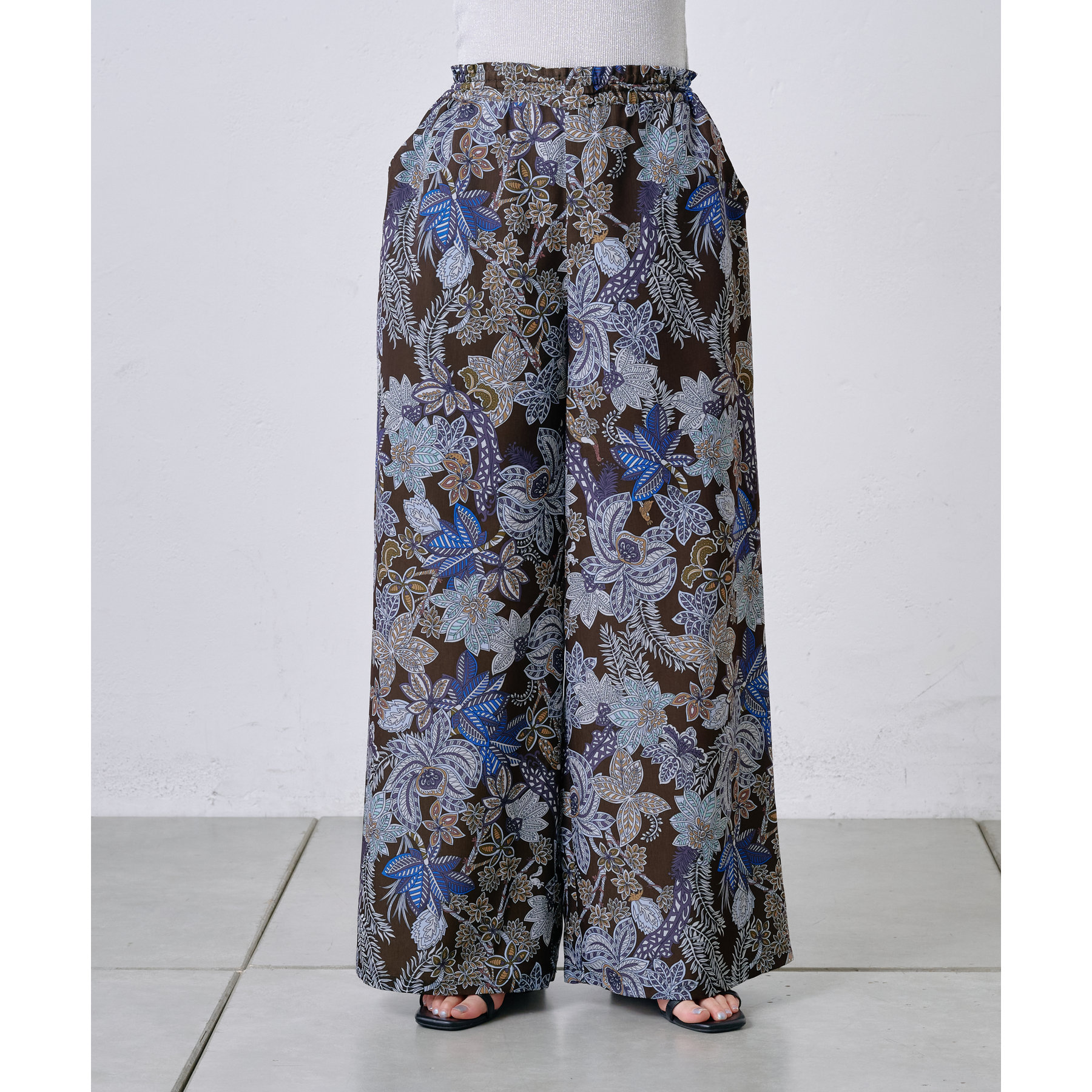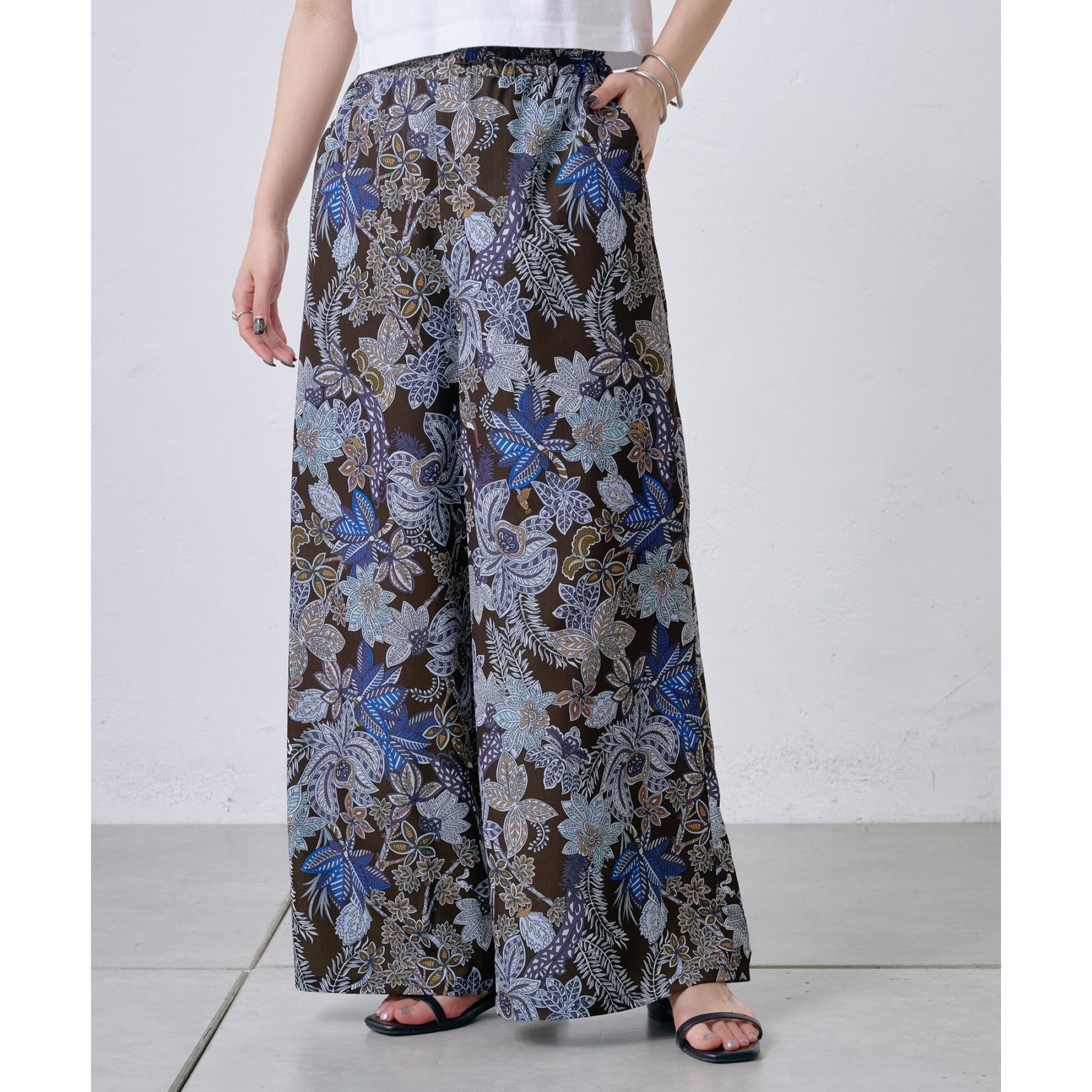 【スカーフ柄で魅せるリラックスワイドパンツ】