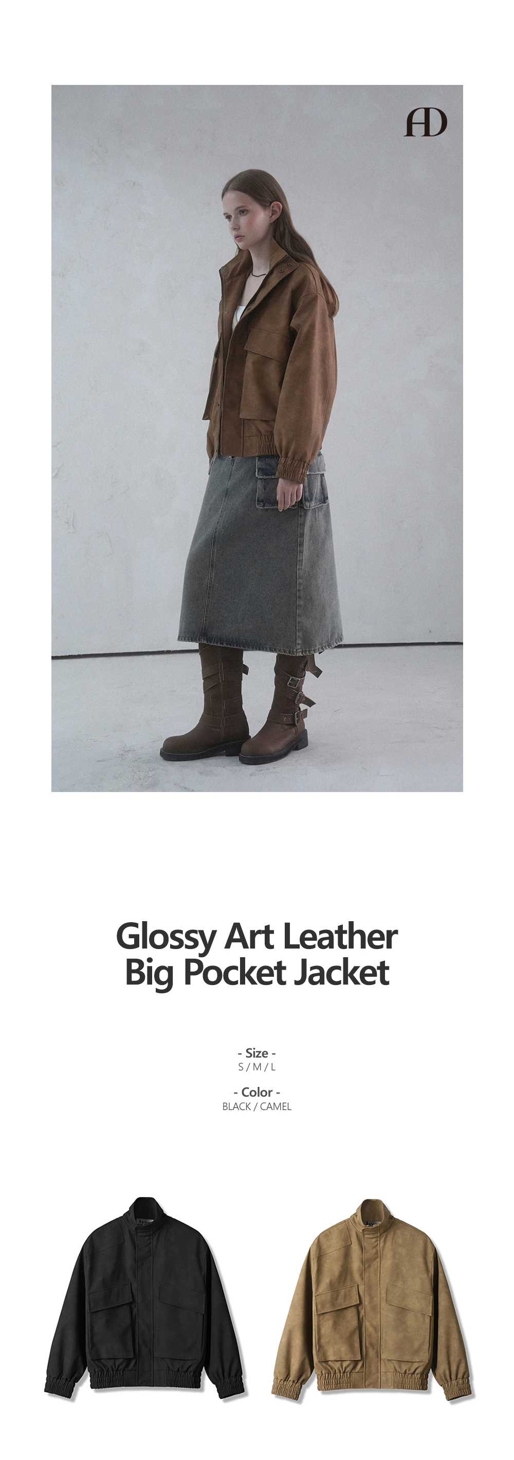 Glossy Art Leather Big Pocket Jacket - 2COL