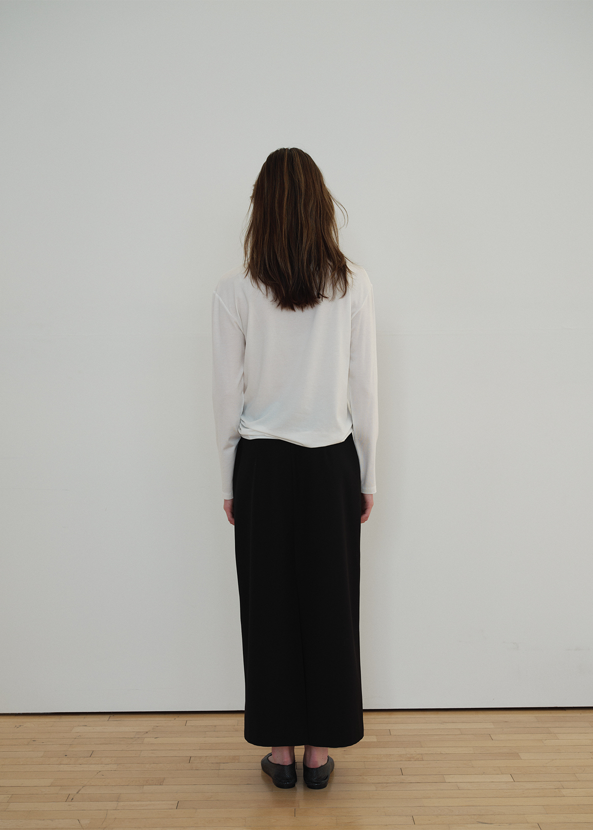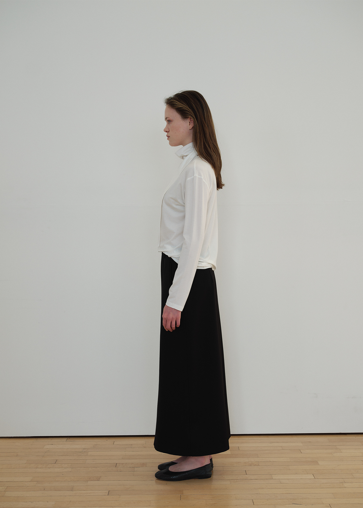 シルキーに流れる TENCEL 混素材で仕立てたハイネックタイ Tシャツです。とろみのあるドレープとやわらかな伸縮性が合わさり、身体をやさしく包み込み、単品でもレイヤードでも季節感のある着こなしが楽しめます。