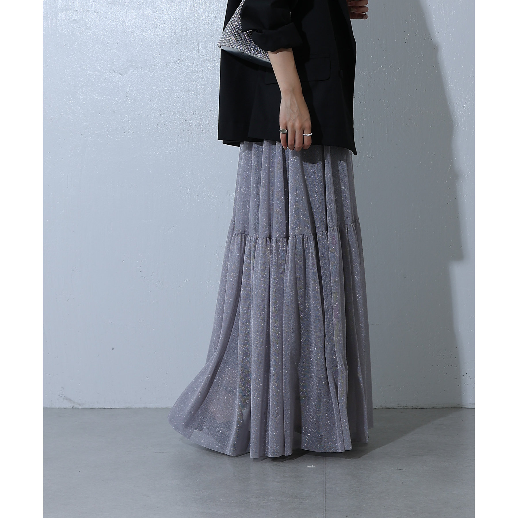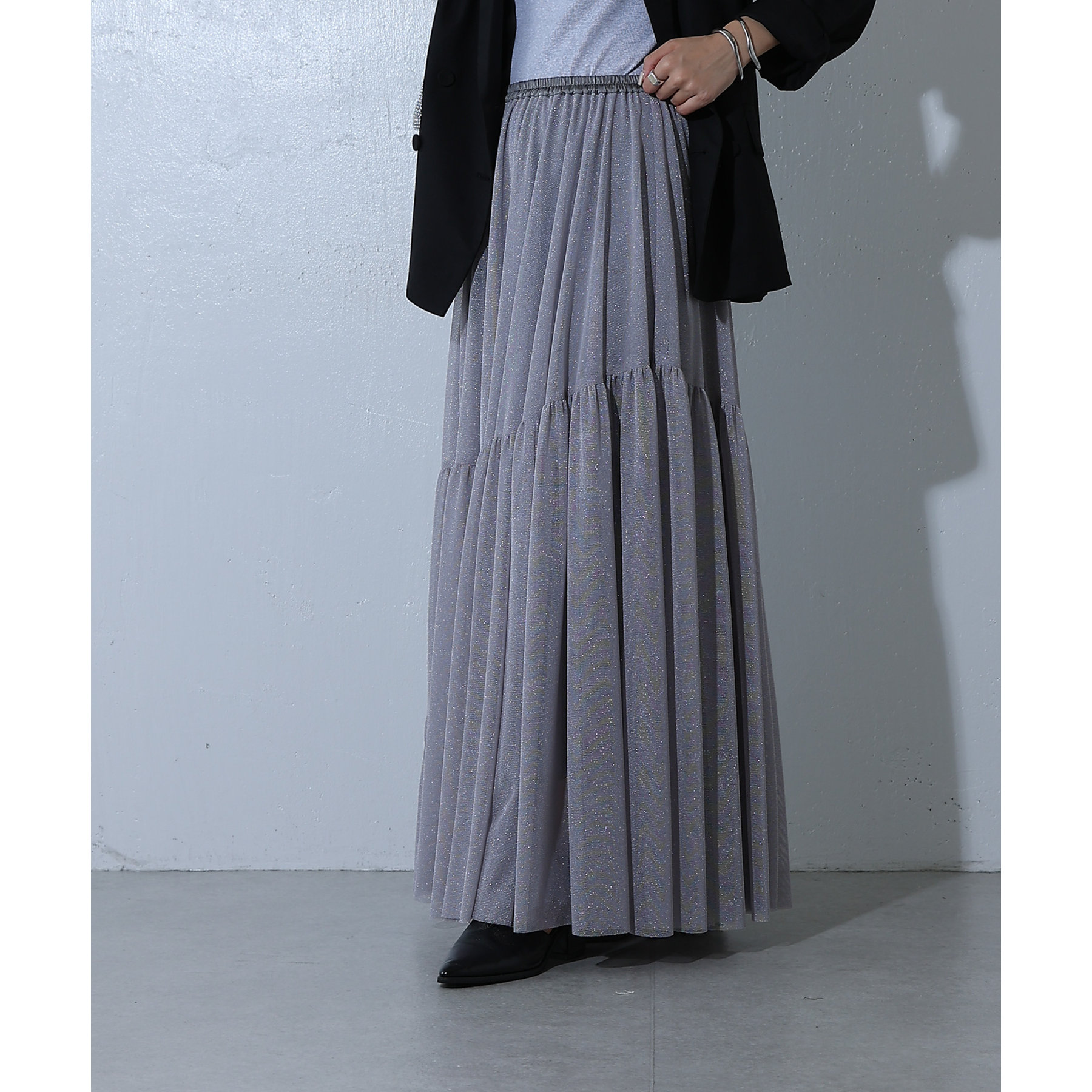 【トレンド感あるキラキラ素材のラメチュールティアードスカート】