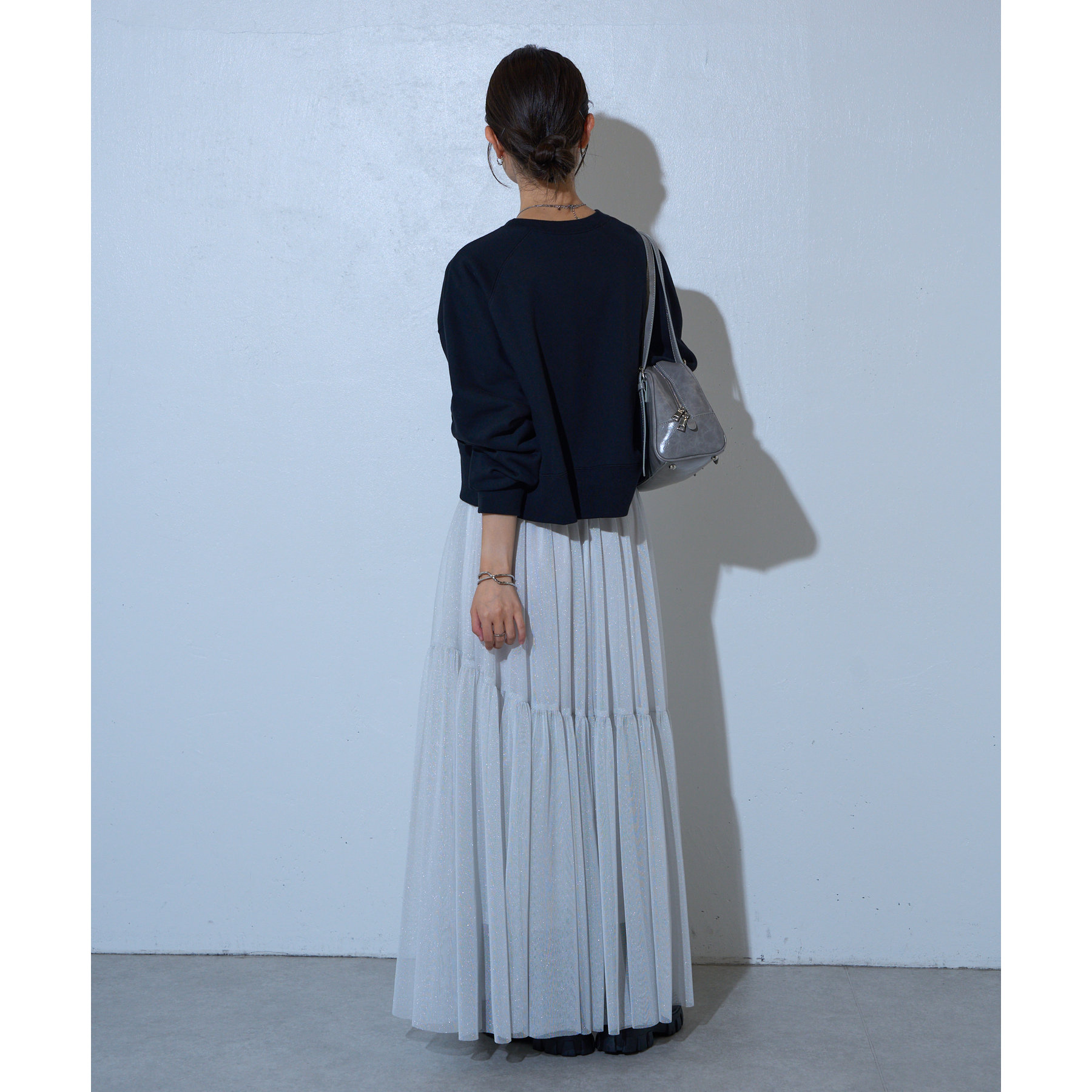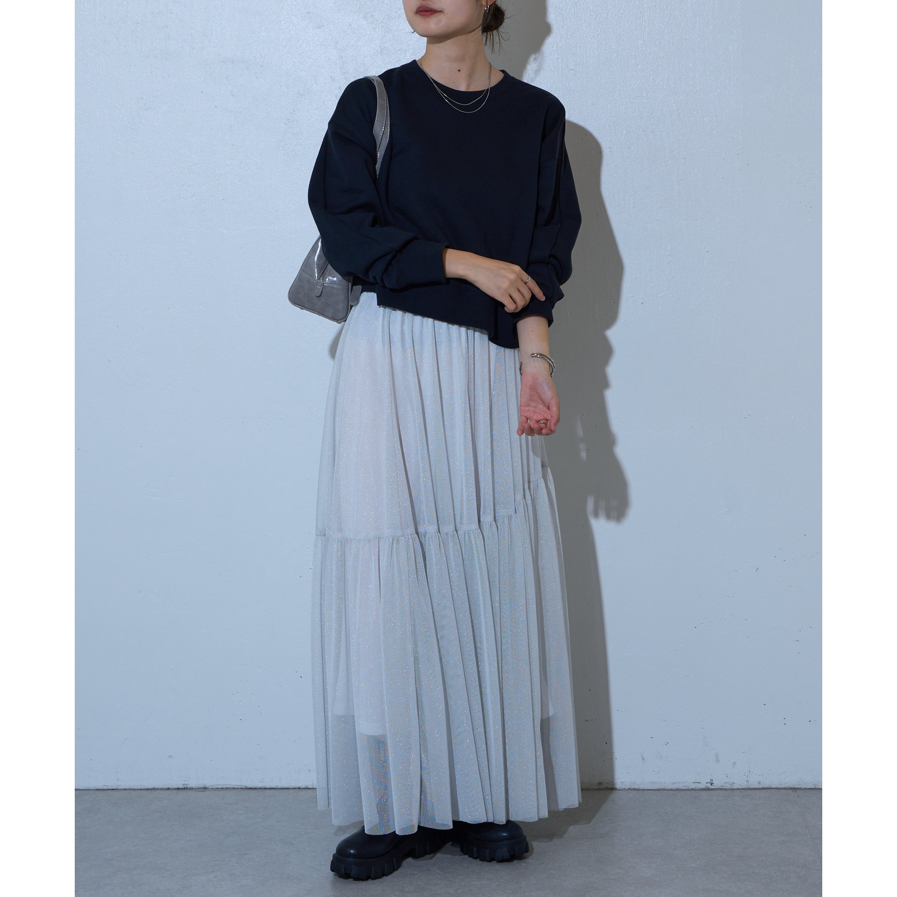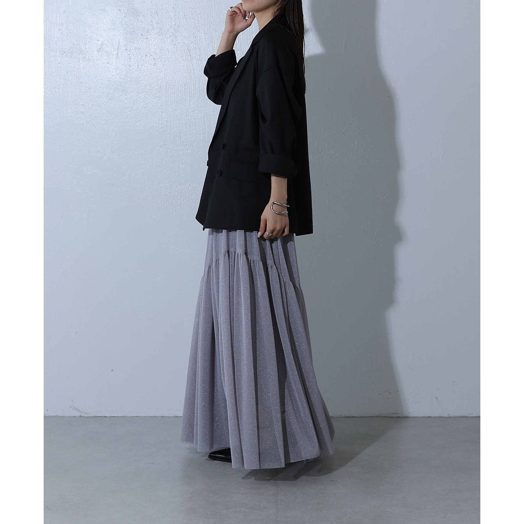 トレンド感のある繊細なラメを施したチュール素材のティアードスカート