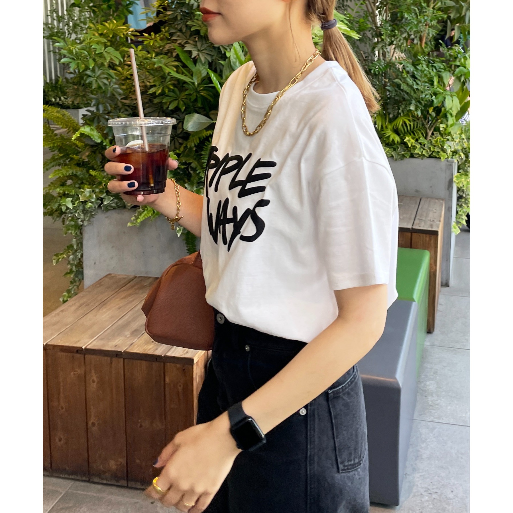 緩めのフォントのプリントがフェミニンな印象に仕上がるフクレプリントTシャツ。大きく浮き出た発砲プリントは、オンオフ問わず着回しの効くデザインです。普段のコーディネートに取り入れやすいベーシックなカラーと爽やかなサックスの色味が加わり、シーズンムード盛り上がること間違いなしです。