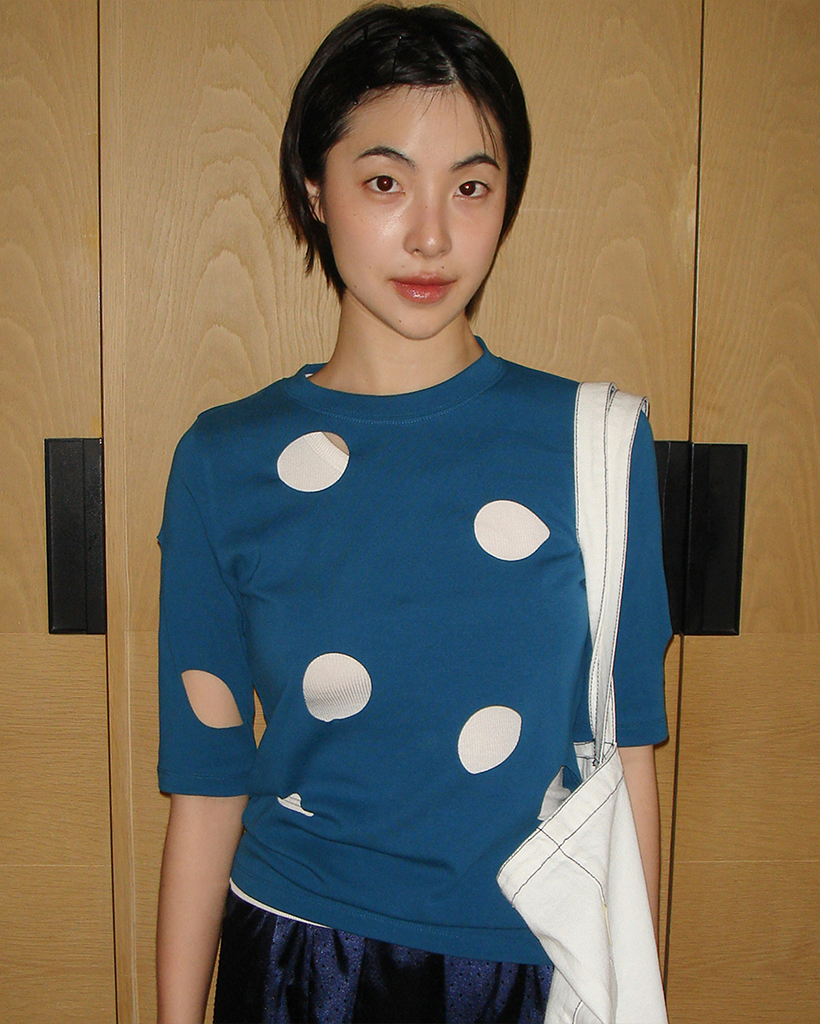 HOLE DETAIL T-SHIRT_PEACOCK BLUE
