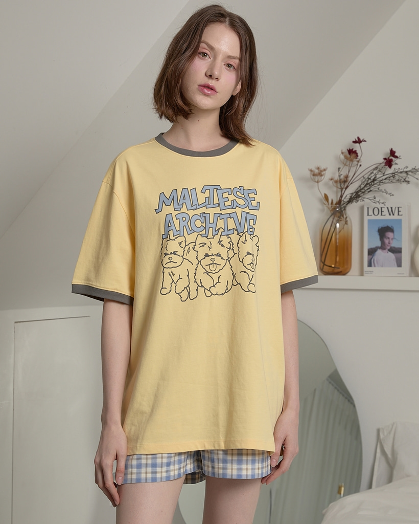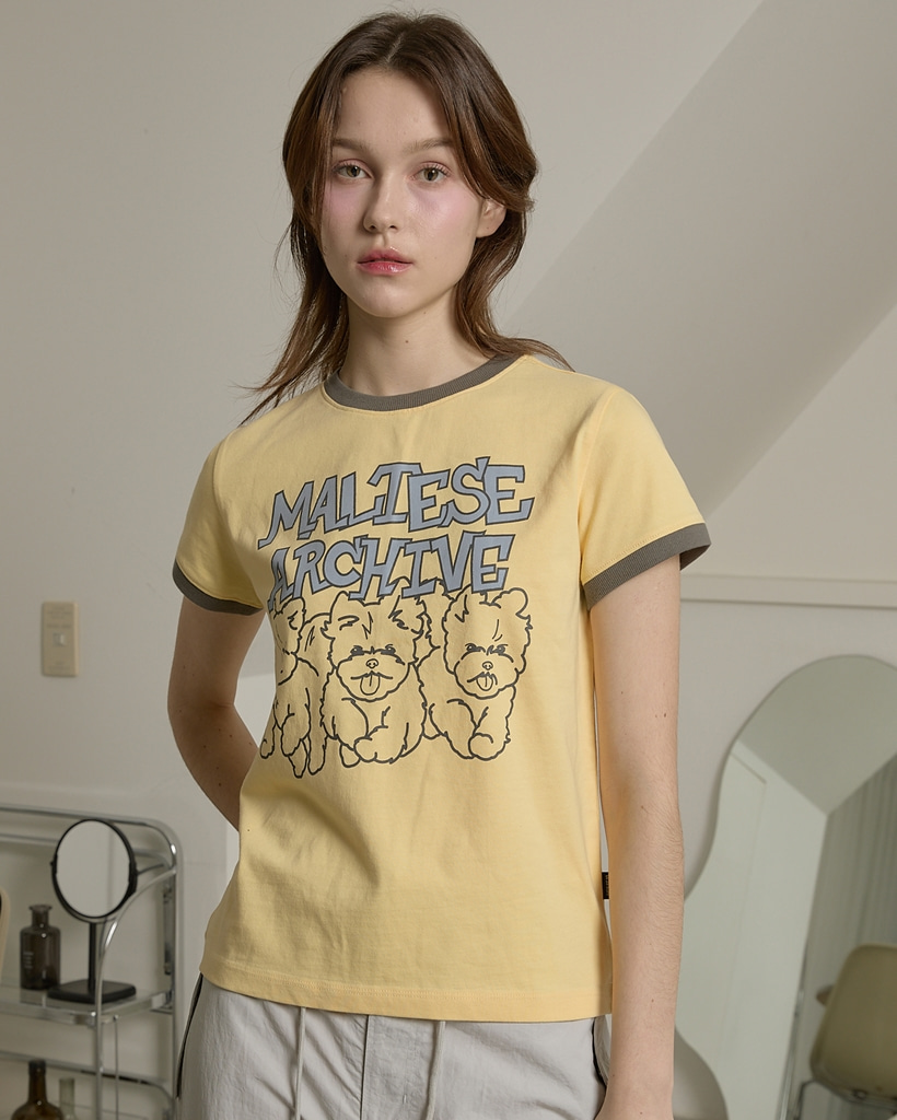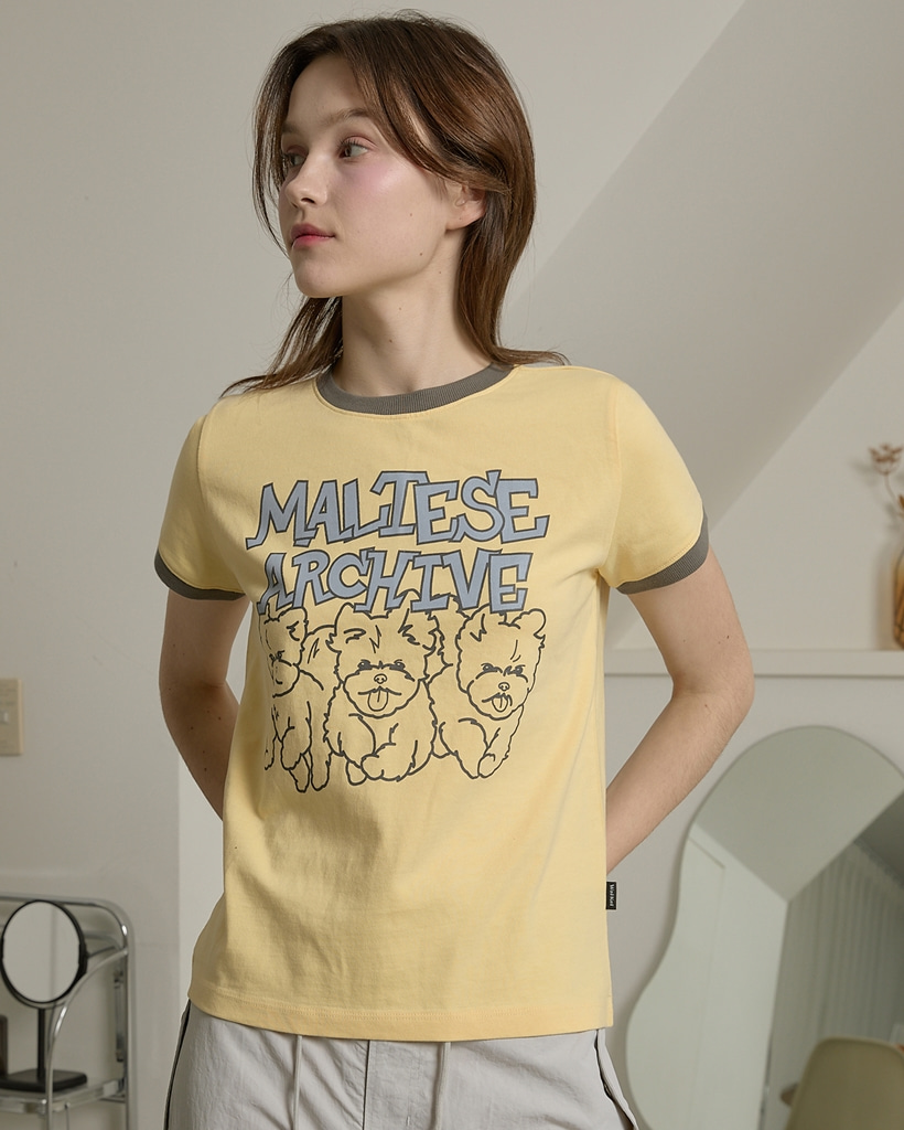 Maltese archive line graphic ringer half sleeve T-shirt LIGHT YELLOW