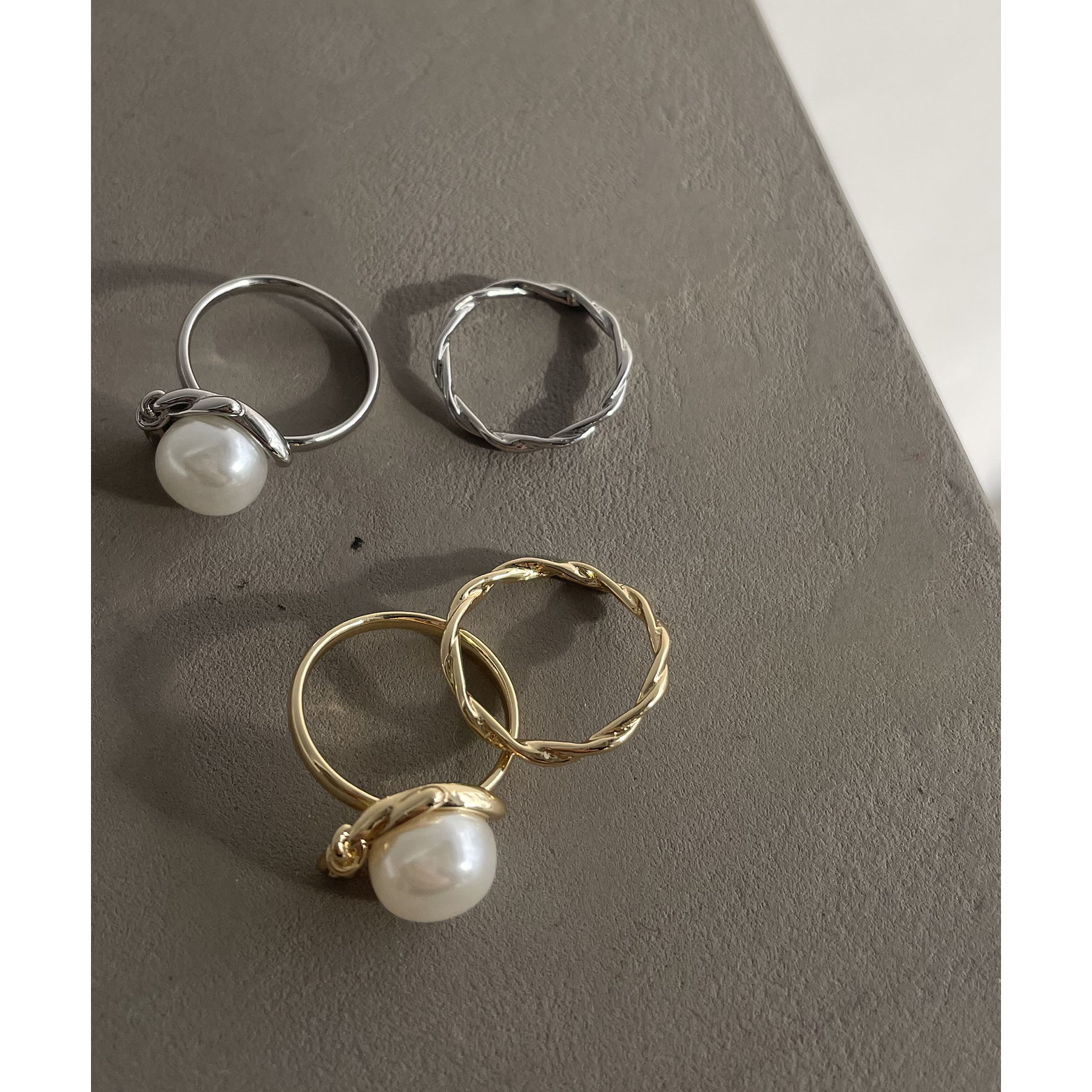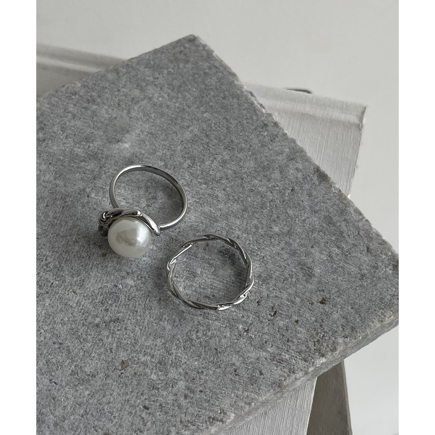 ツイストしたラインが美しいリングの2個セット。