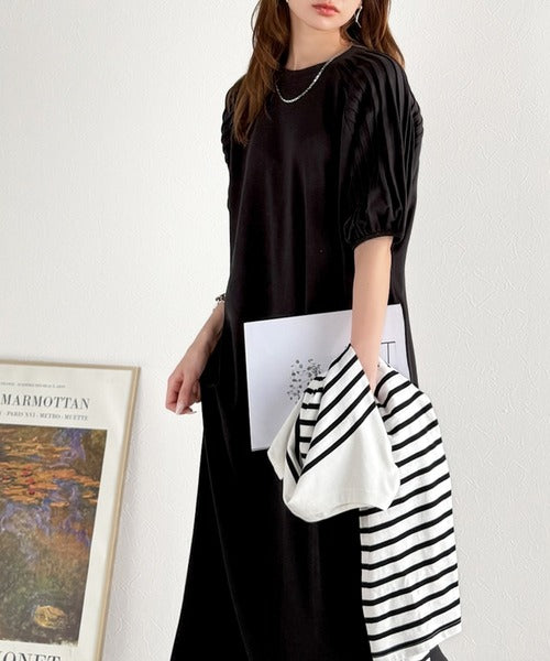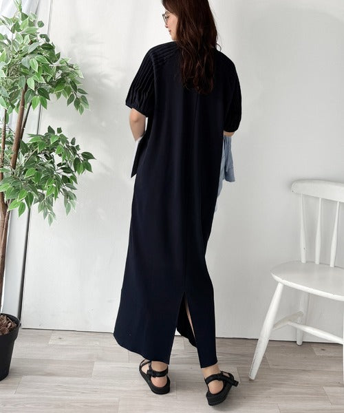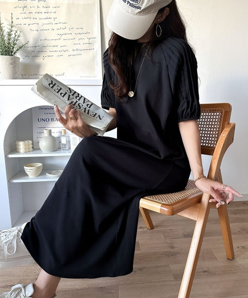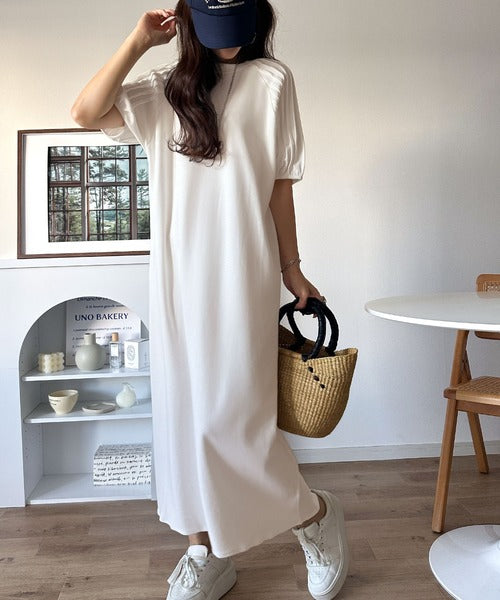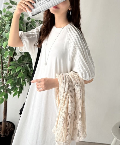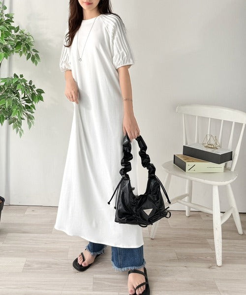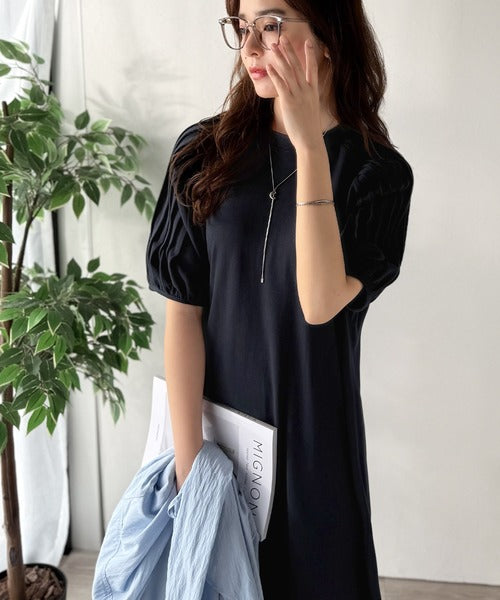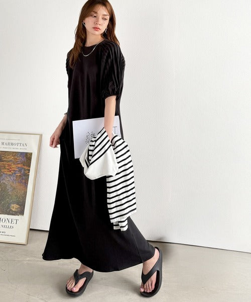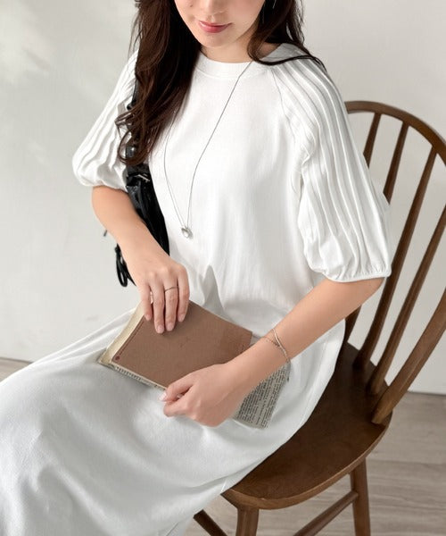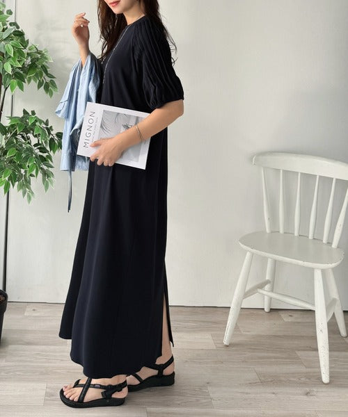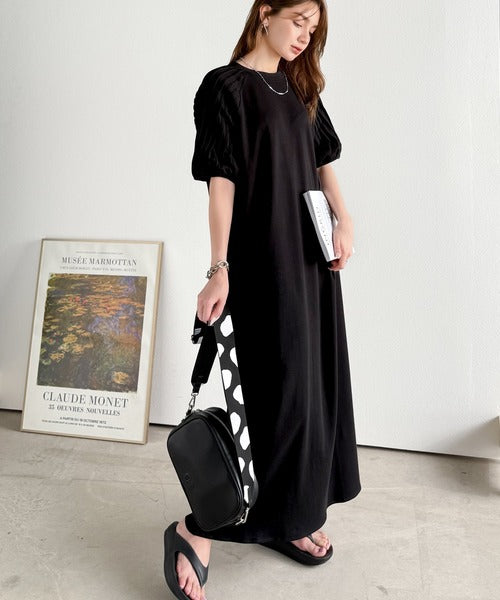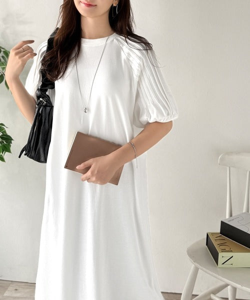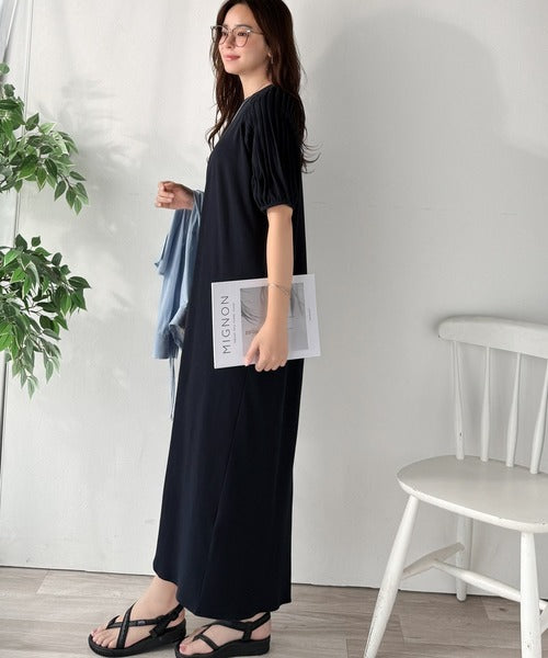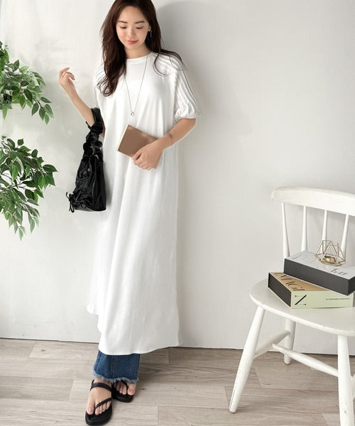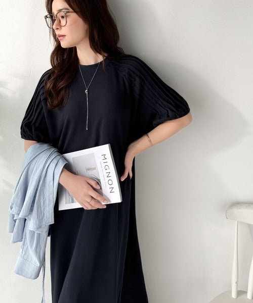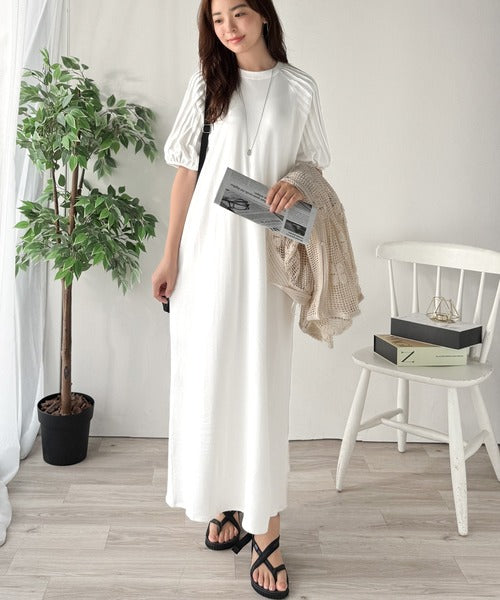 綿100% さらりと上品にきまる。袖タックラグラン半袖ワンピース(ロング丈) ce1300022