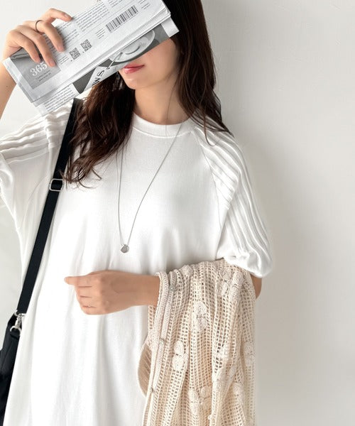 袖山タック入りラグランが肩を華奢に演出し、