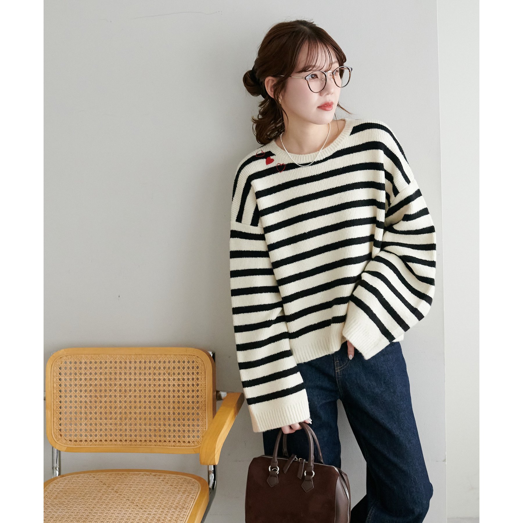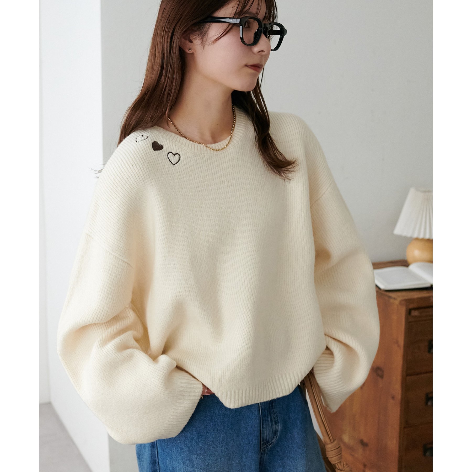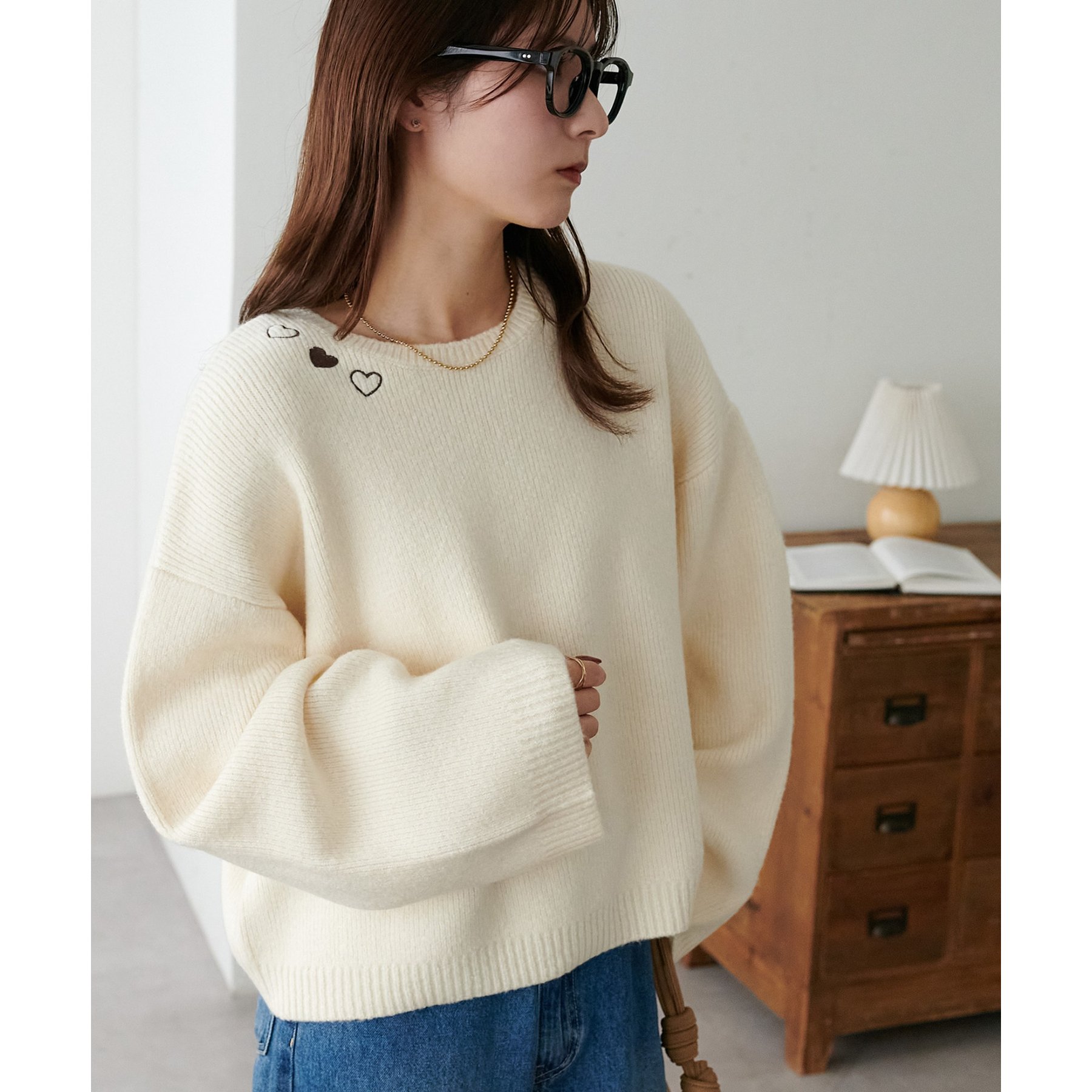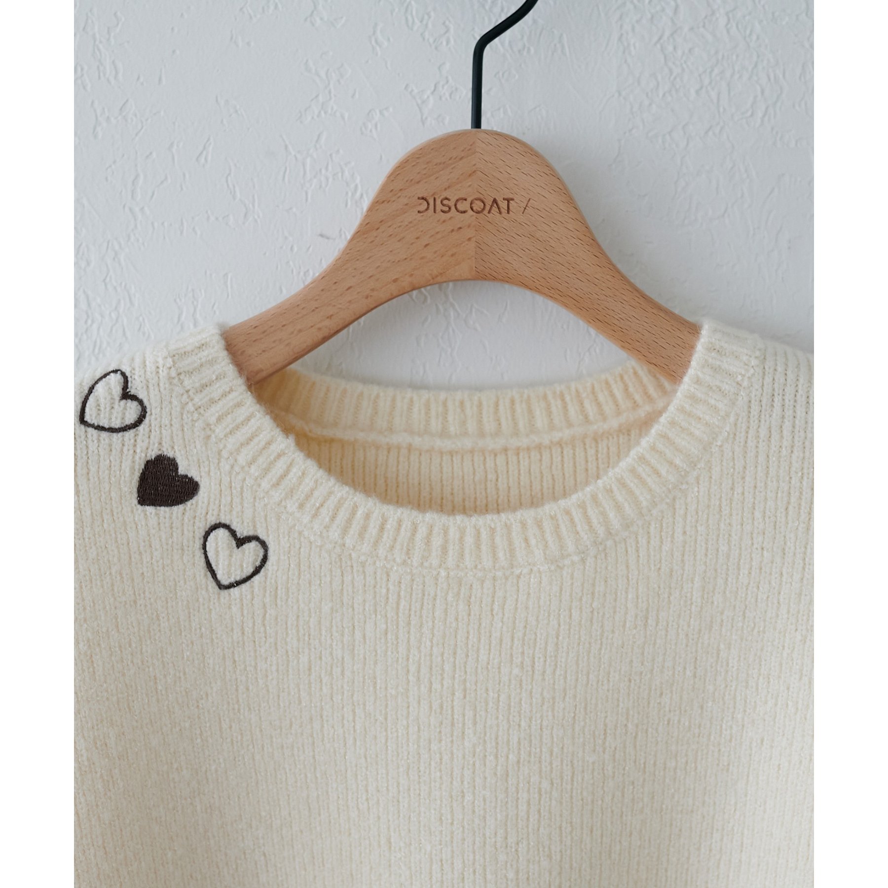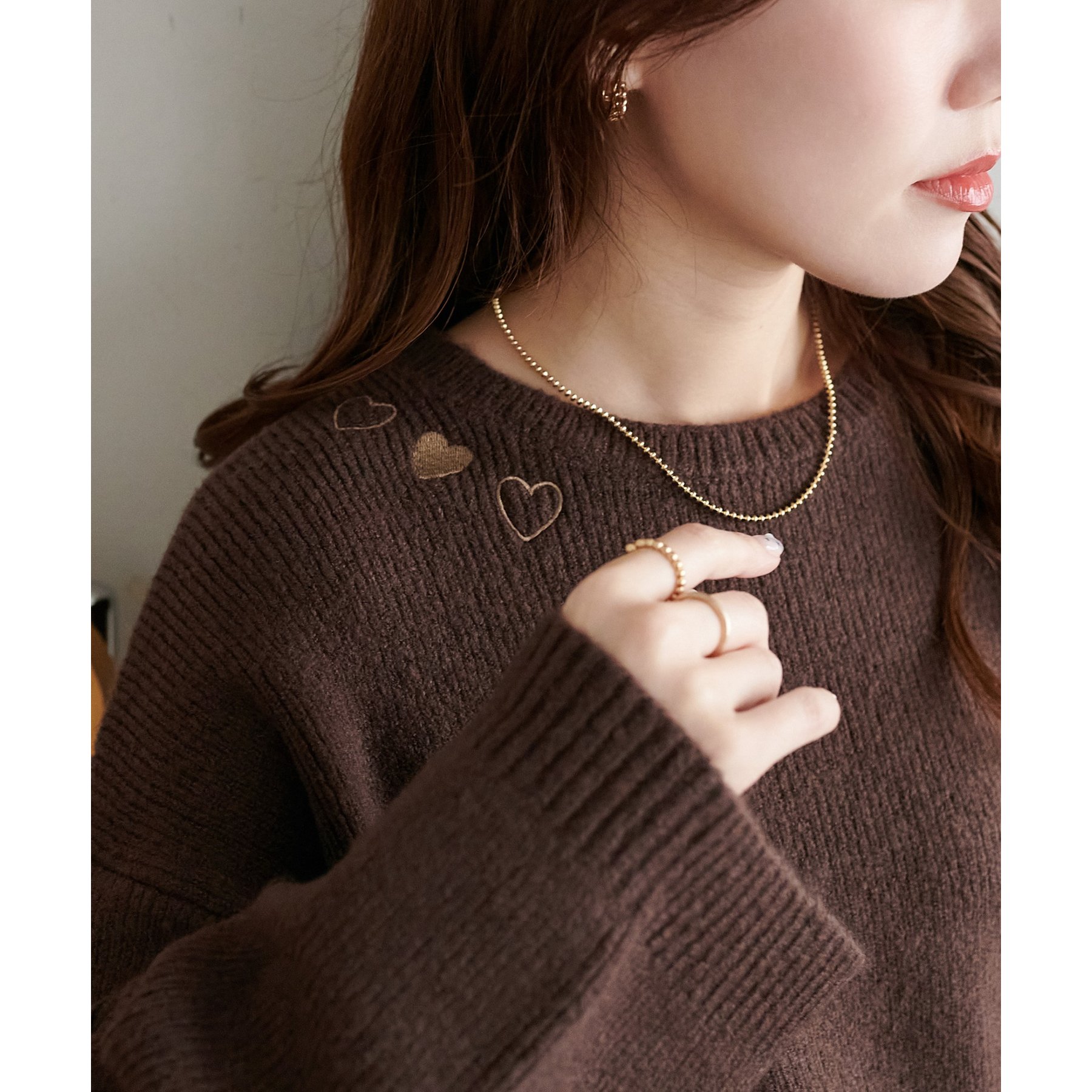 160cmスタッフ:伸首元のハート刺繍が控えめで、甘すぎず大人かわいい印象。