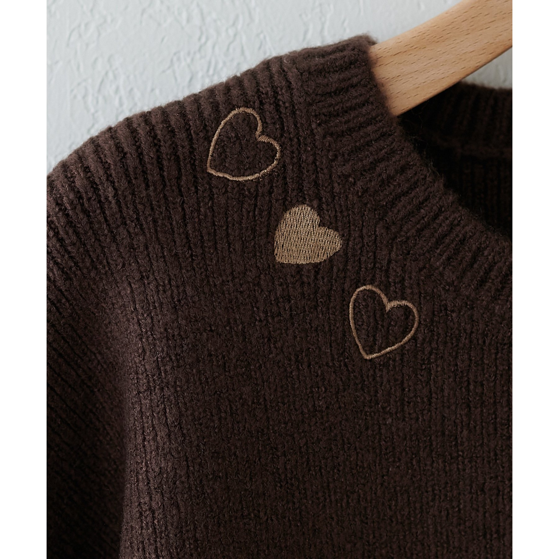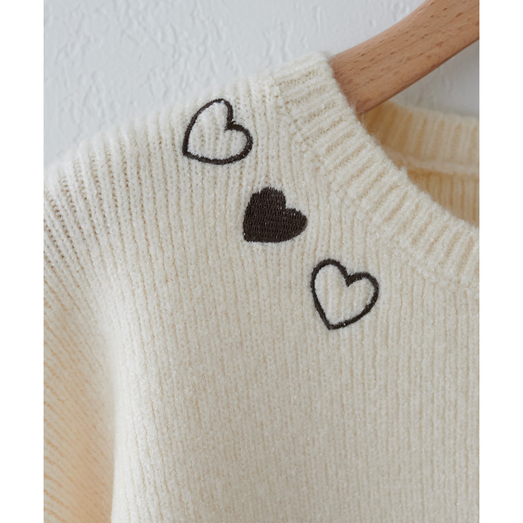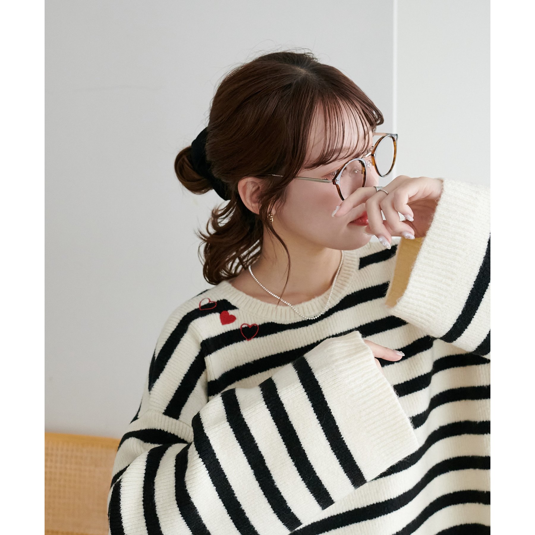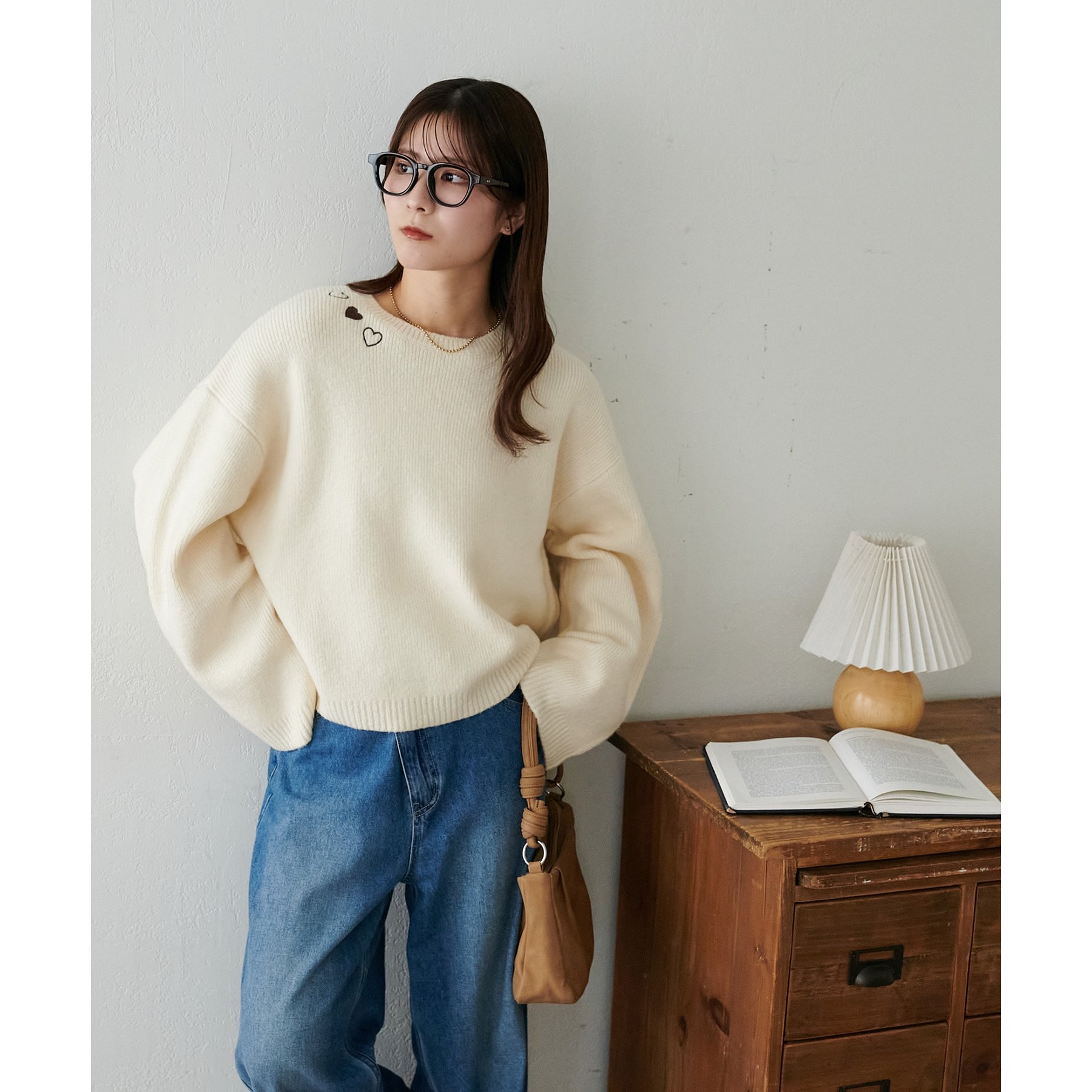 160cmスタッフ:伸首元のハート刺繍が控えめで、甘すぎず大人かわいい印象。
