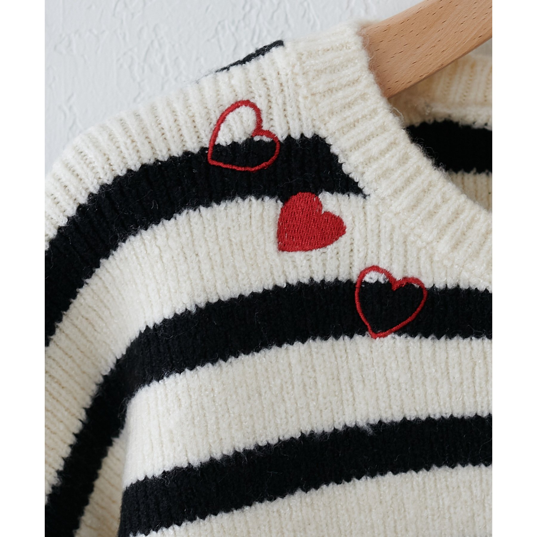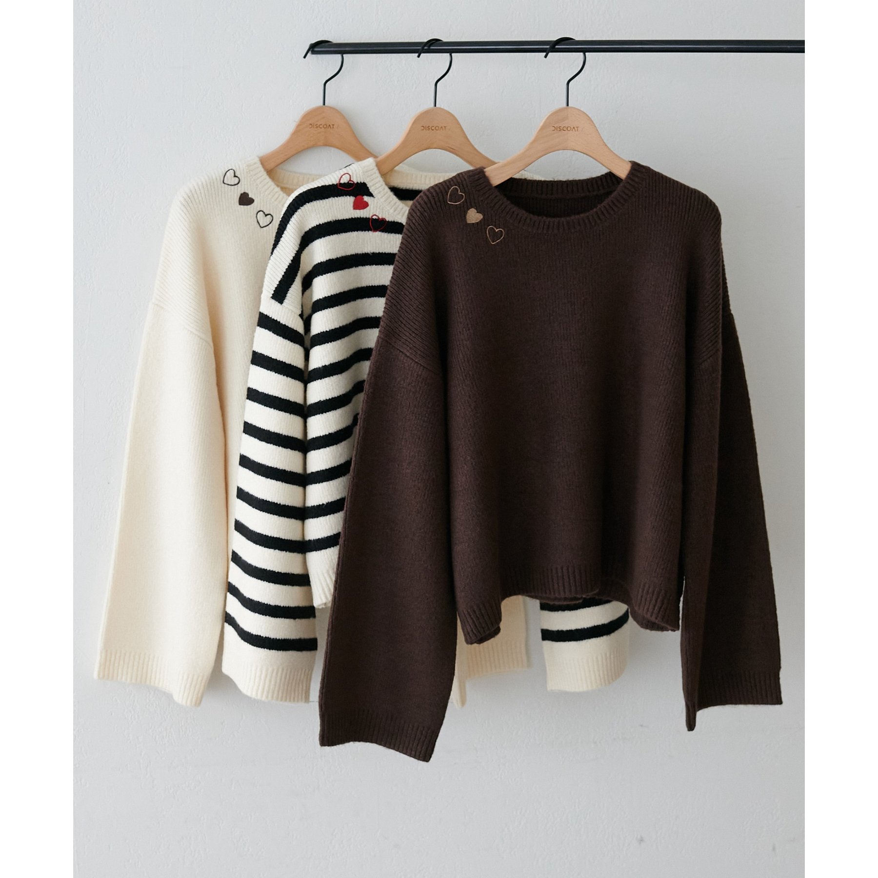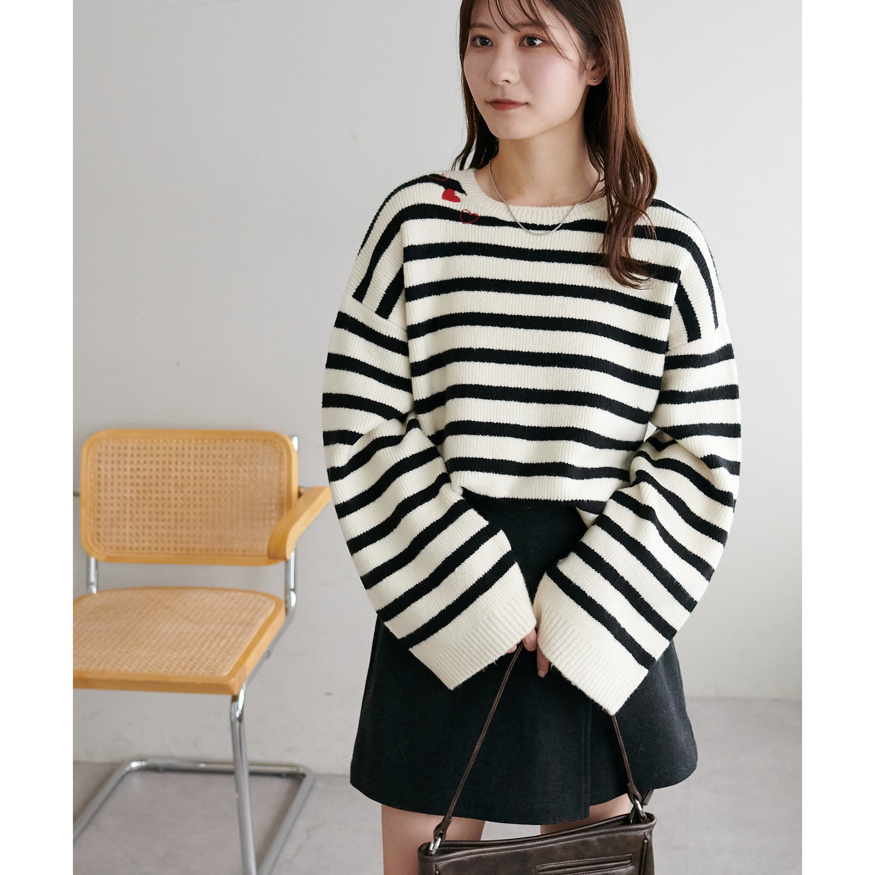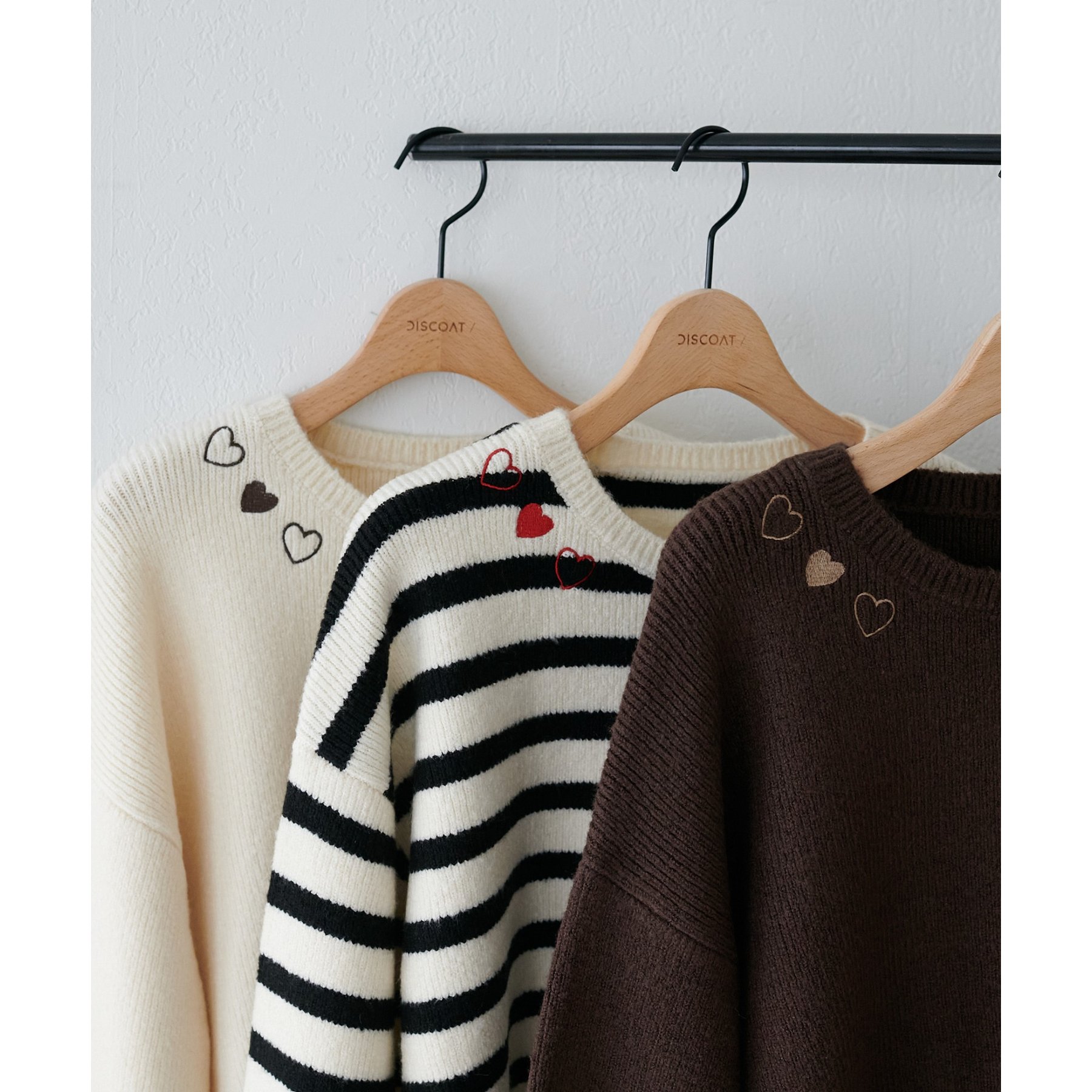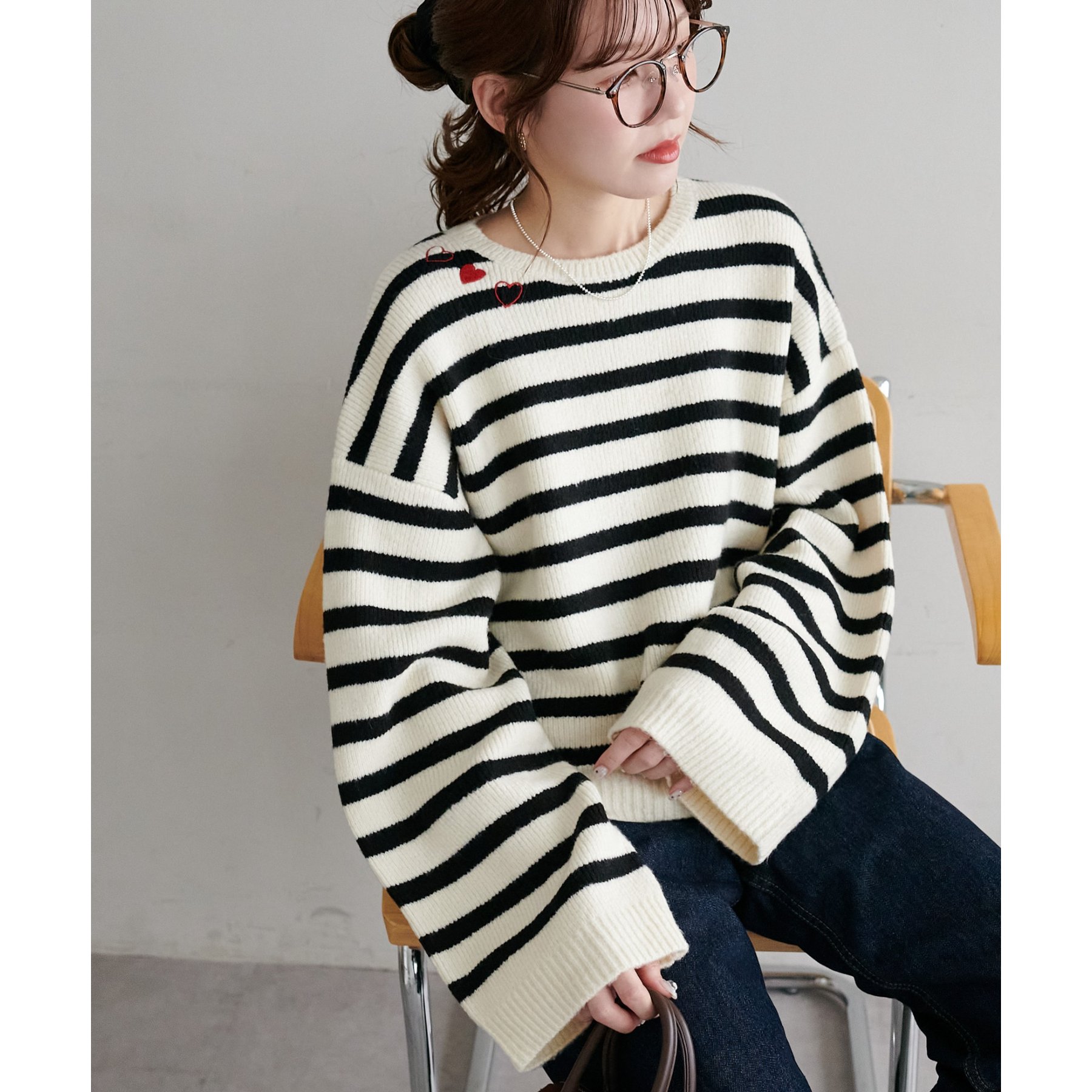 160cmスタッフ:伸首元のハート刺繍が控えめで、甘すぎず大人かわいい印象。