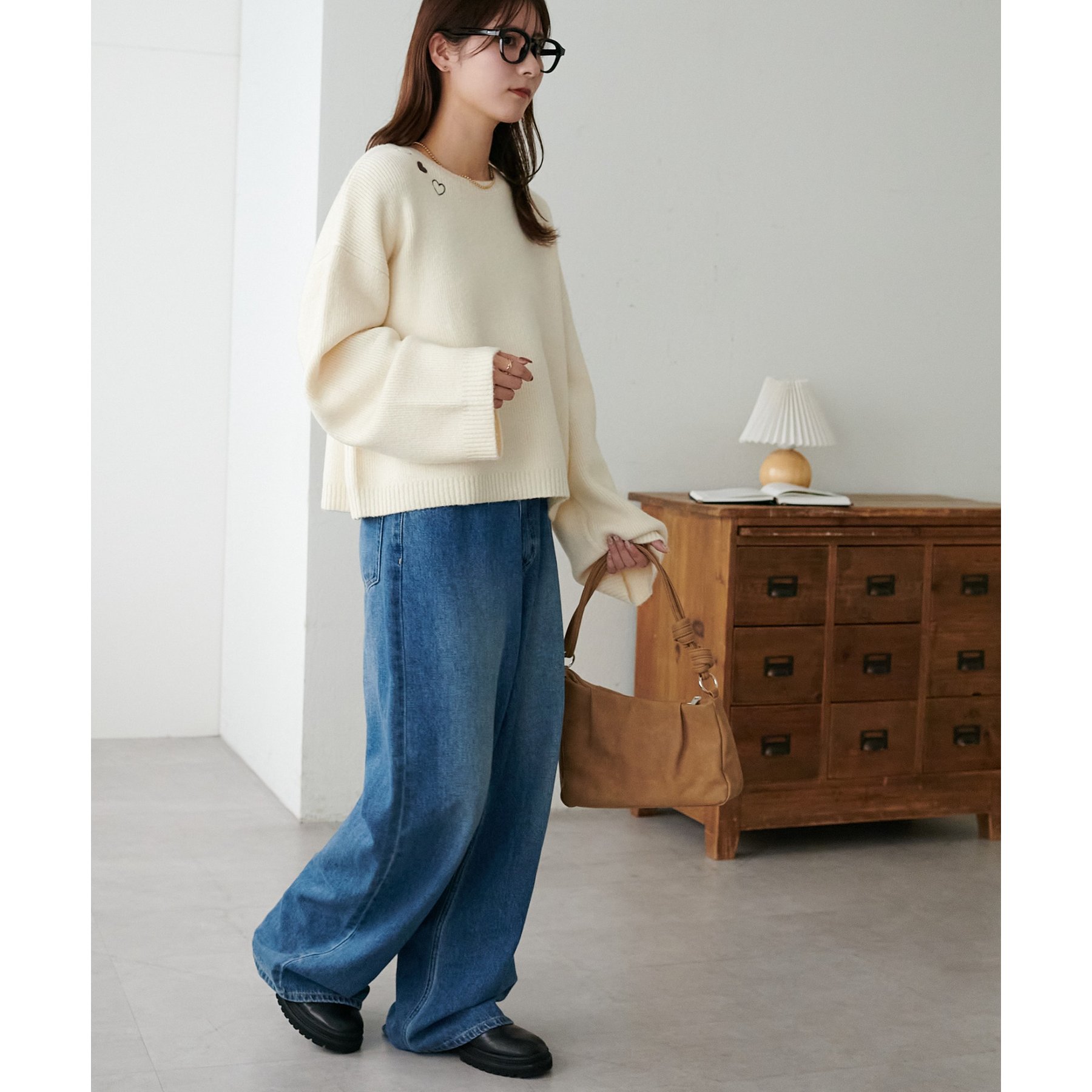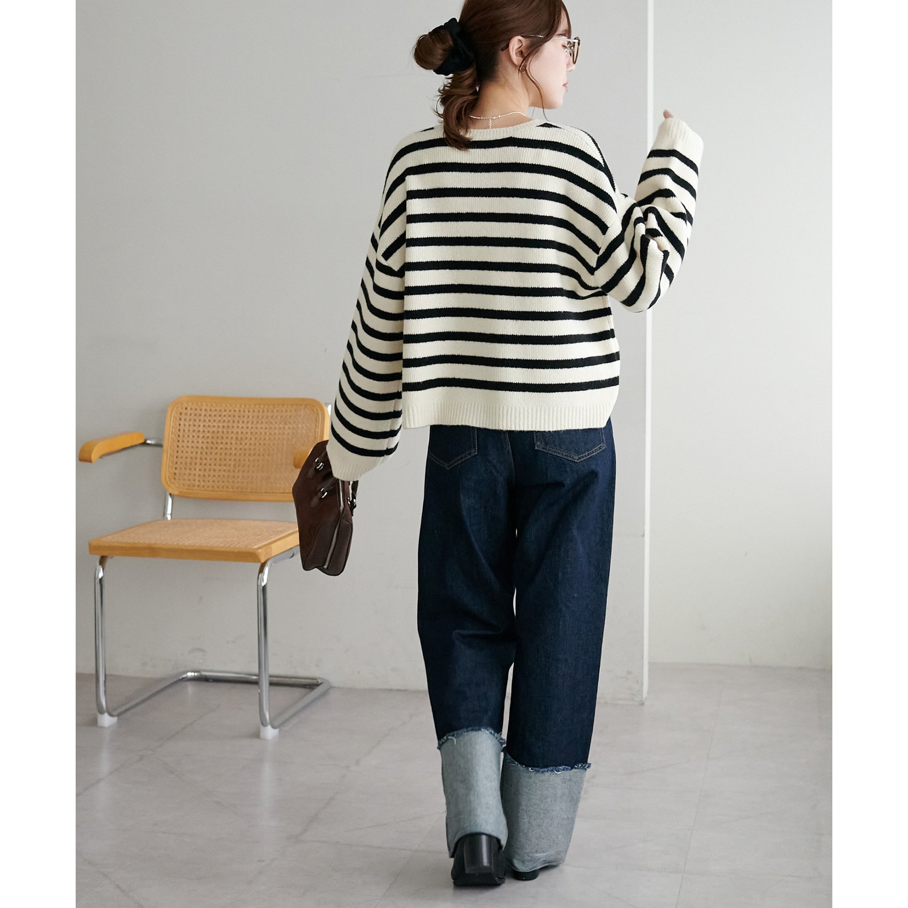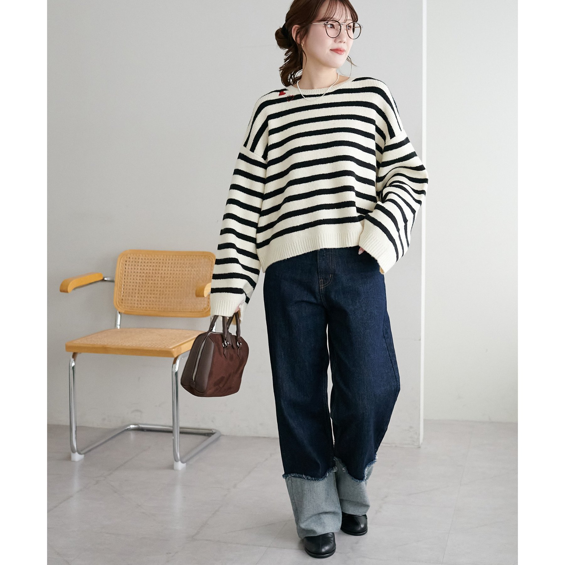 デニム合わせでカジュアルに、スカートやスラックスで上品にも着回せる万能ニット。