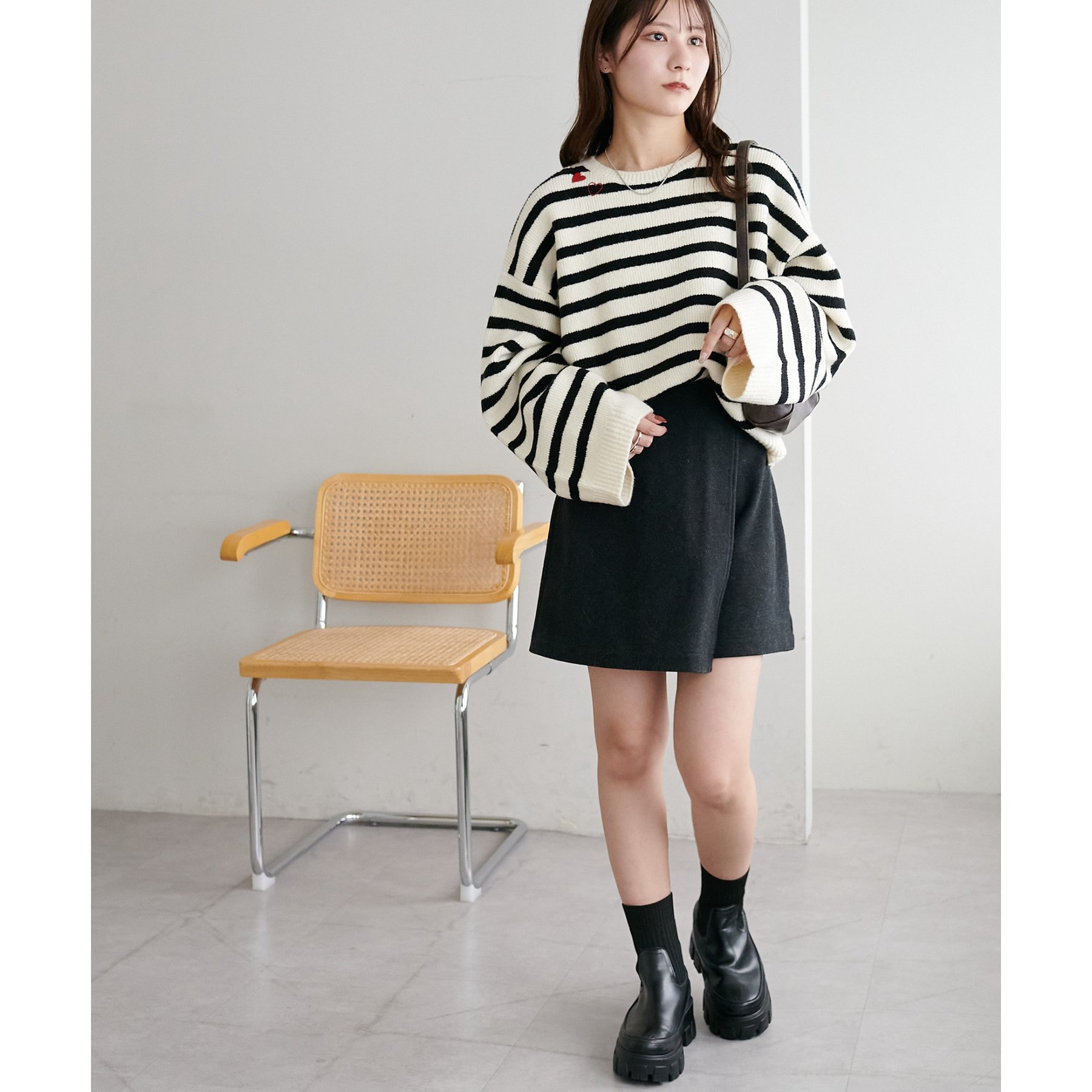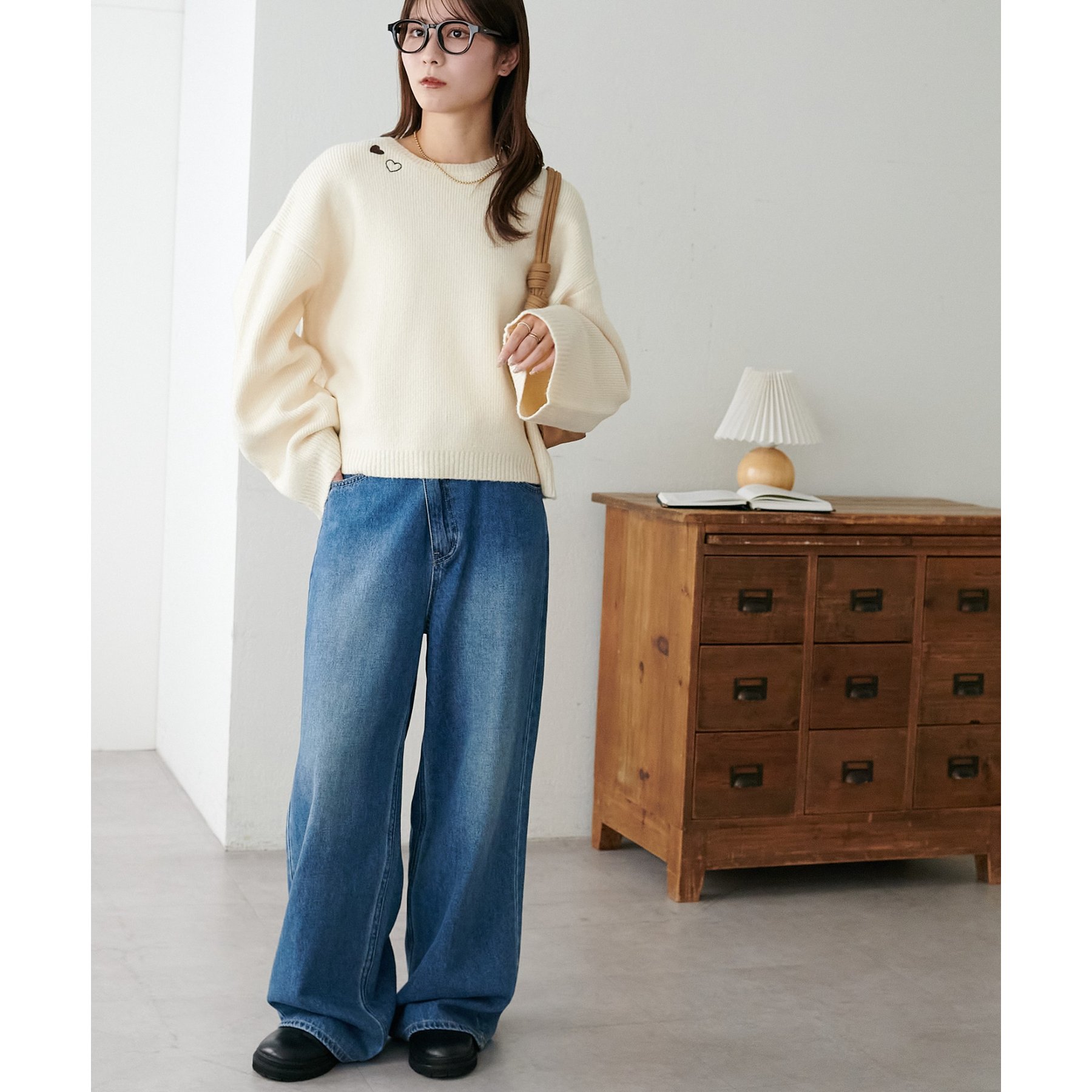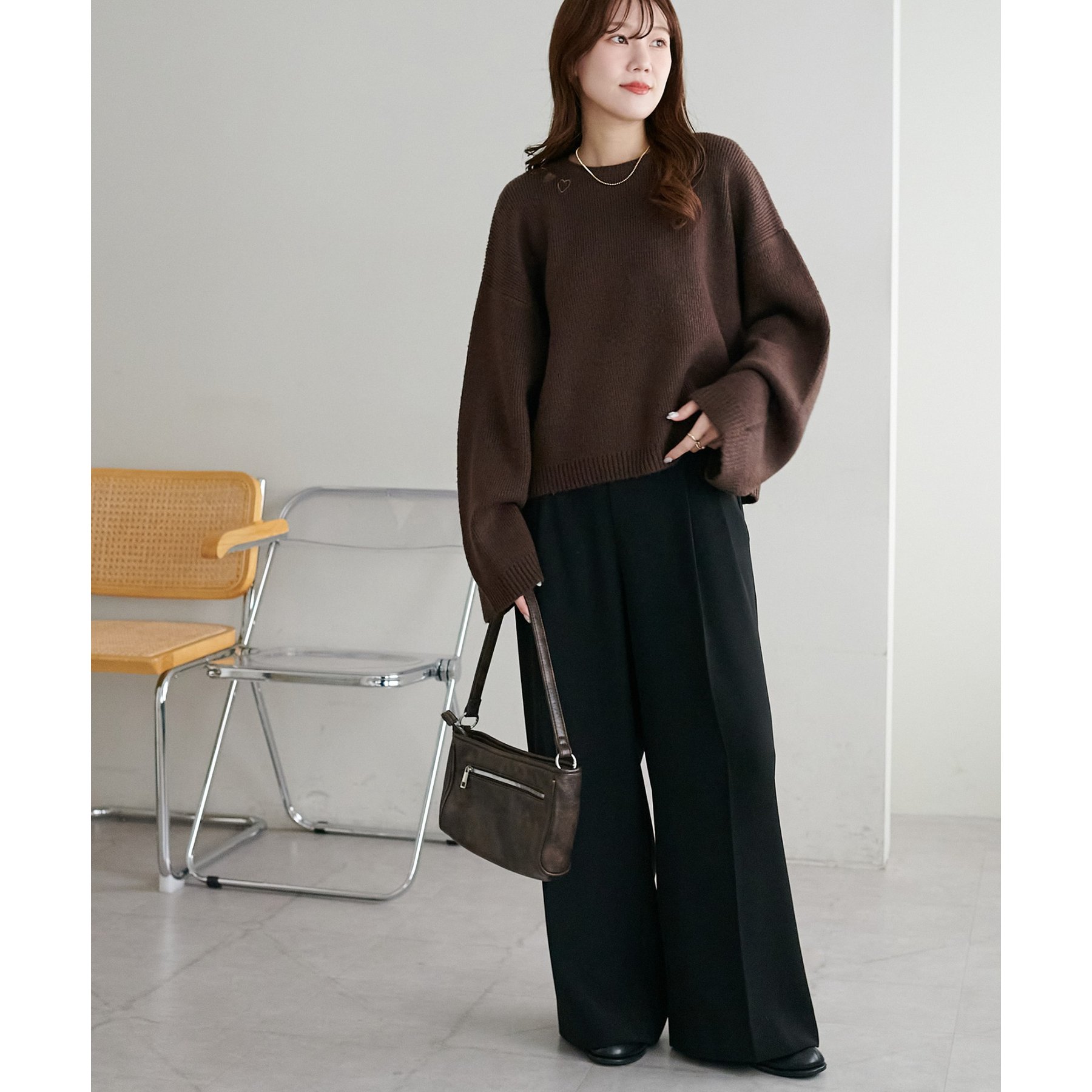 デニム合わせでカジュアルに、スカートやスラックスで上品にも着回せる万能ニット。