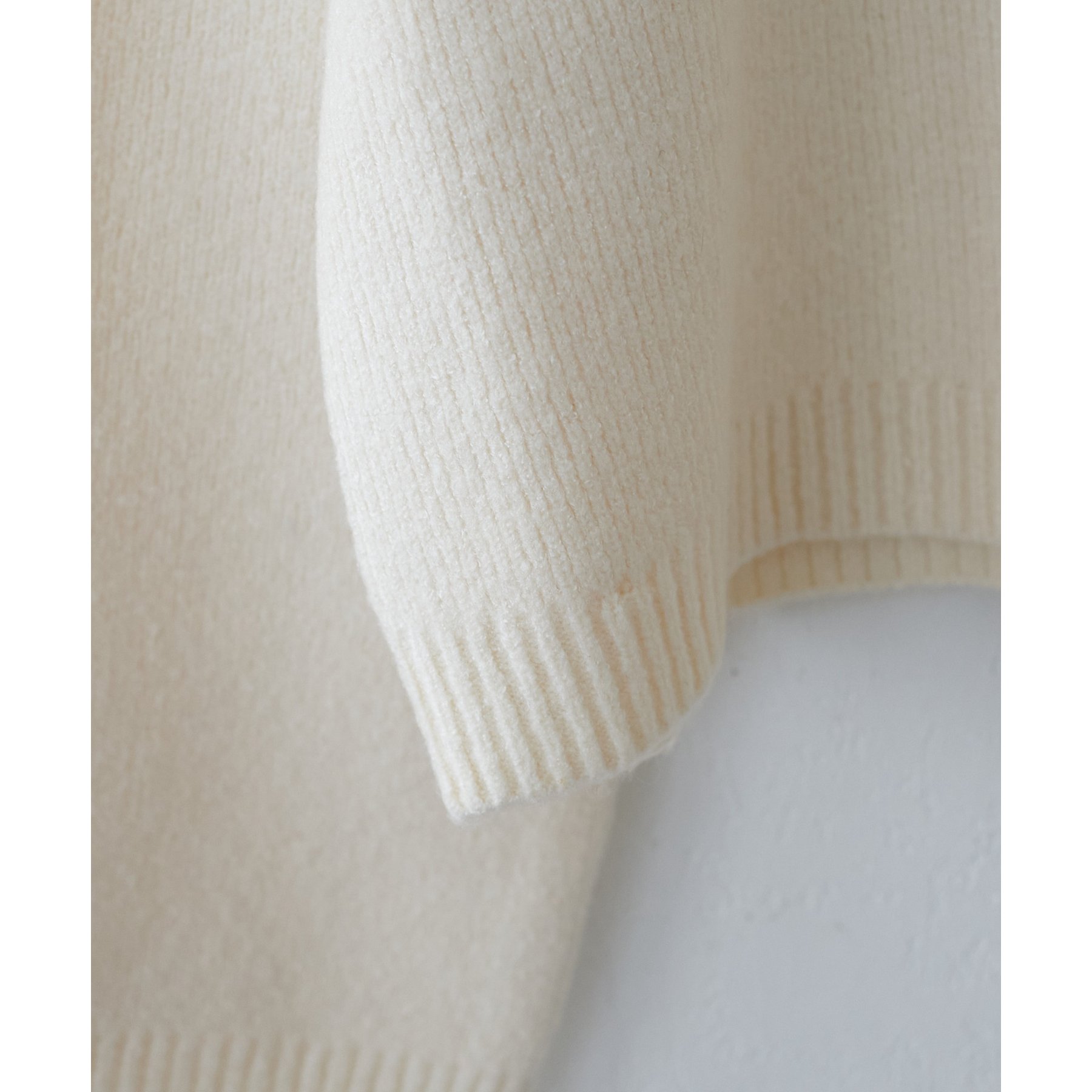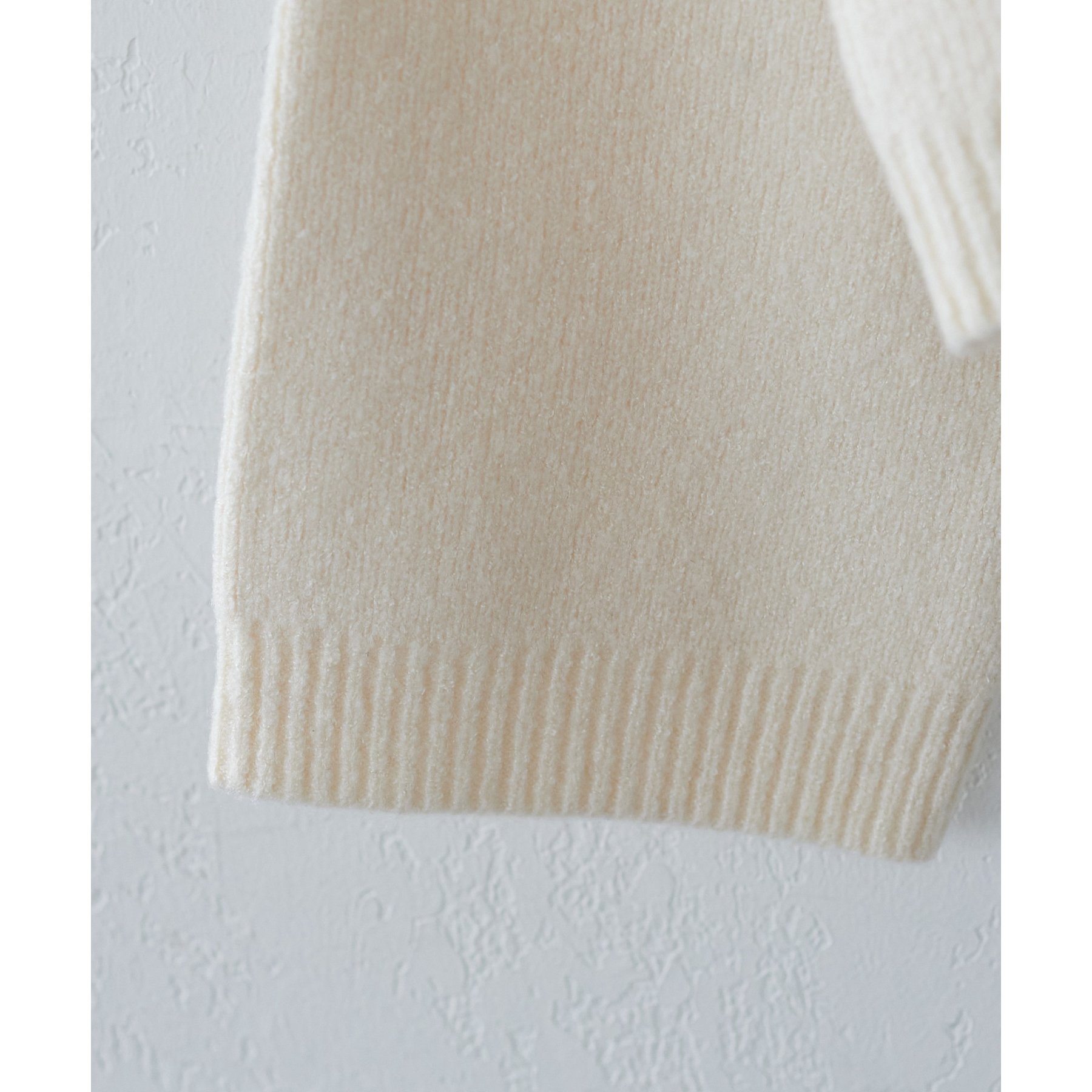 柔らかな風合いのニット素材で、肌あたりが優しくストレスフリーな着心地です。
