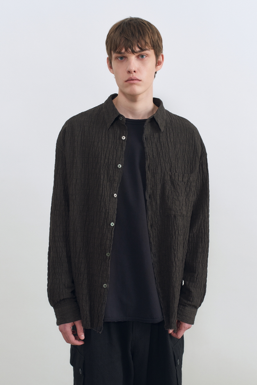 ガーメントダイイングリンクルチェックシャツBROWN