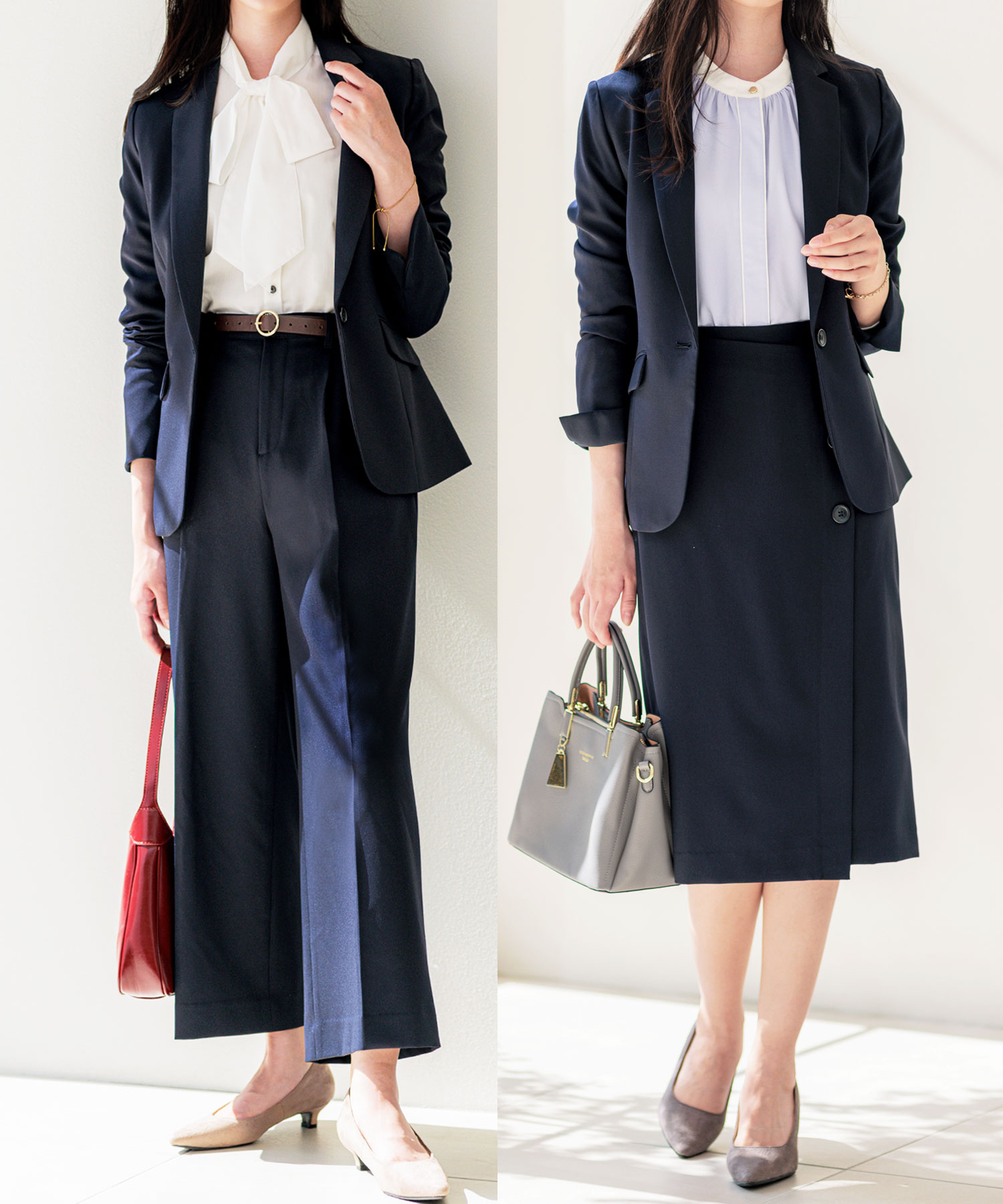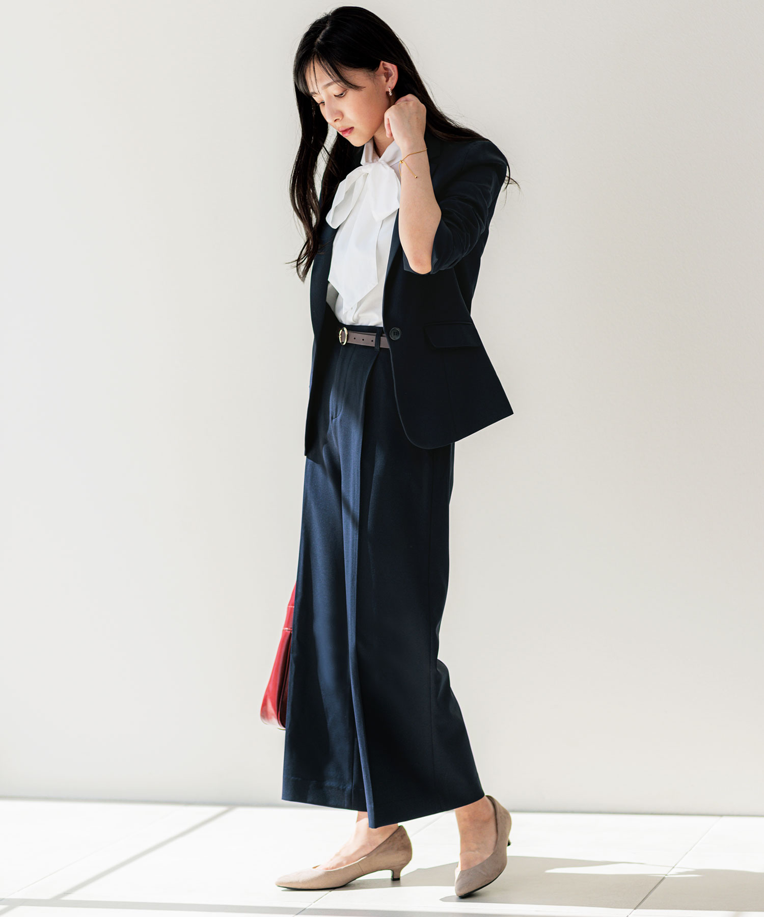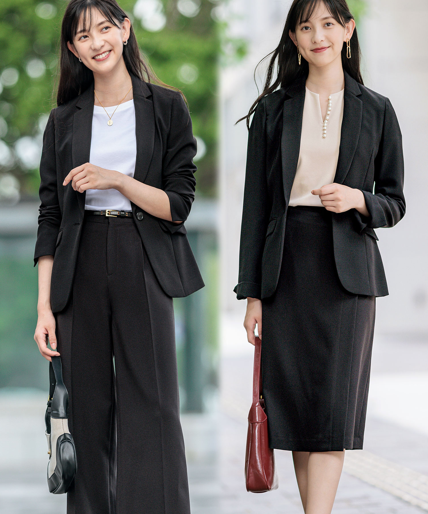 この1セットがあれば、フォーマルなパンツスタイルもスカートスタイルも即完成!