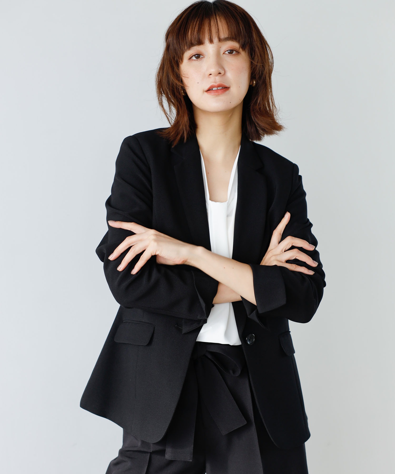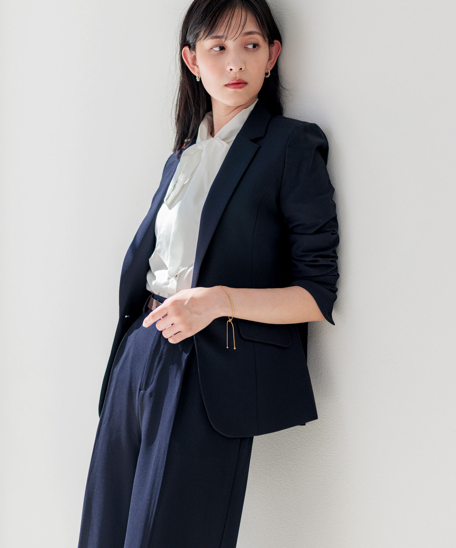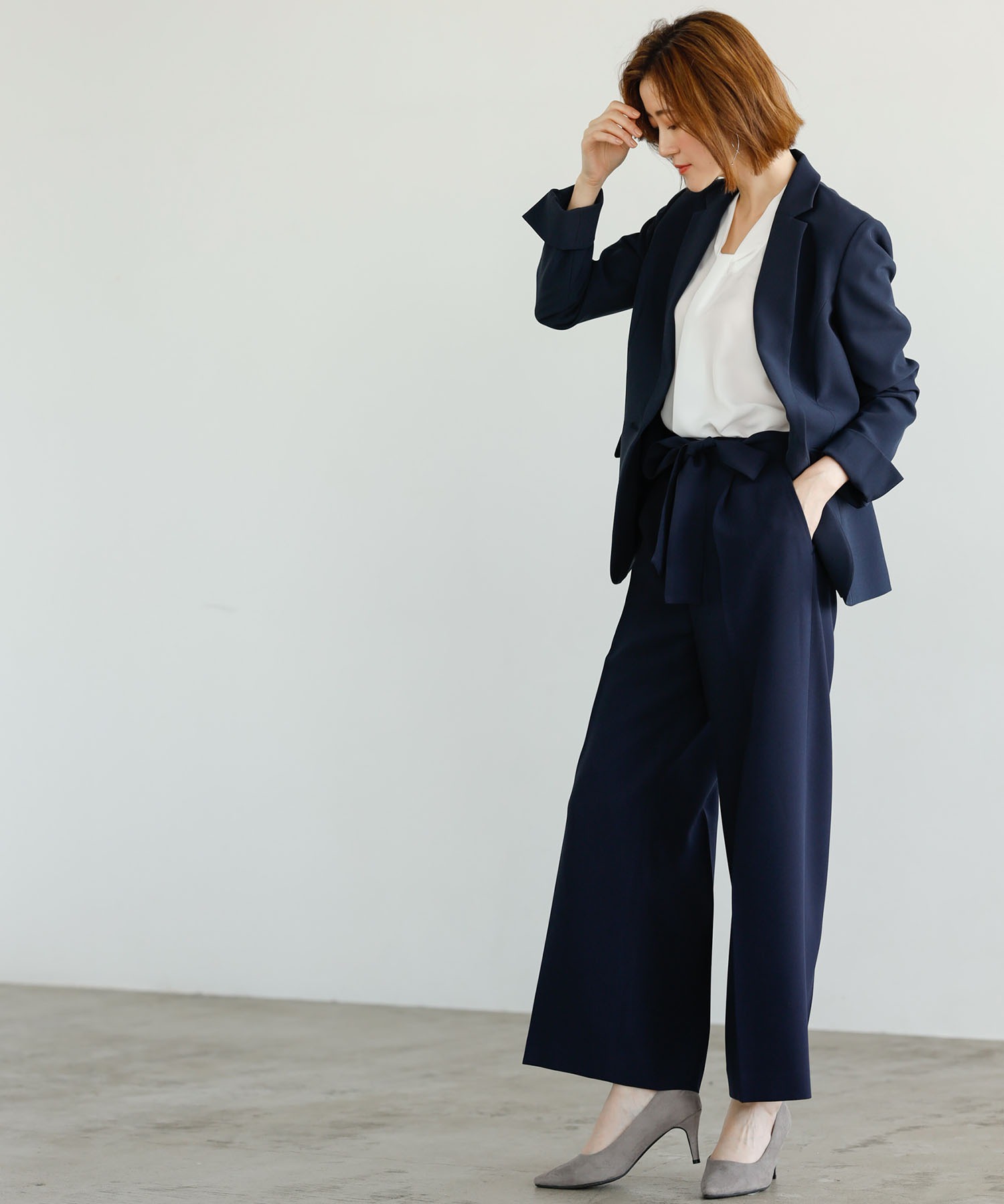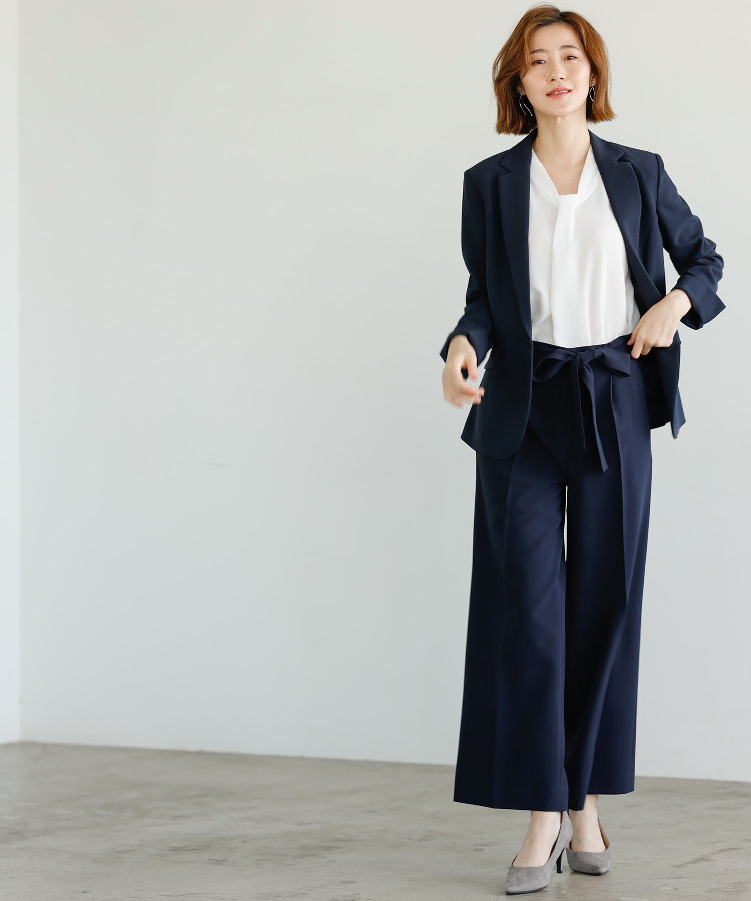 ベーシックなデザインで着回し力抜群な4点セットのパンツスーツ。