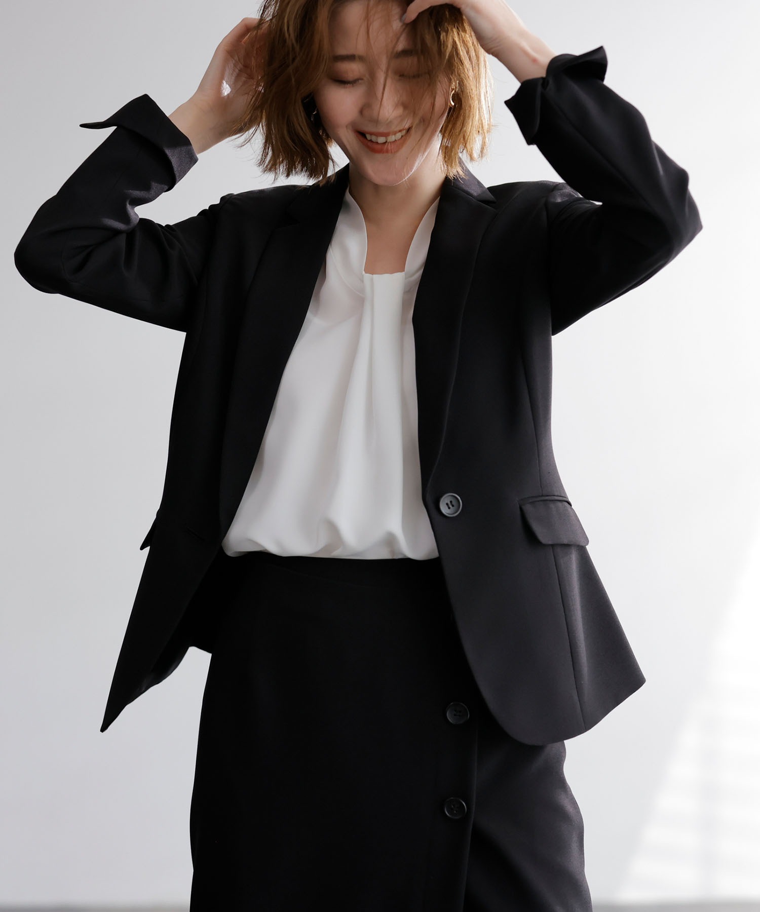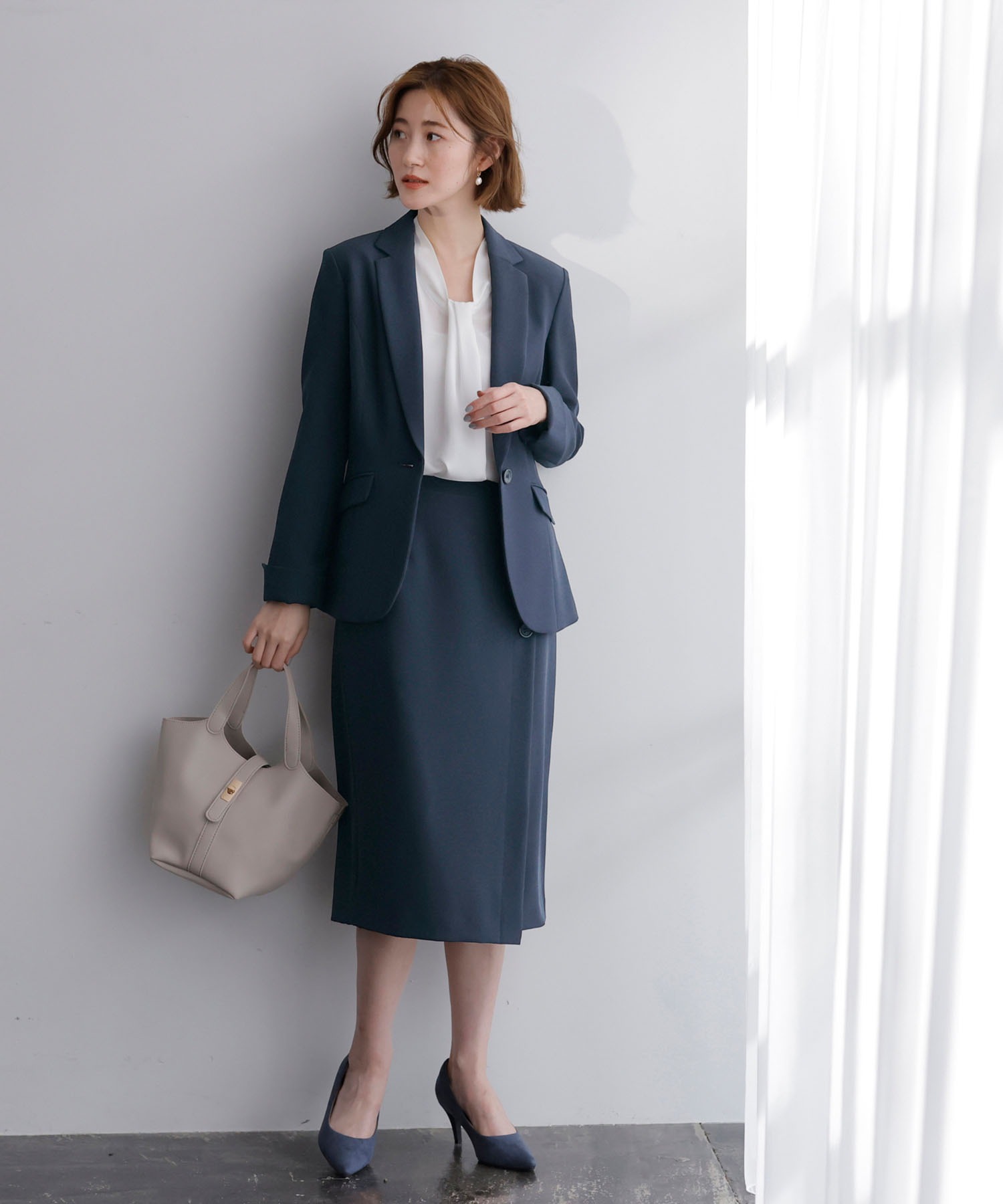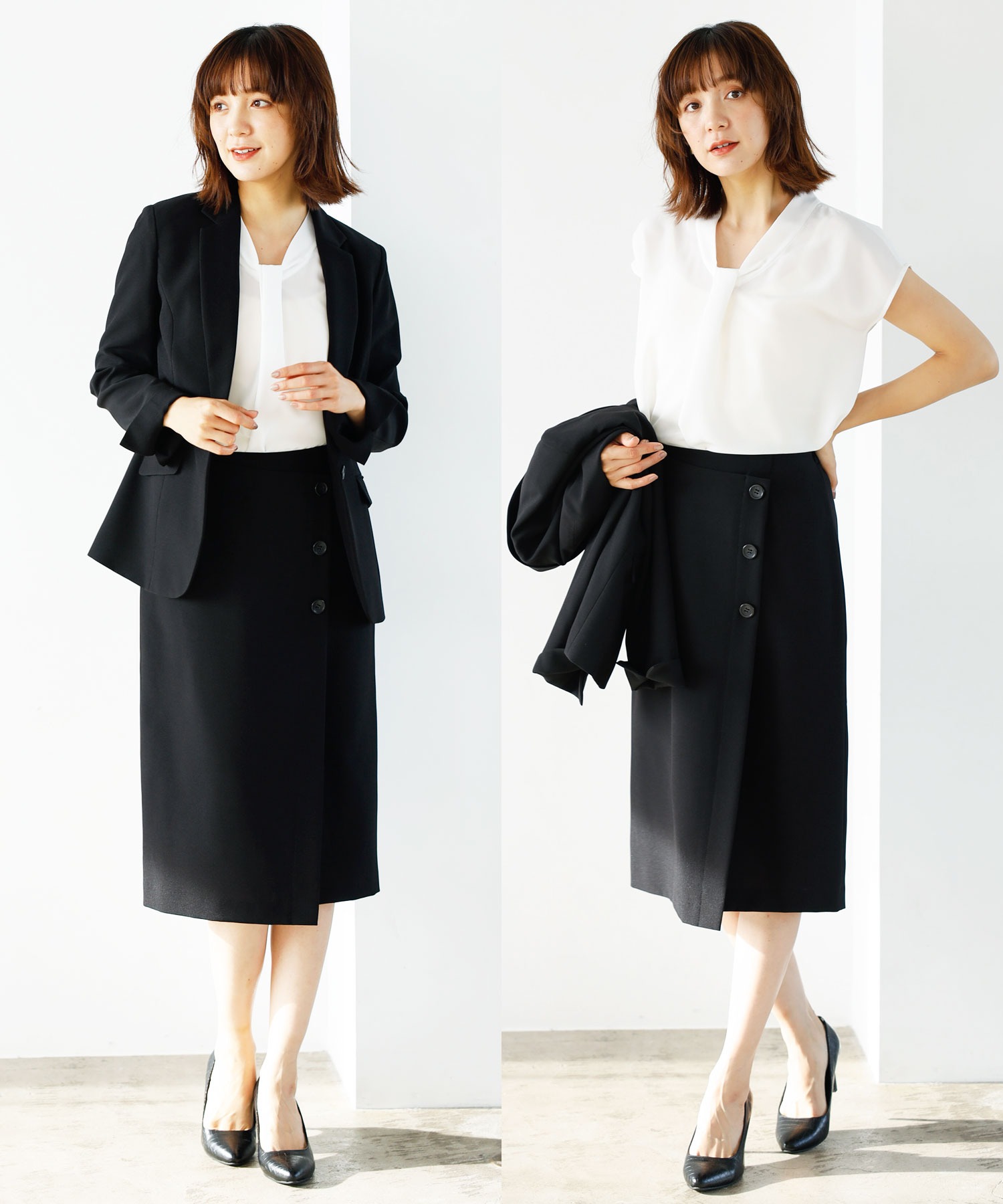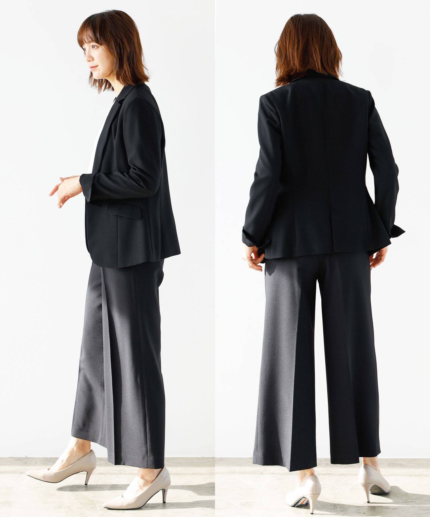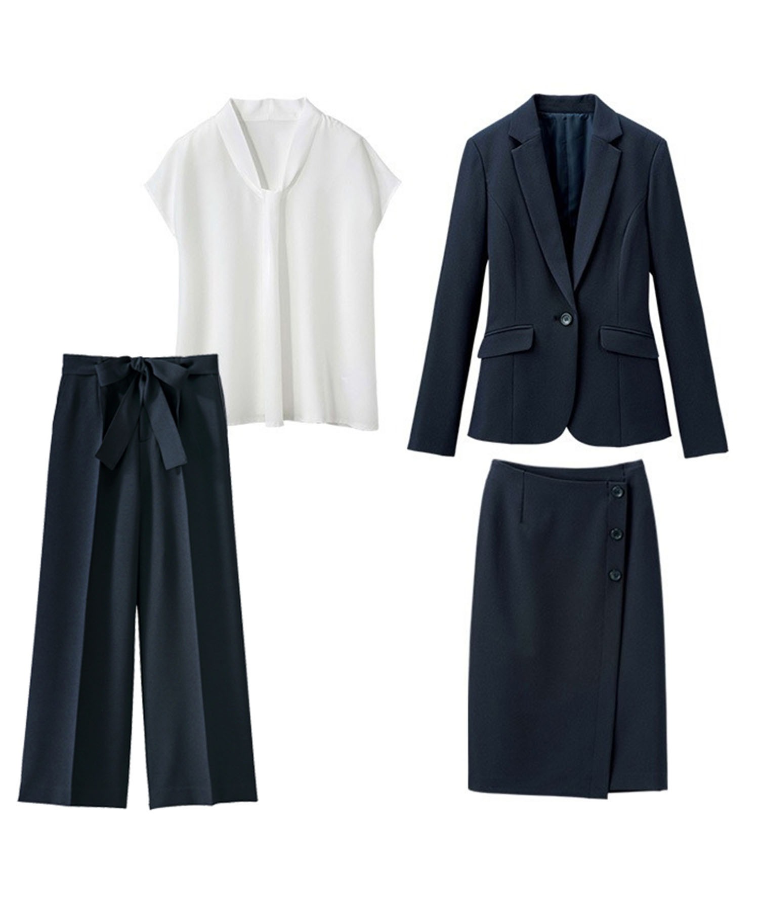 【ジャケット+2ボトム】洗えるストレッチ!ジャケット&ブラウス&ワイドパンツ&スカートスーツセット