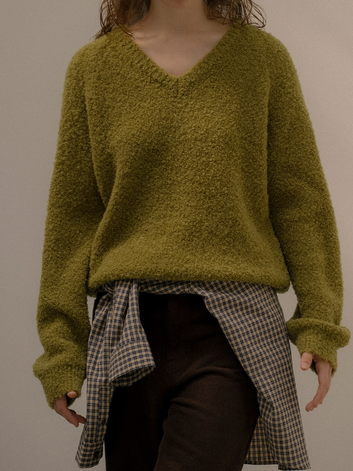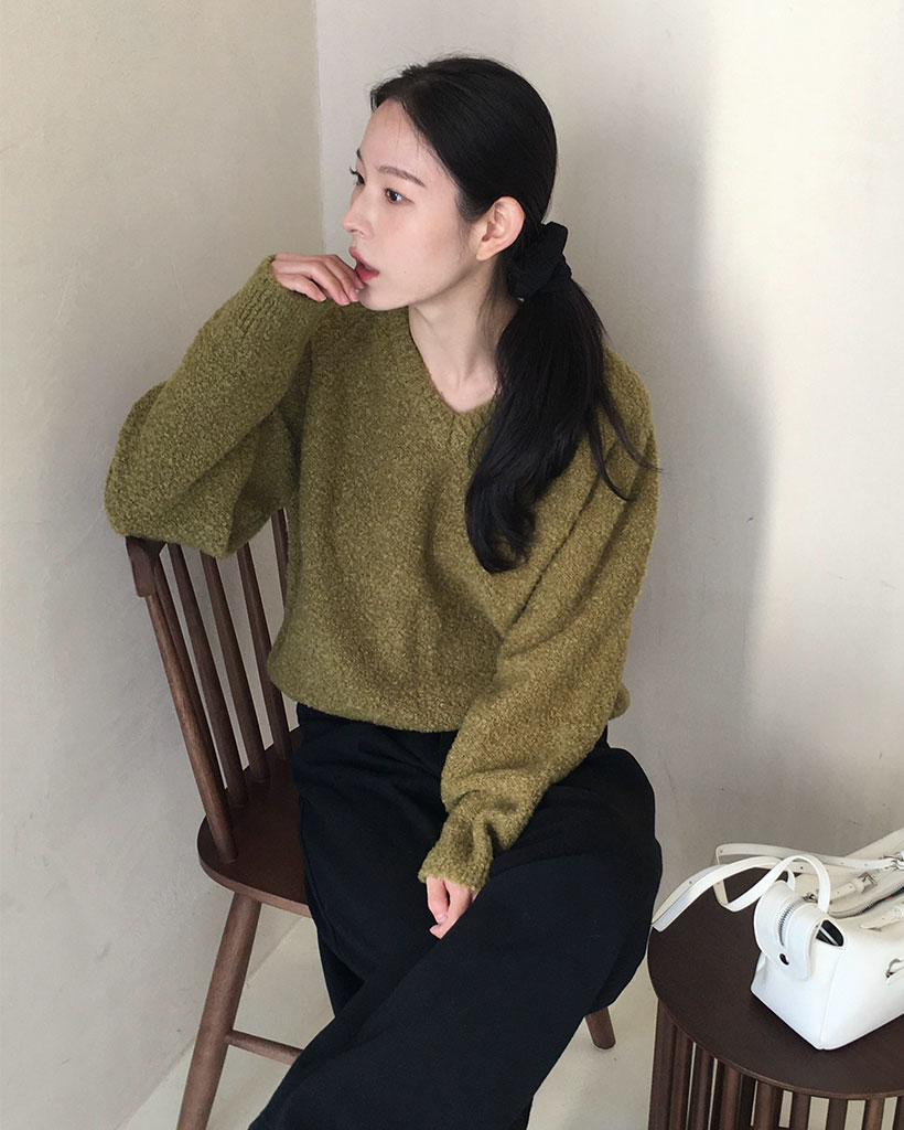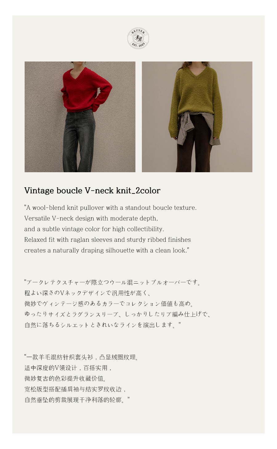Vintage boucle V-neck knit [KNFW05SW04]_[2color]