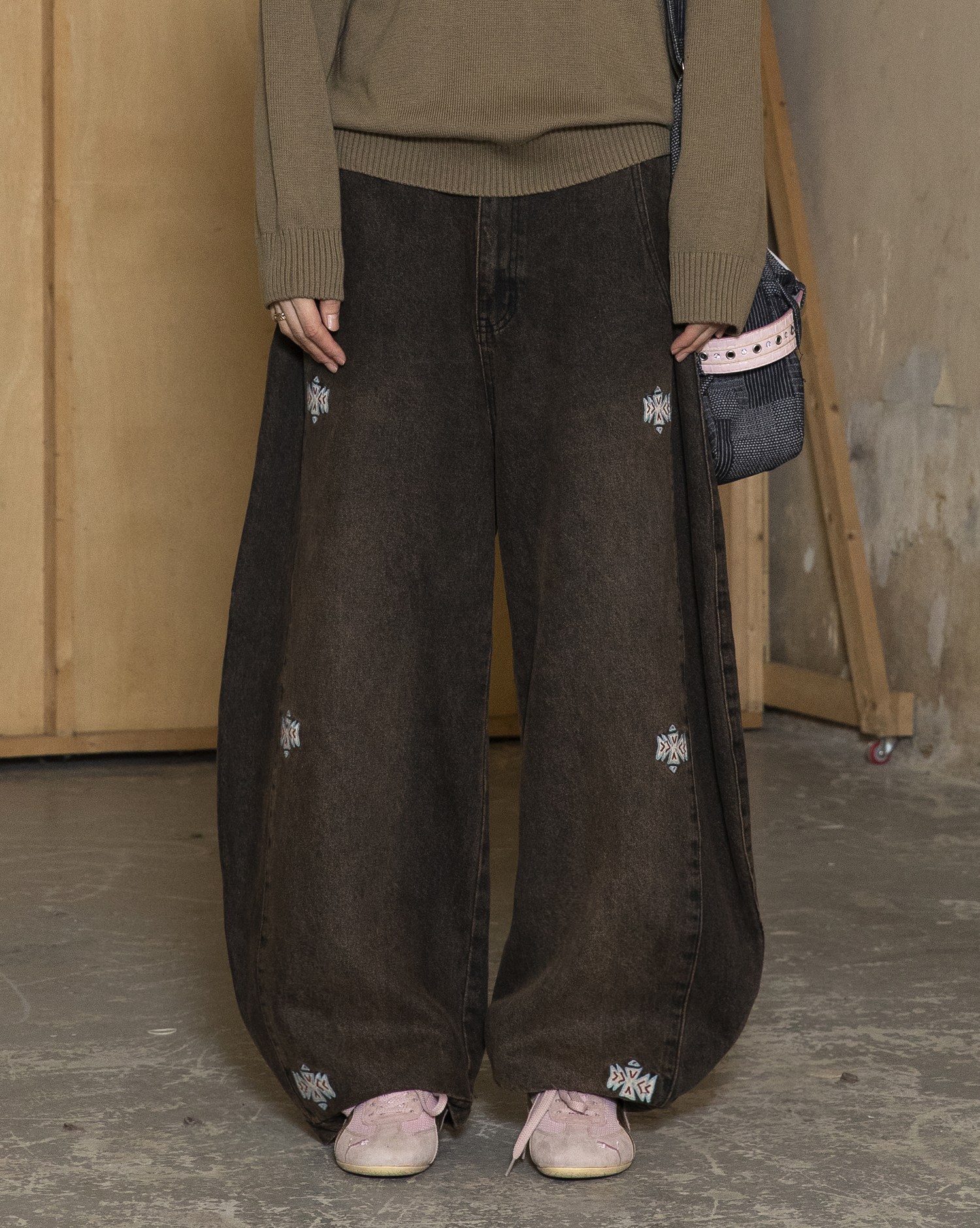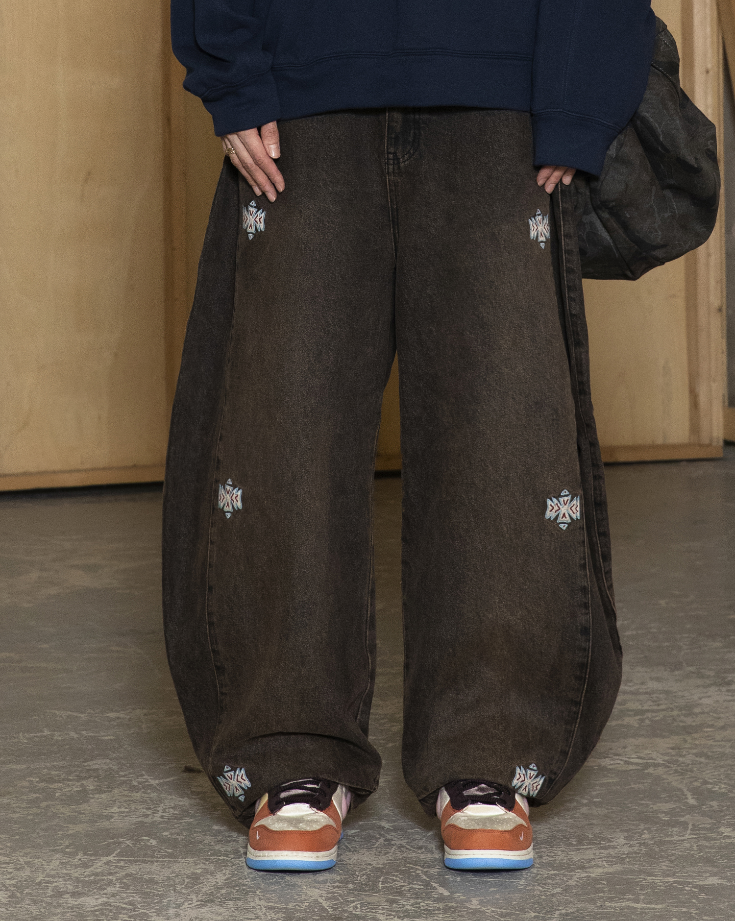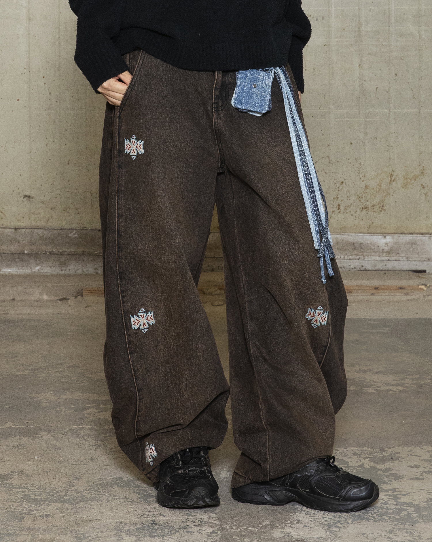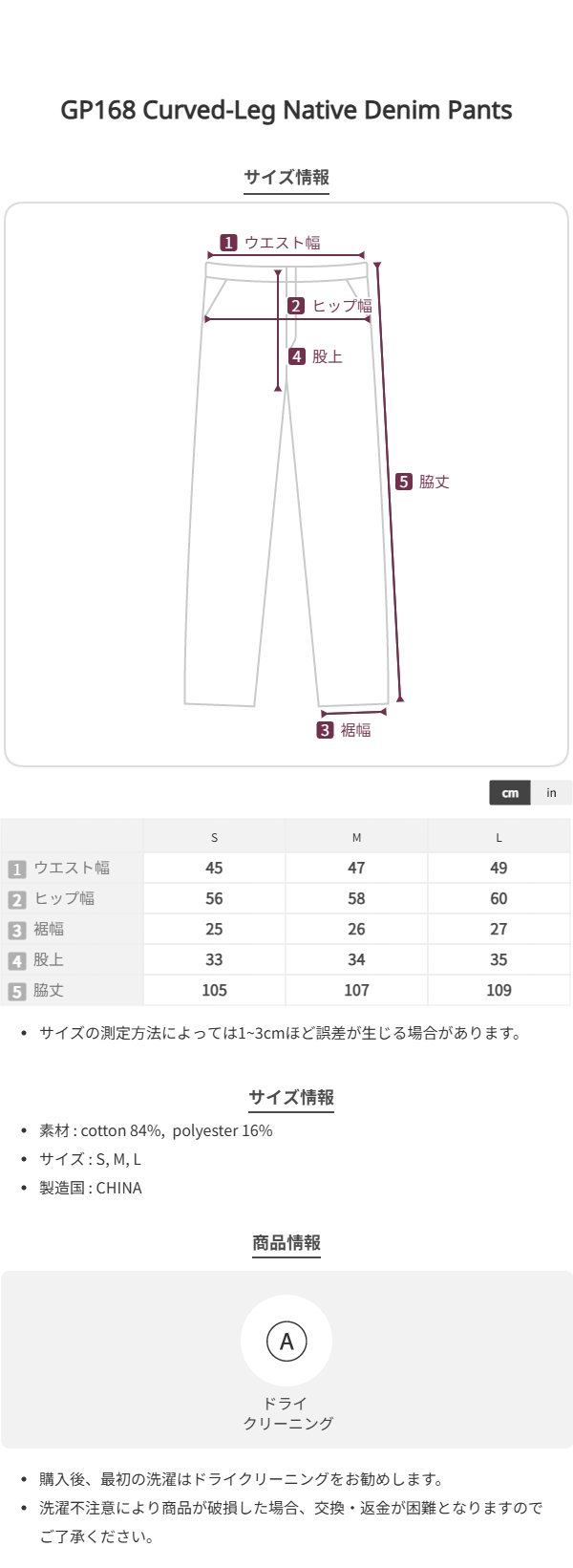 GP168 Curved-Leg Native Denim Pants (BLACK)