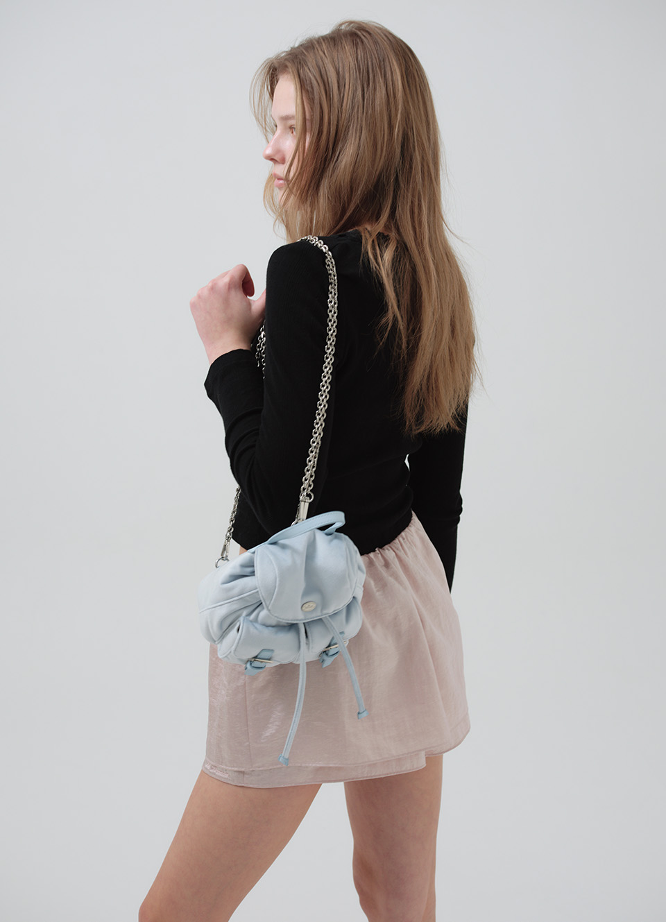 *コンパクトなサイズ感と実用的な収納力を備えたチェーンバックパック
