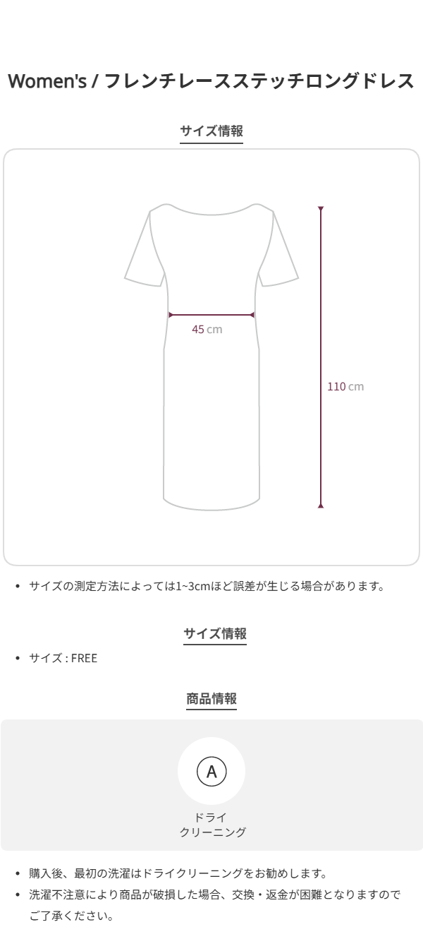 フレンチレースステッチロングドレス