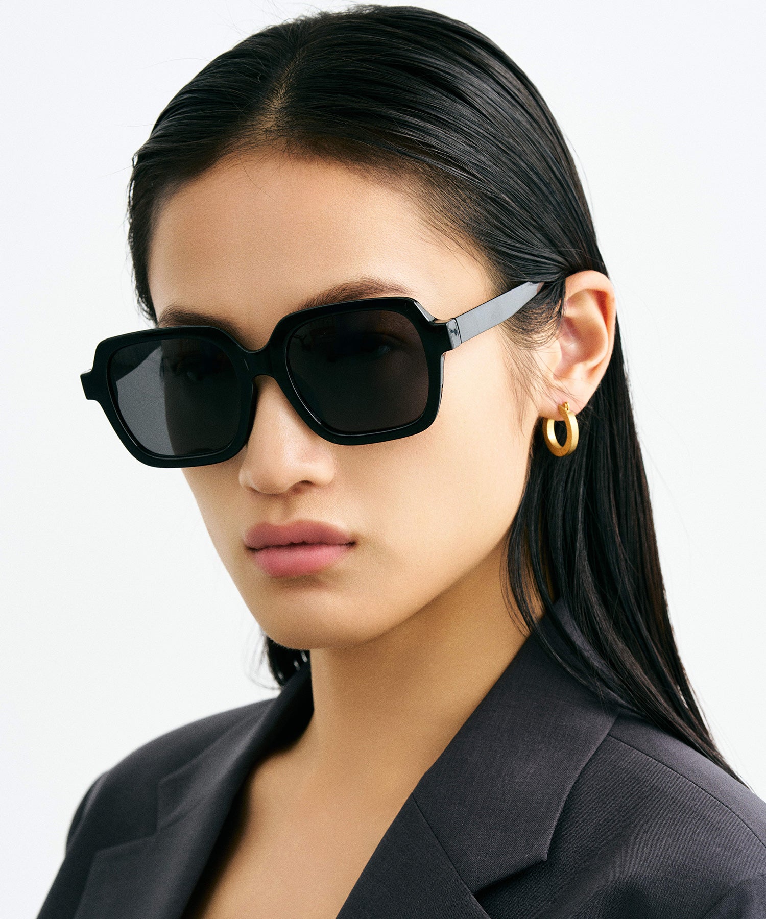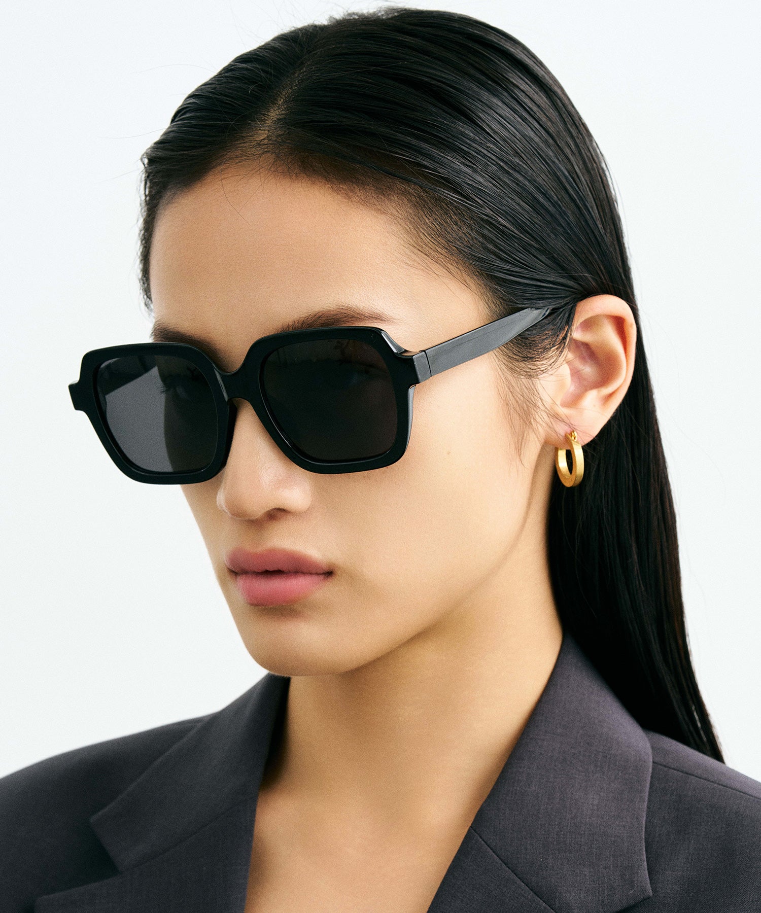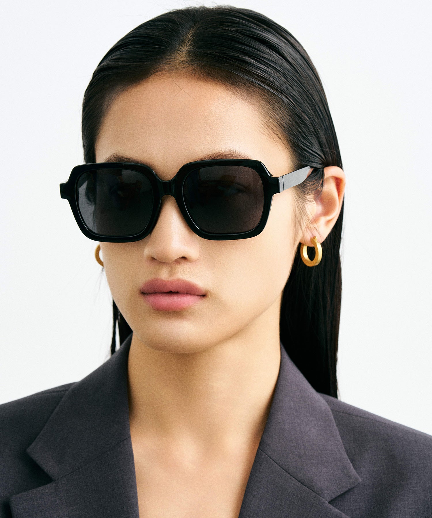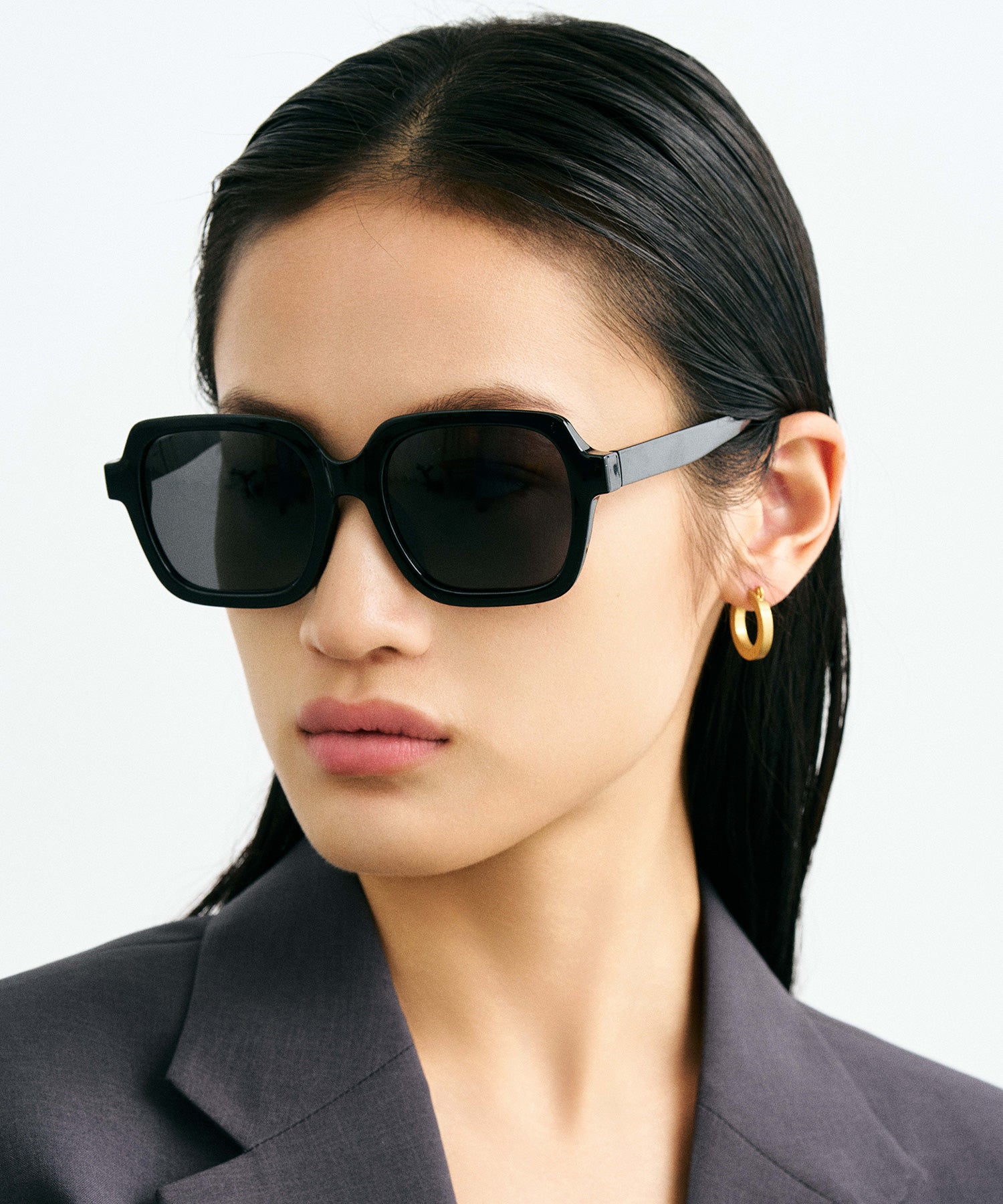 このスクエア型ビックフレームは、エレガントかつシックなデザインで、圧倒的な存在感を放ちます。黒の色合いも相まって、スタイリッシュな印象が強く、人目を引くきます。ビックフレームで顔の印象を変え、優れた存在感を演出します。