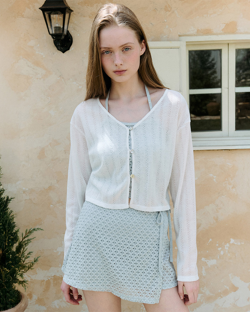 V NECK BUTTON CARDIGAN IVORY