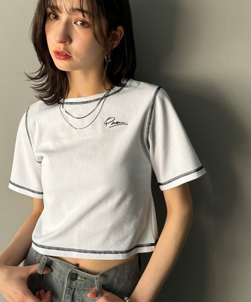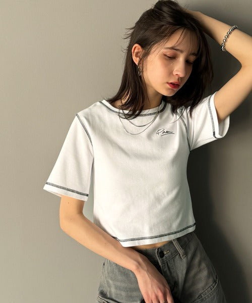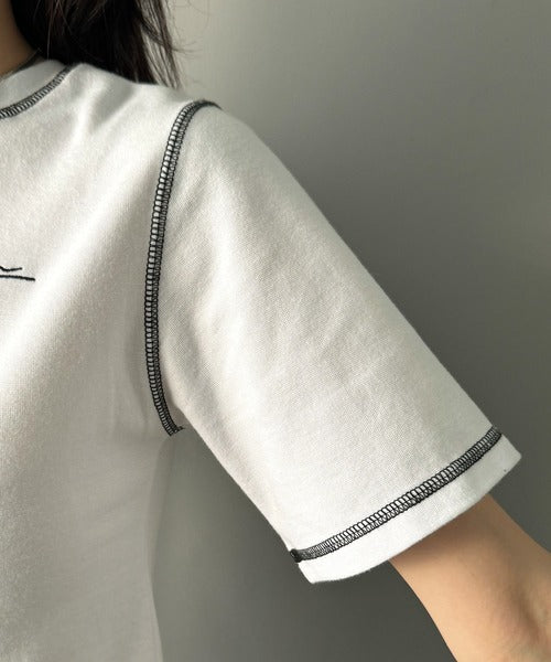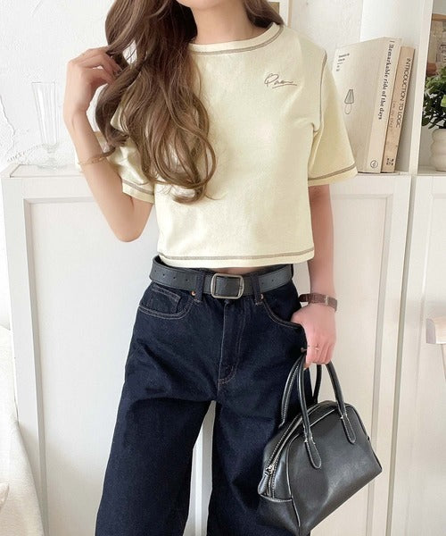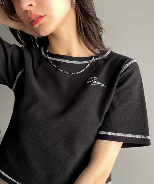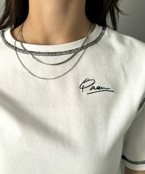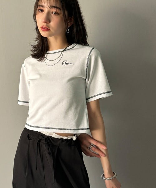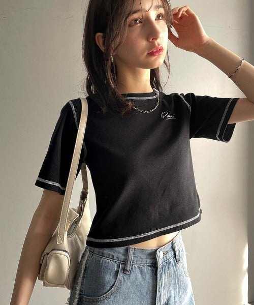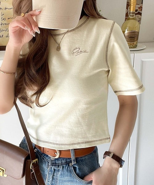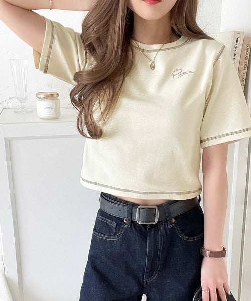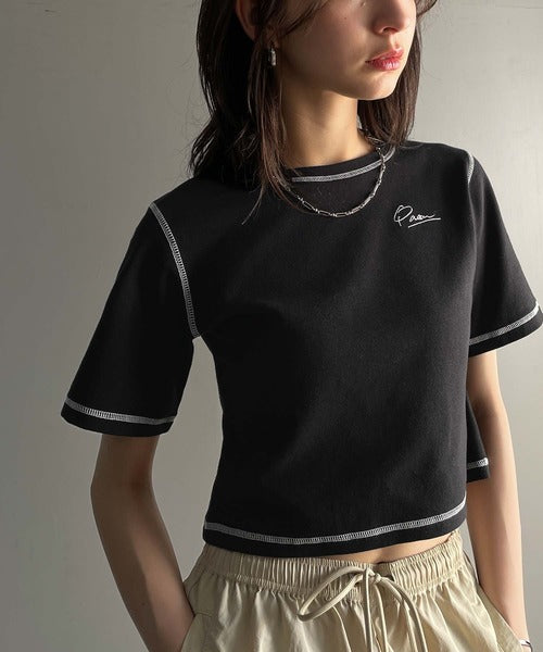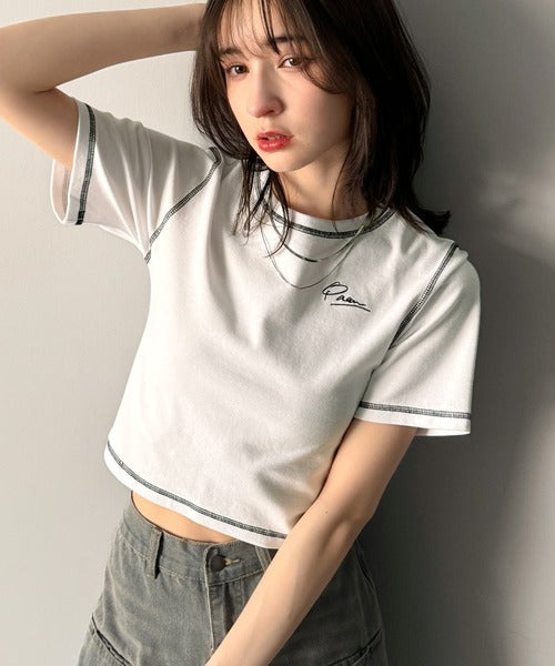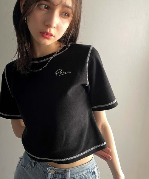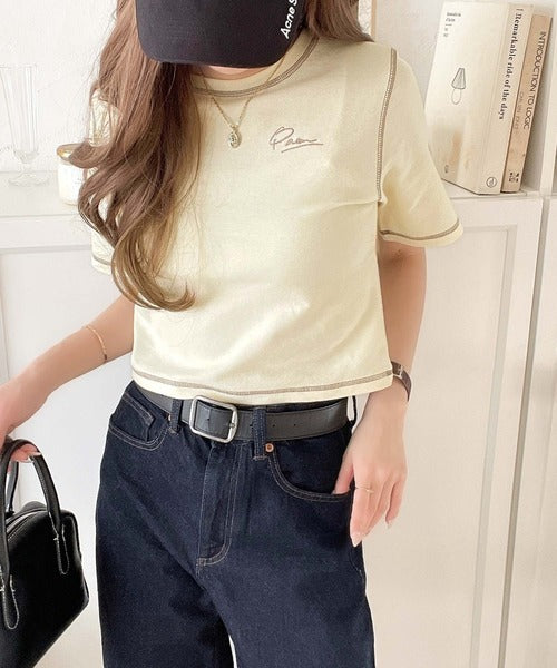 1枚で今っぽデザイン♪PAEAN刺繍配色ステッチチビTシャツ(半袖) ce1020200