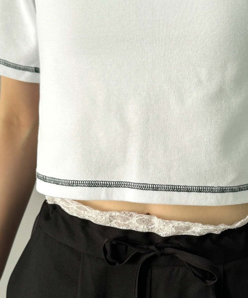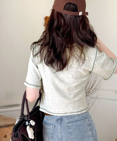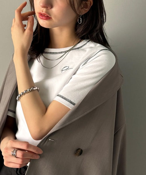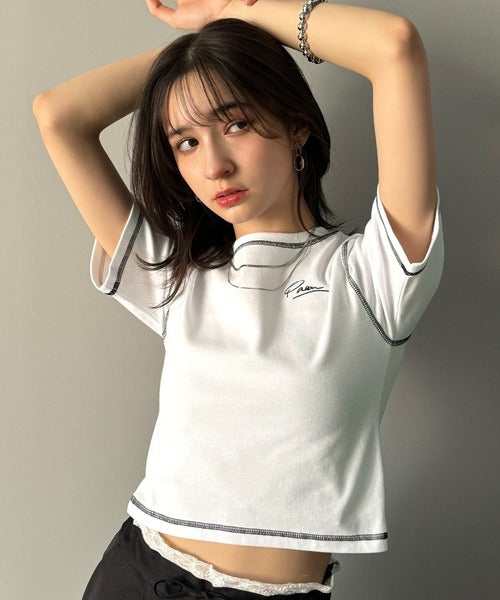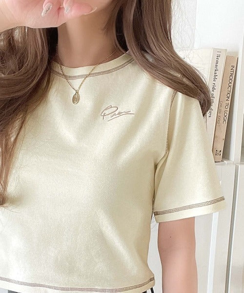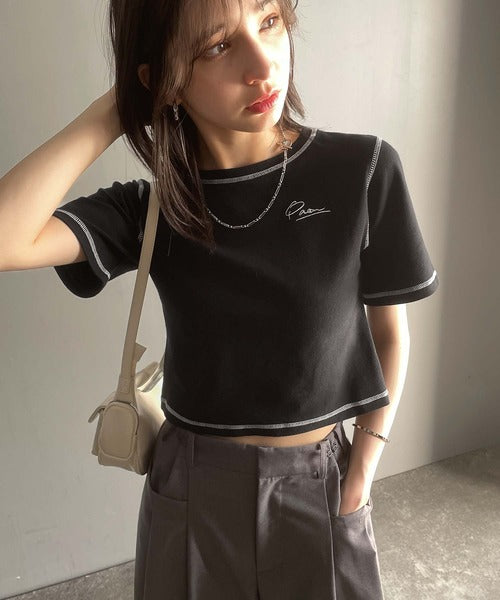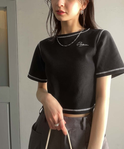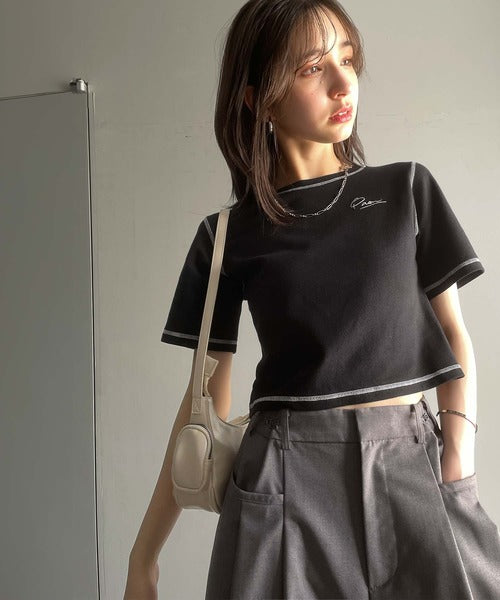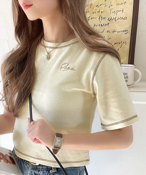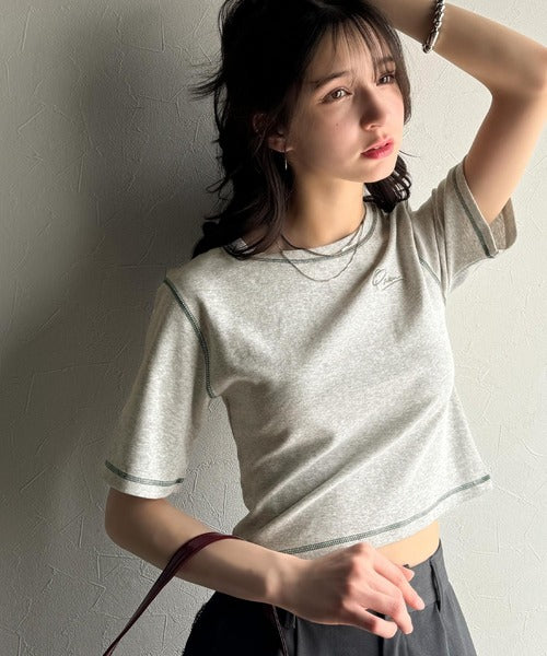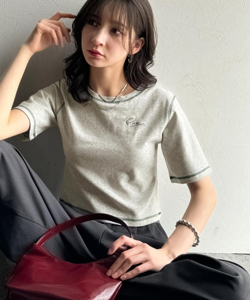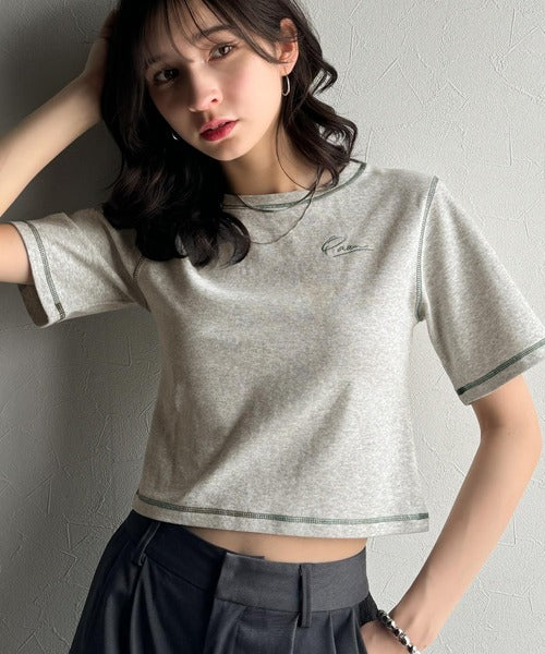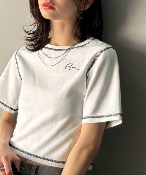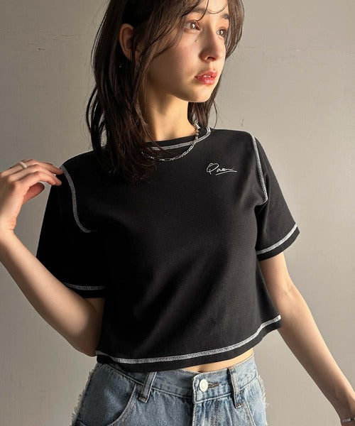 1枚で今っぽデザイン♪PAEAN刺繍配色ステッチチビTシャツ(半袖) ce1020200