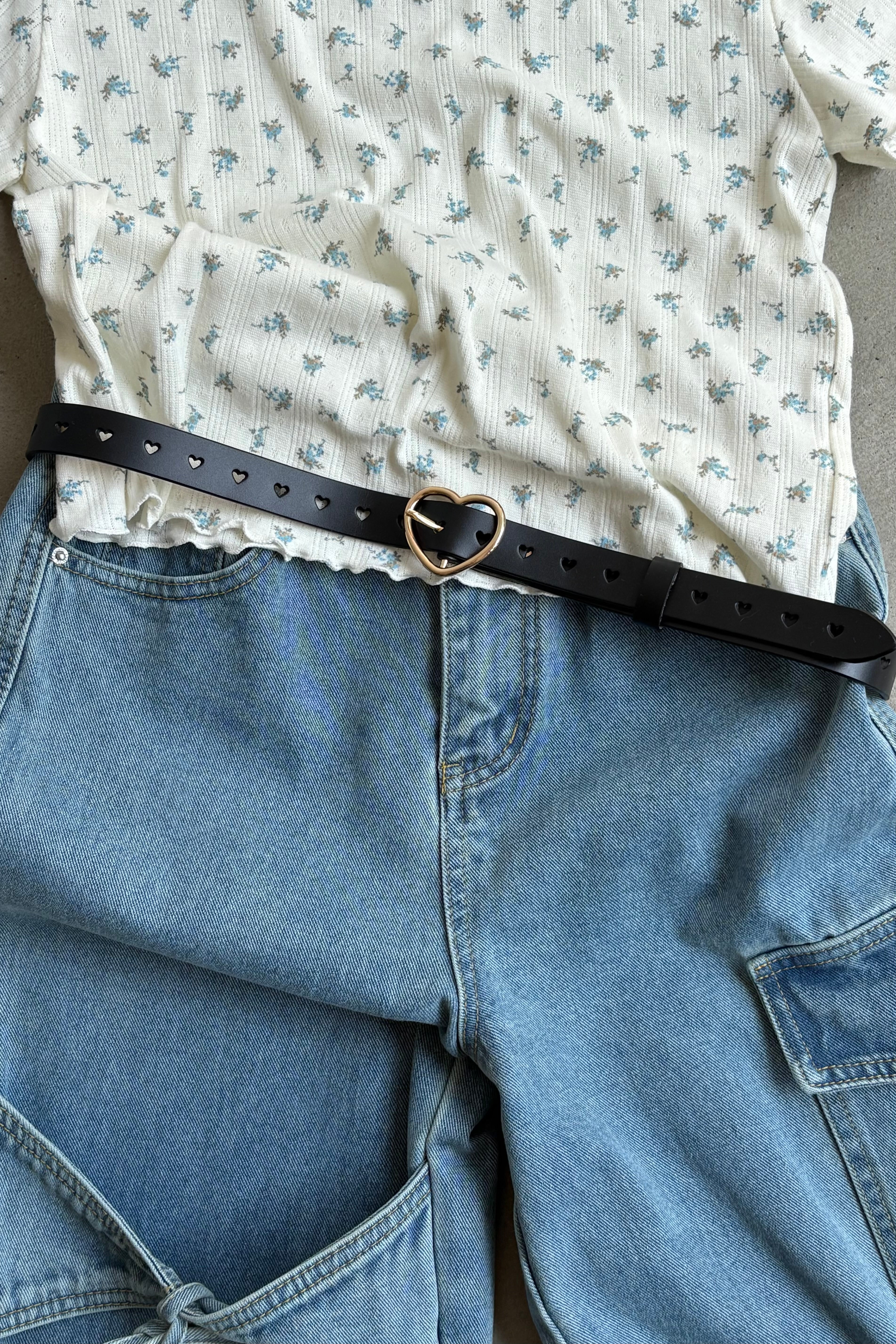 ・ぐるっと一周ハート穴デザインで、ウエストに合わせて自由にサイズ調整可能