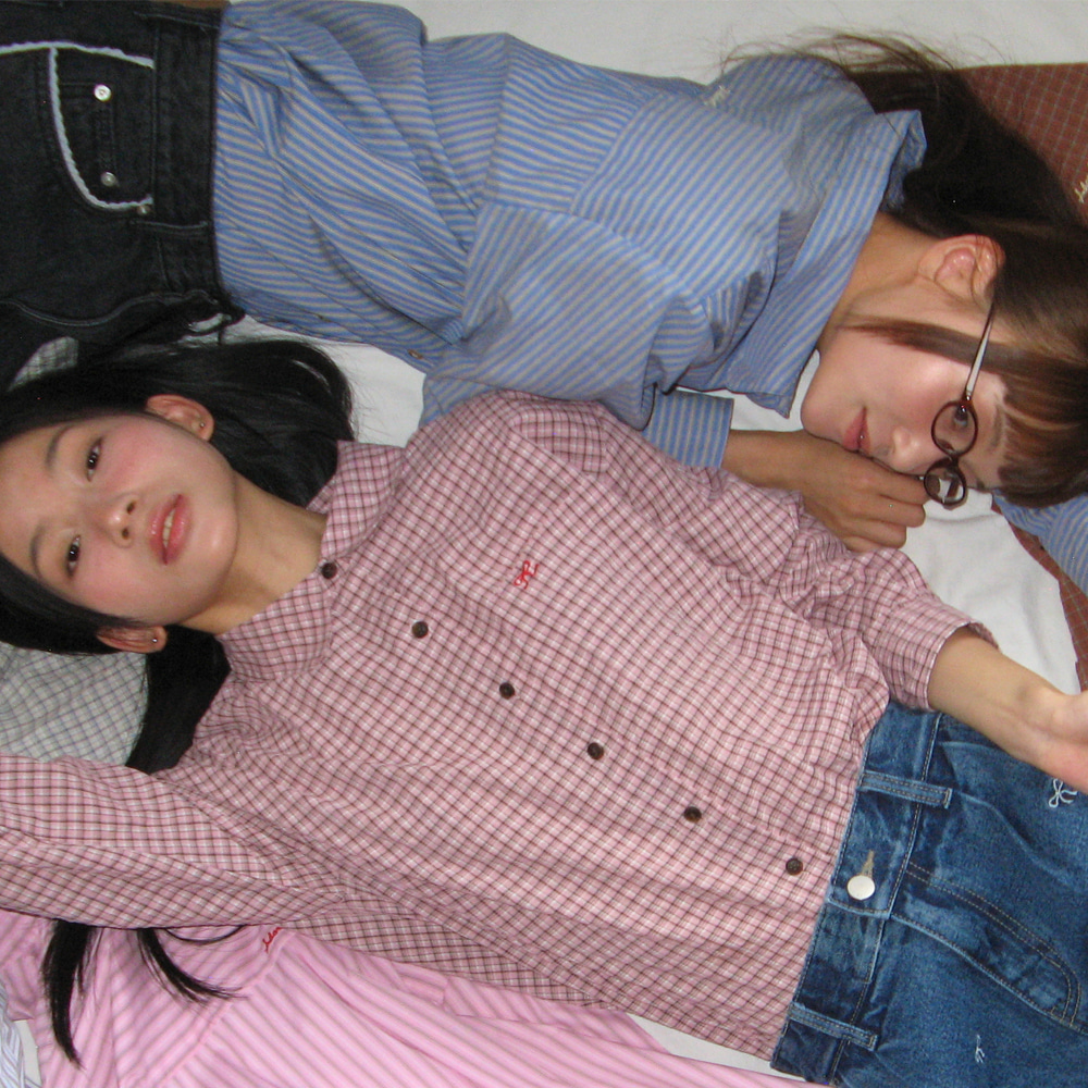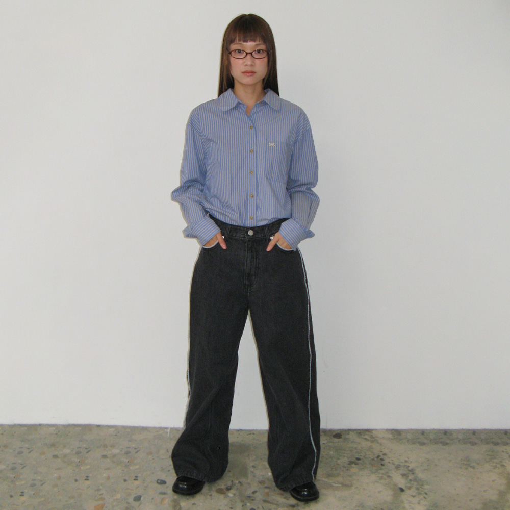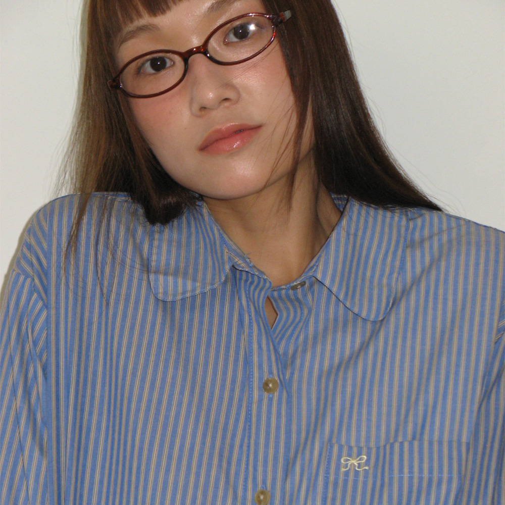 ROUND COLLAR POCKET SHIRT BLUE CREAM STRIPE
