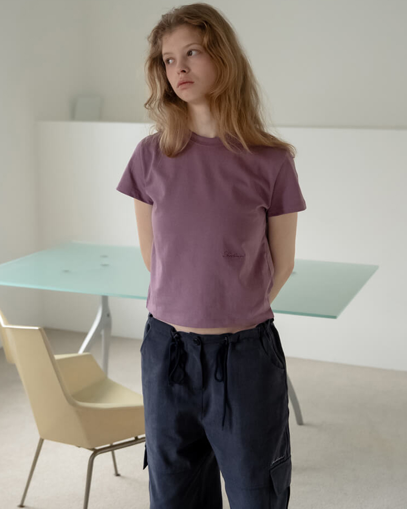 Loho Tシャツは色やディテールの繊細さを高めるミニマリストデザイン。高品質な純粋な100%コットン素材で作られ、しっかりしたテクスチャーがフィット感をきれいに落とします。シンプルでレギュラーのデザインにやや短くした丈がボトムズと理想的にバランスを取っています。ミニマリストの服装でも官能的なプロポーションを作り出します。スムームムードのイタリックロゴ刺繍が前面左下中央に丁寧に加えられ、さりげないアクセントとコレクターズアイテムの価値を高めています。スムーロゴTシャツは、重ね着すると素晴らしく見え、日常的にどんなアイテムにもマッチする必須アイテムです。落ち着いたさりげない紫色のコットン100%レギュラーフィット ラウンドネックスムードイタリックロゴ刺繍
