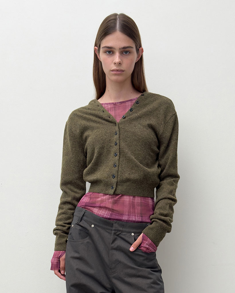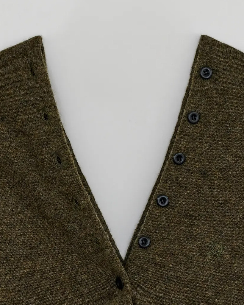 V NECK BUTTON CARDIGAN (khaki)