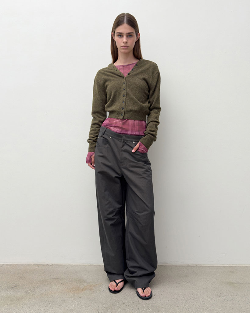*ニット素材の特性上、強い摩擦や鋭利なものとの接触により、毛玉・糸引き・破れなどの生地損傷が起こる場合がありますのでご注意ください。