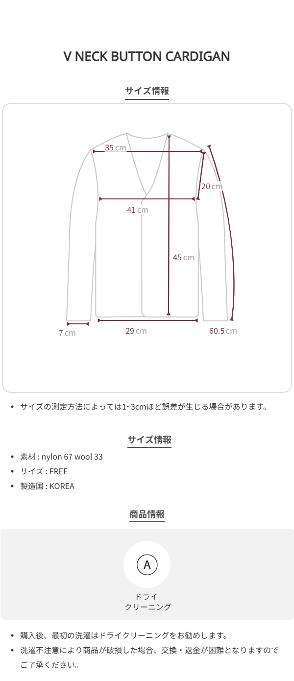 -ドライクリーニング推奨/水洗い・乾燥機の使用禁止。
