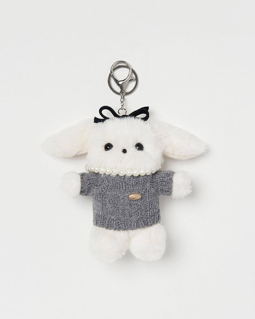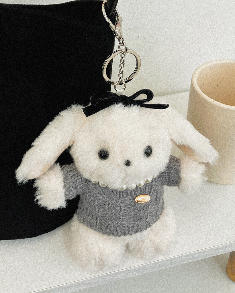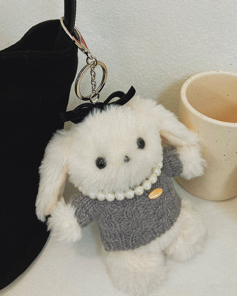 Hoppy The Lucky Rabbit Knit Keyring - White