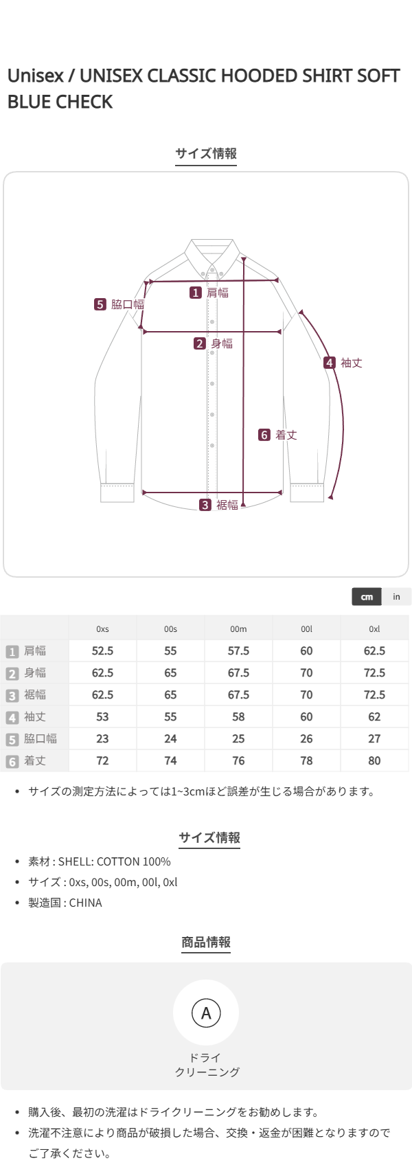 UNISEX CLASSIC HOODED SHIRT SOFT BLUE CHECK_M_UDSH6A107B1