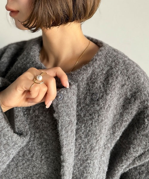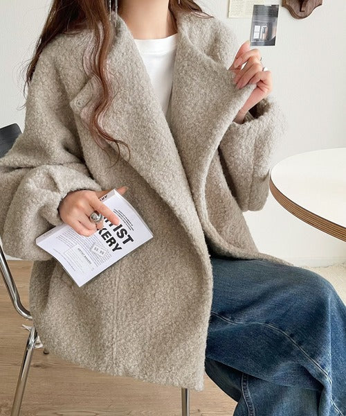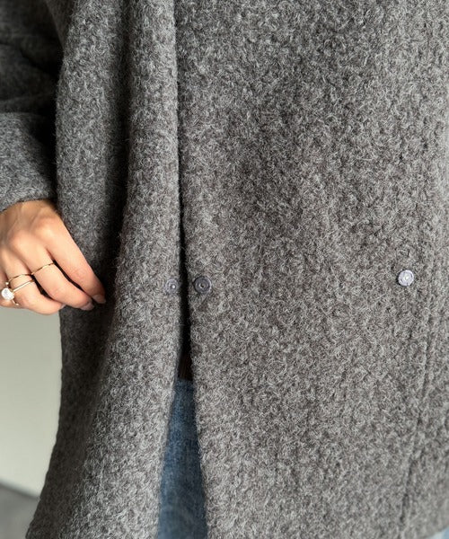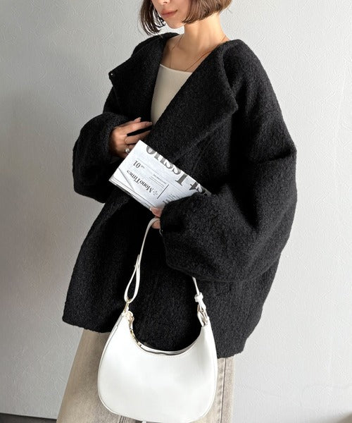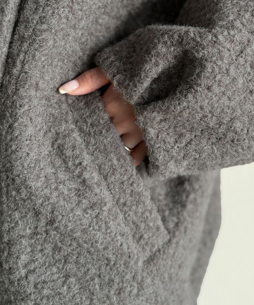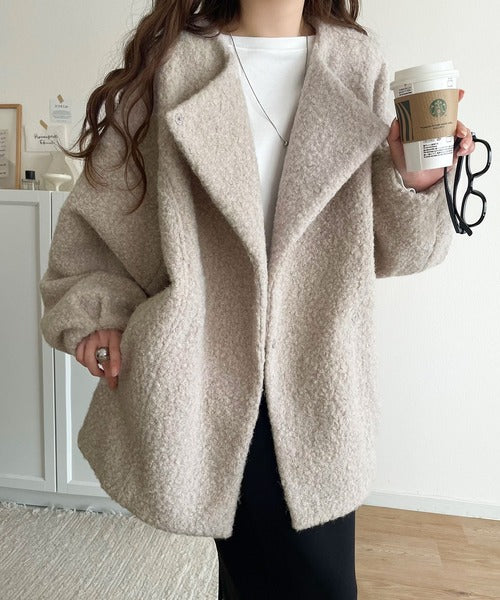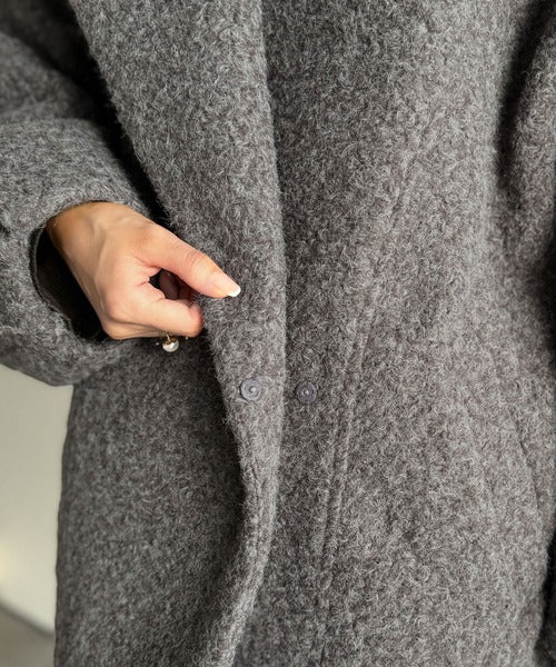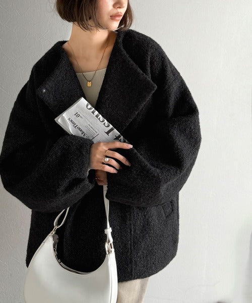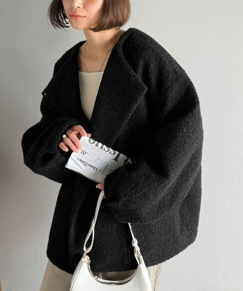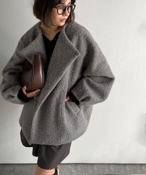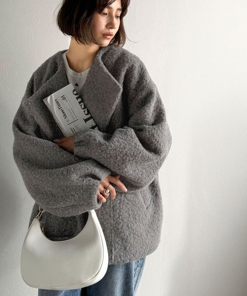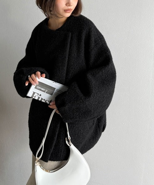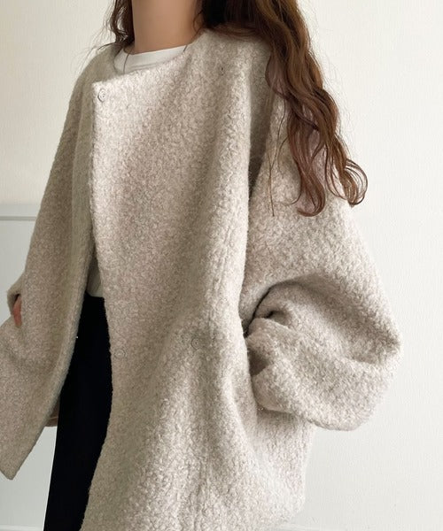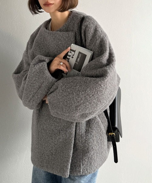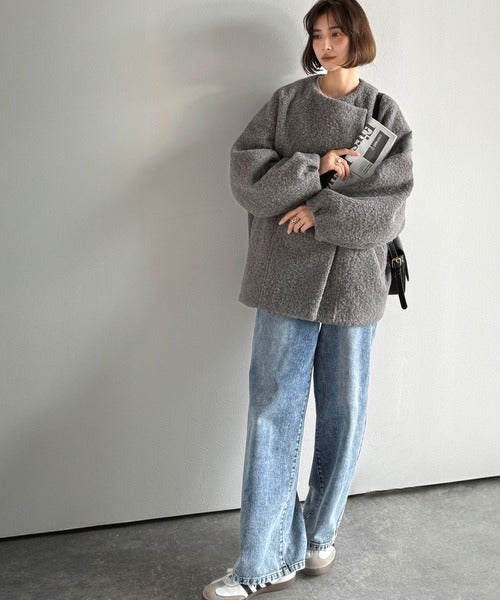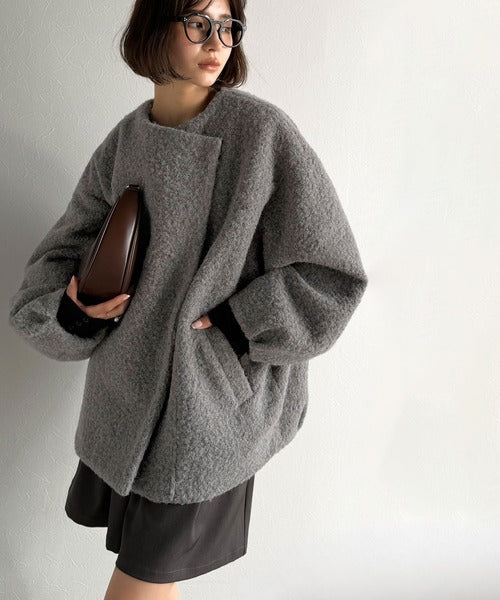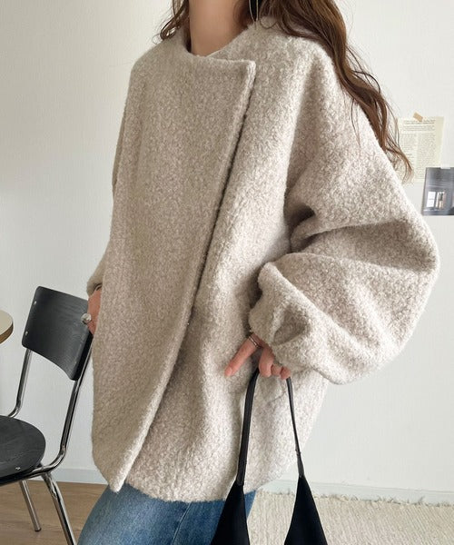 たっぽりコクーンシルエットであざと見せ。ノーカラーコクーンボアコート ce1070173