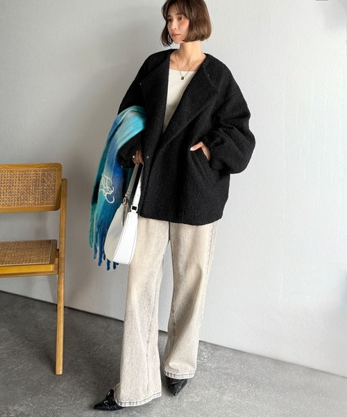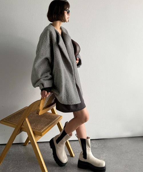 シンプルながら存在感抜群!ノーカラーコクーンボアコート