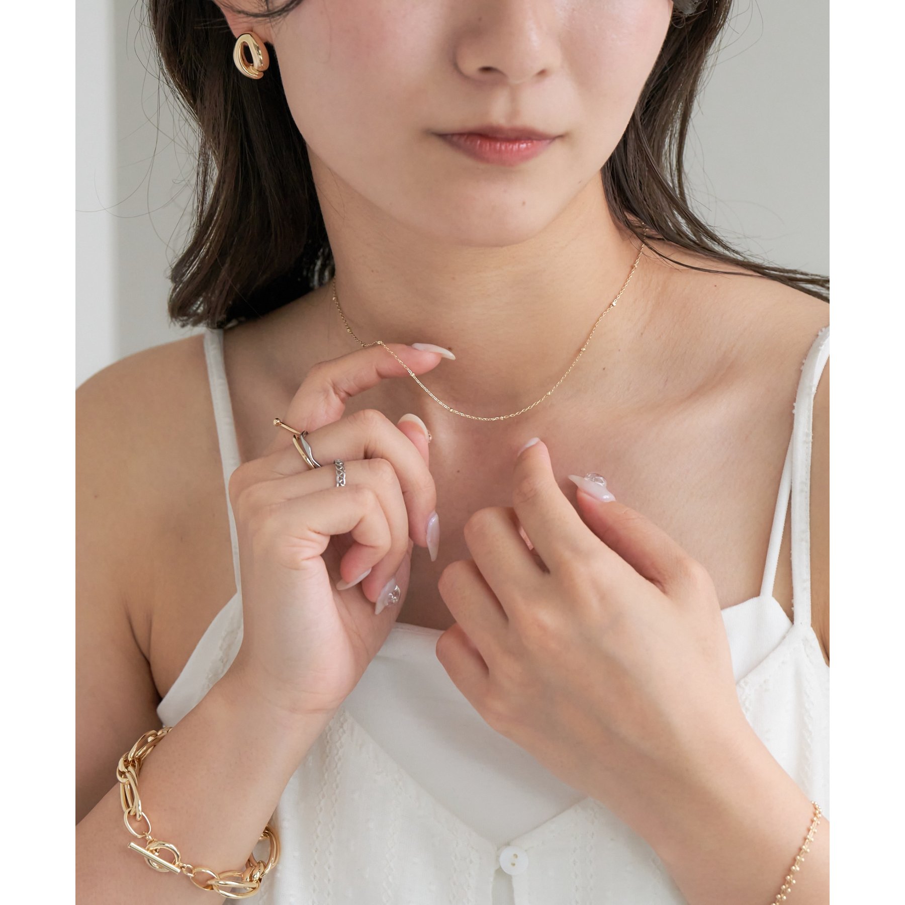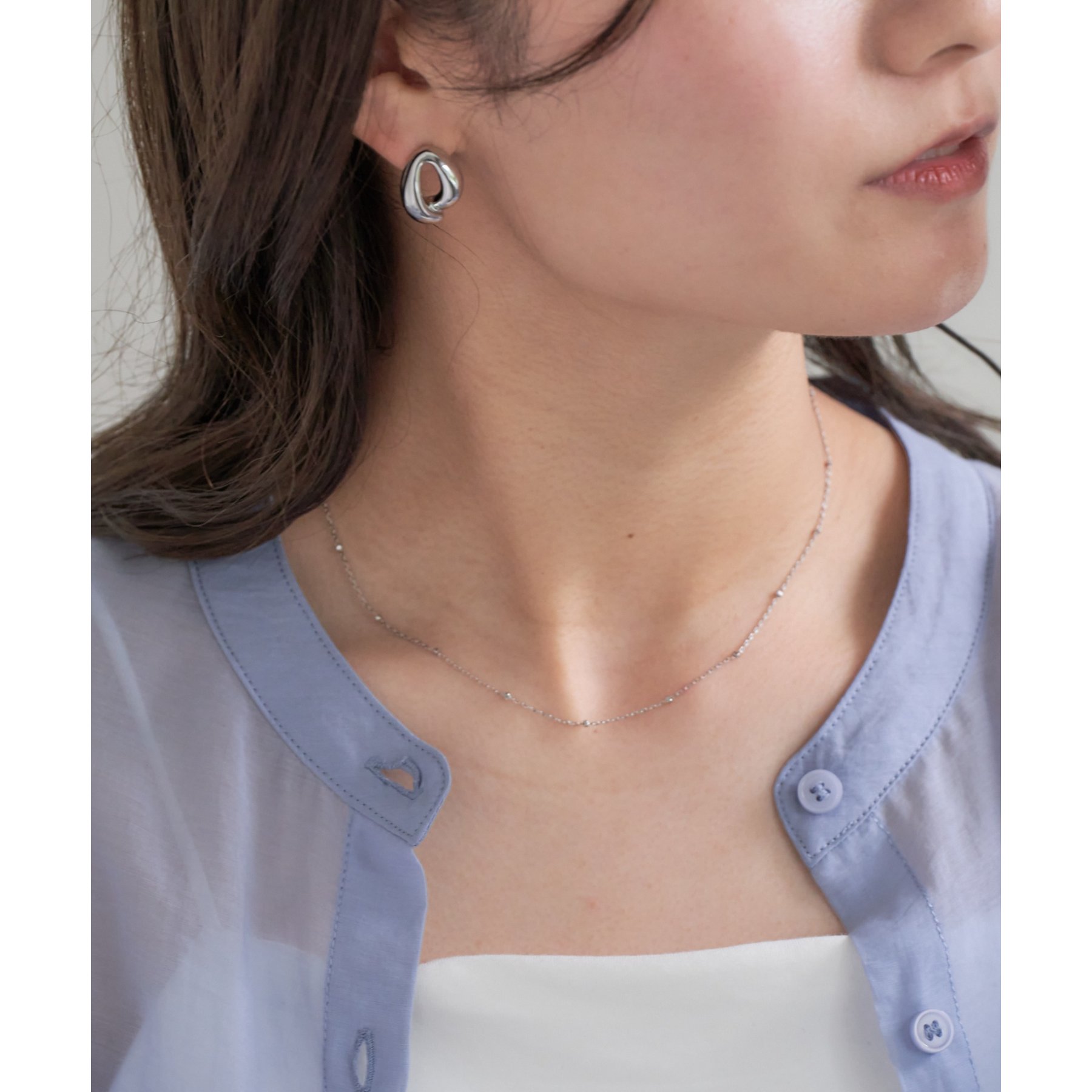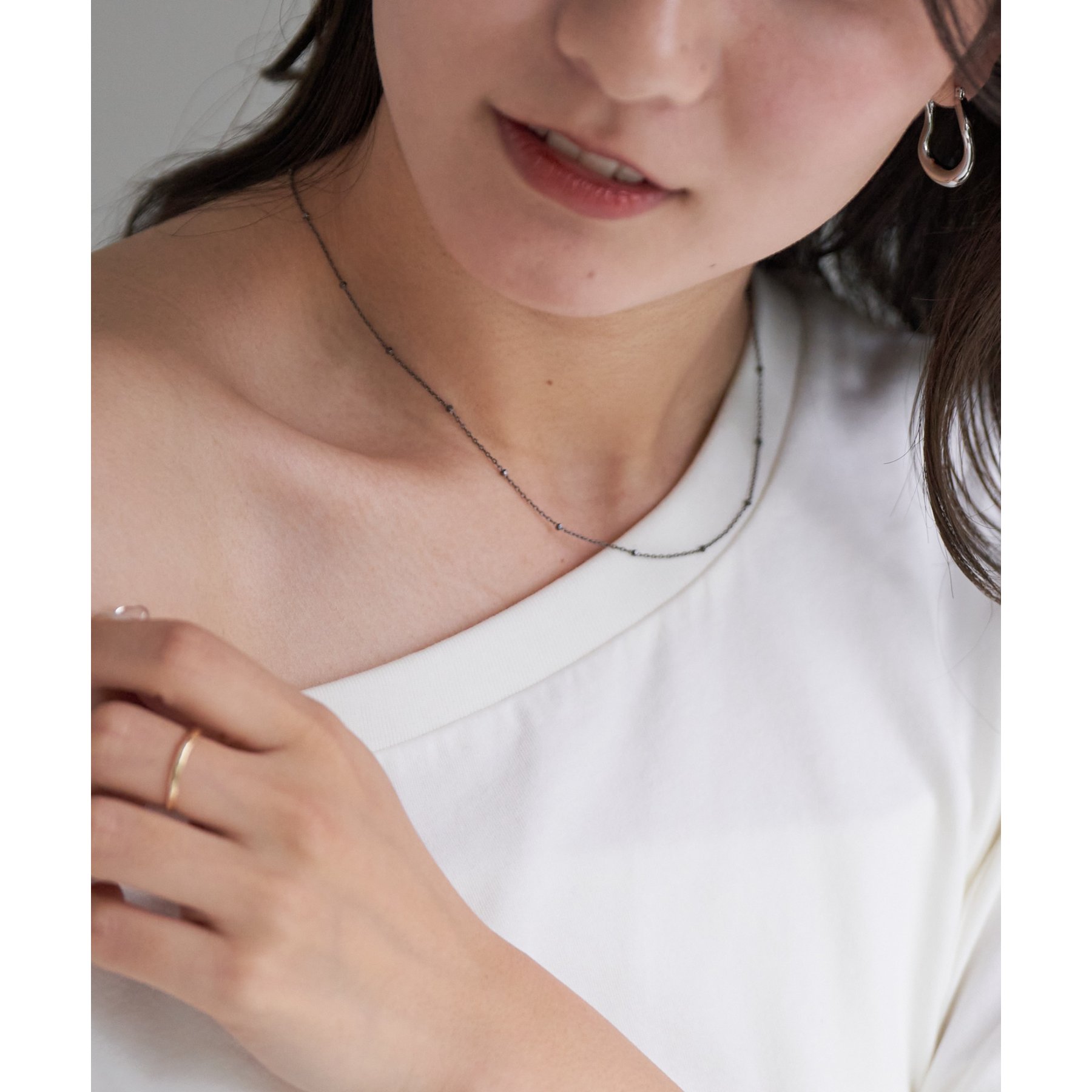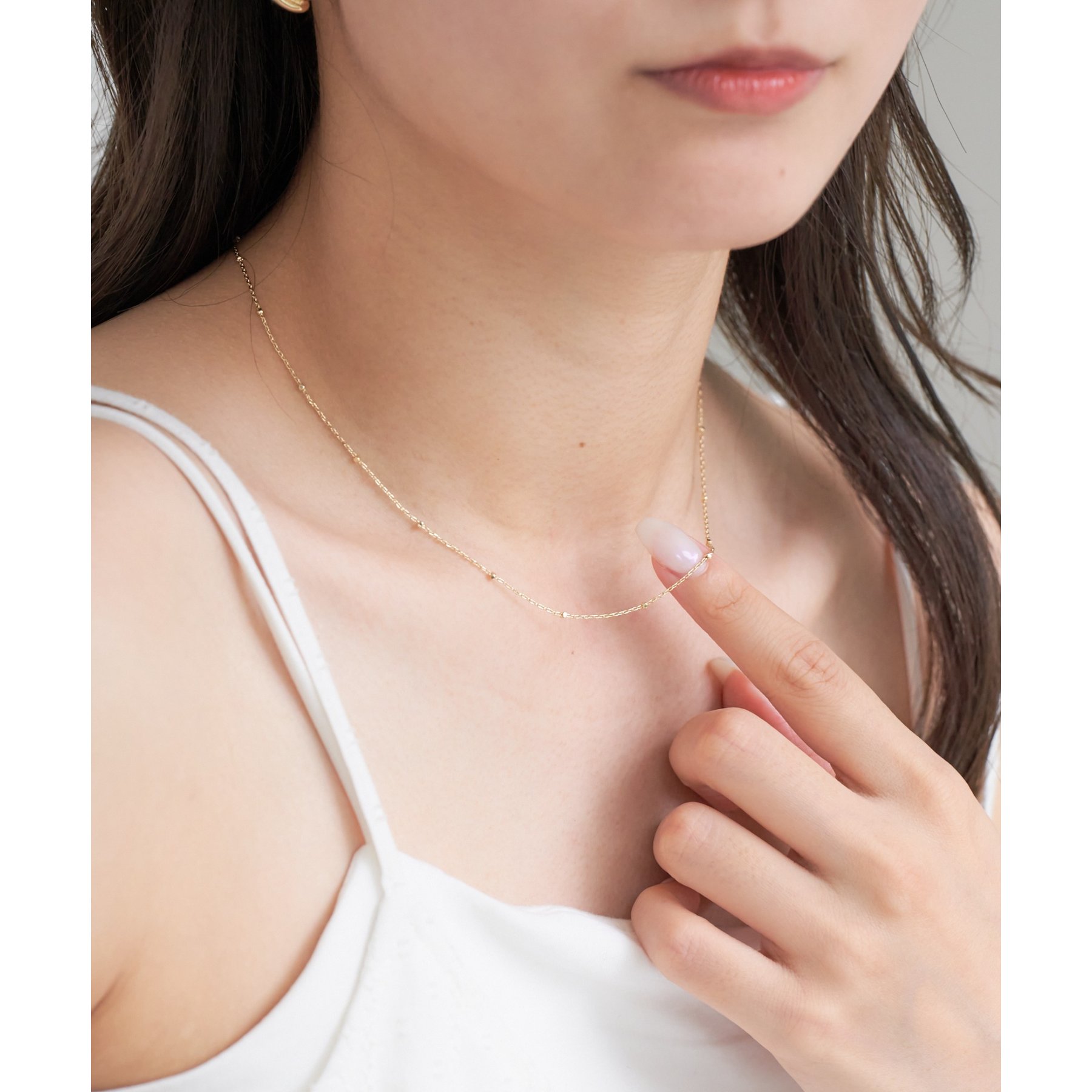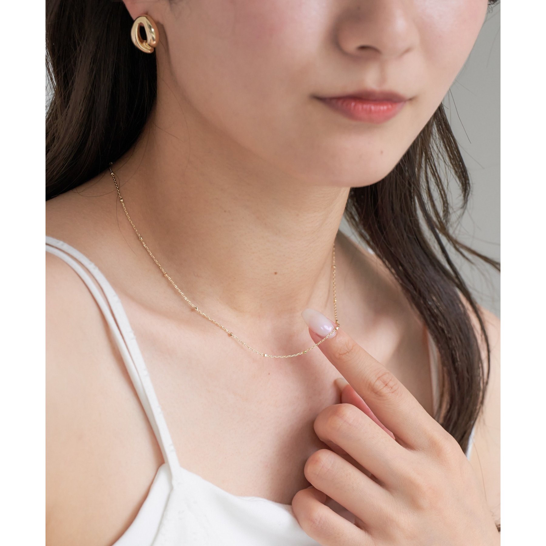 粒のようなチェーンが繊細にきらめく、ドットチェーンネックレス。